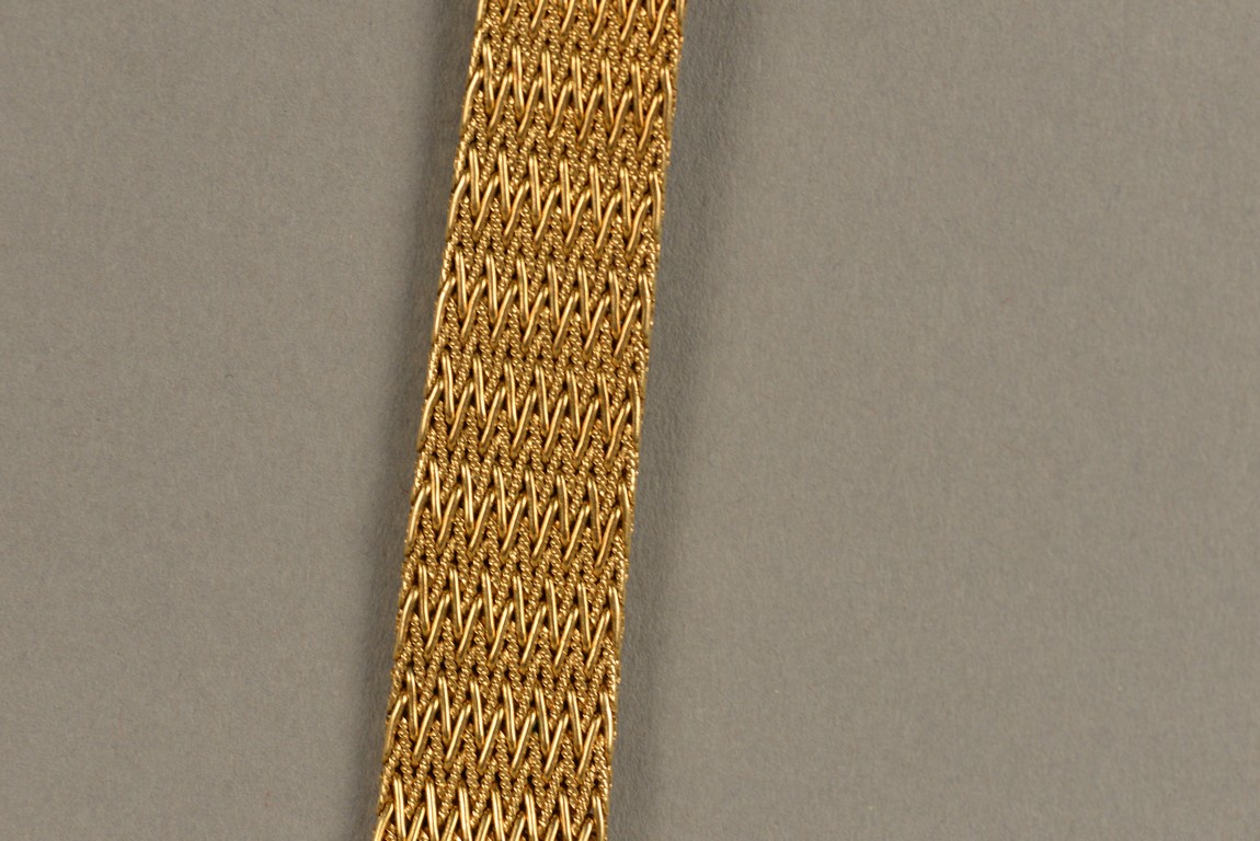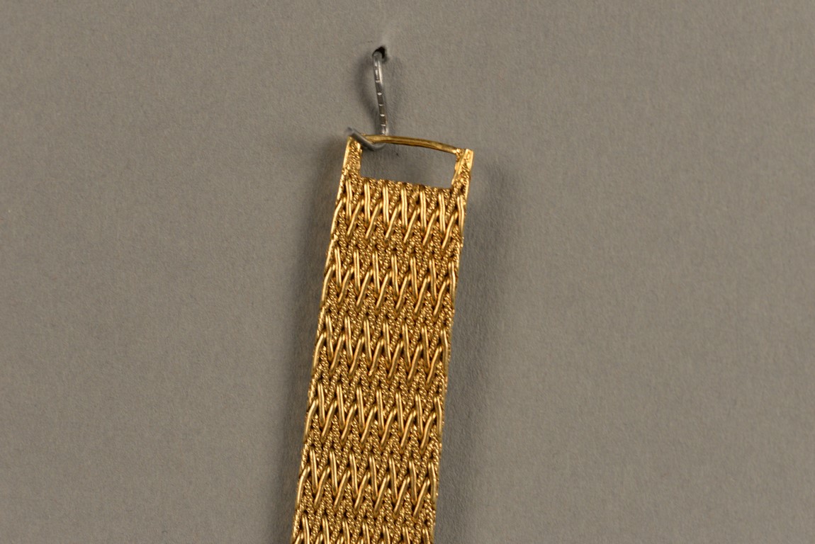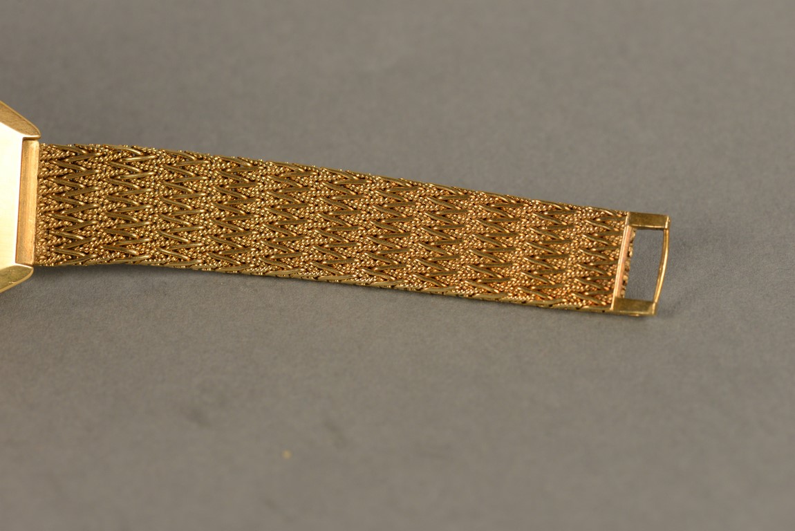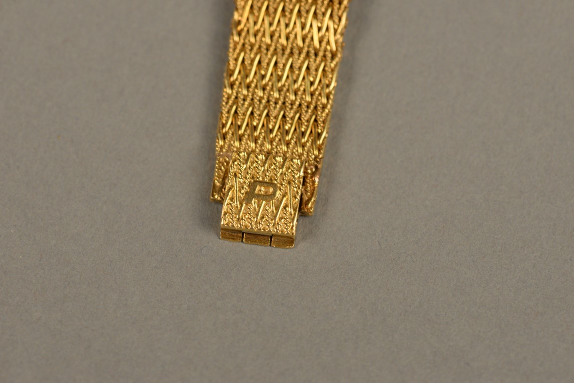 Lot 30F: Piaget hexagon gold, tiger eye, and diamond bracelet watch, having hexagon shaped dial set with tiger’s eye and pave diamond face ma…