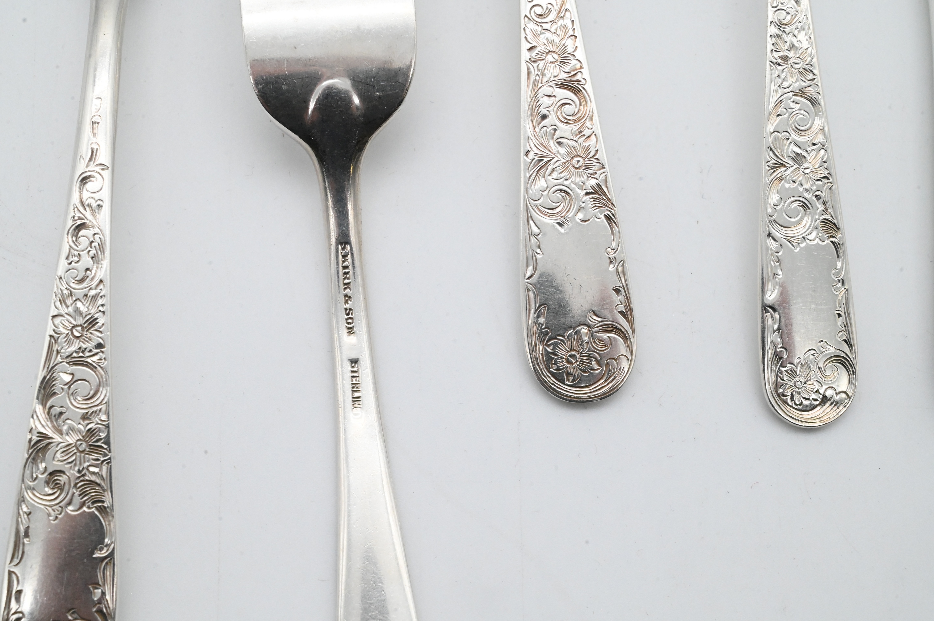 36 Piece S. Kirk and Son Sterling Silver Flatware Set in Old Maryland Engraved Pattern
