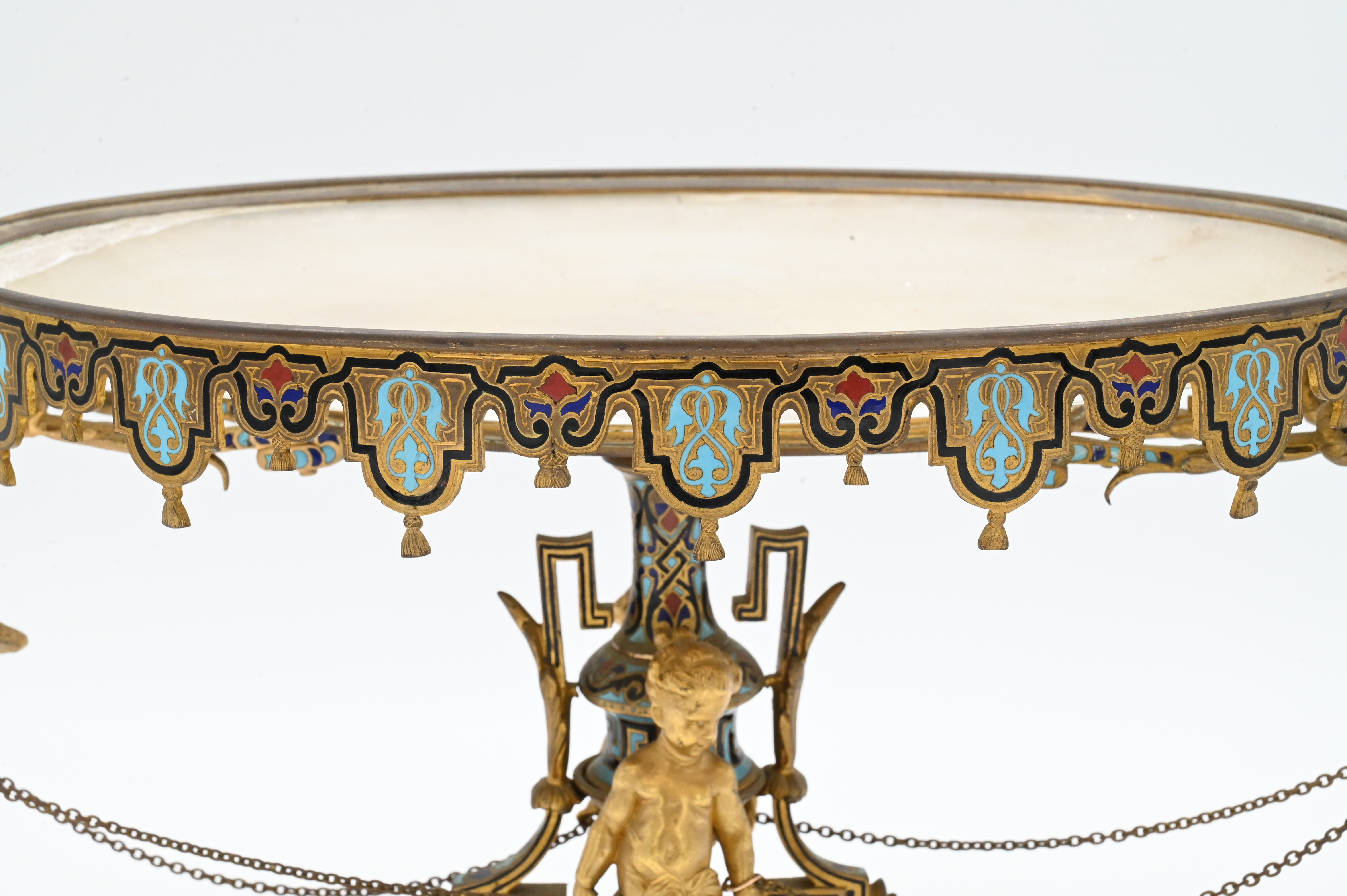 Lot 31: French Champleve Enamel and Alabaster Centerpiece