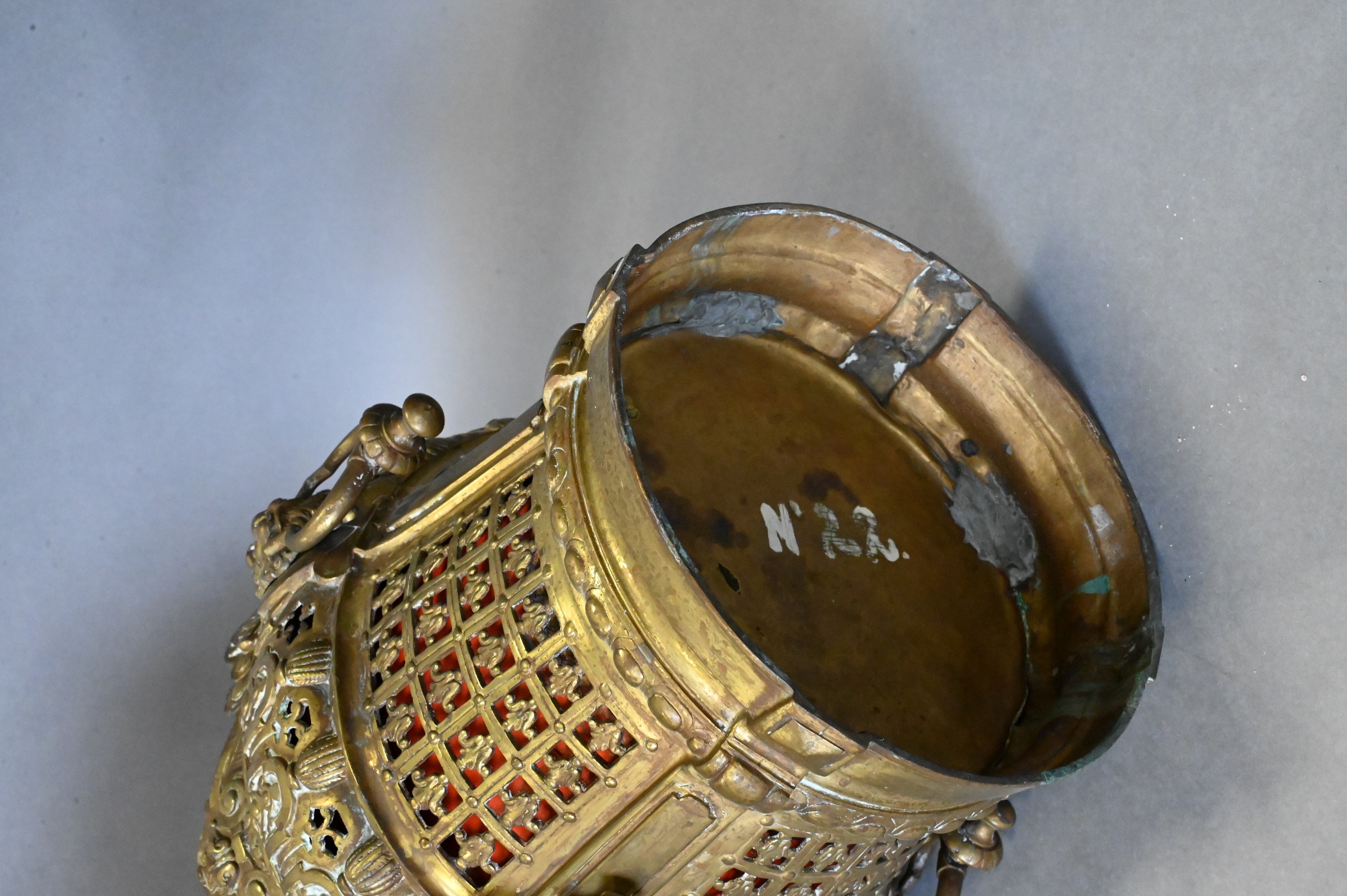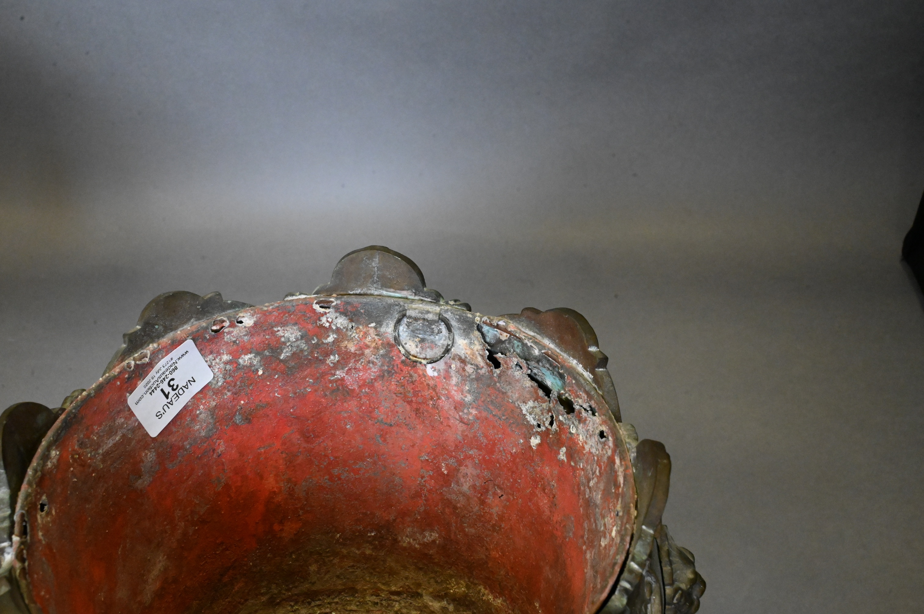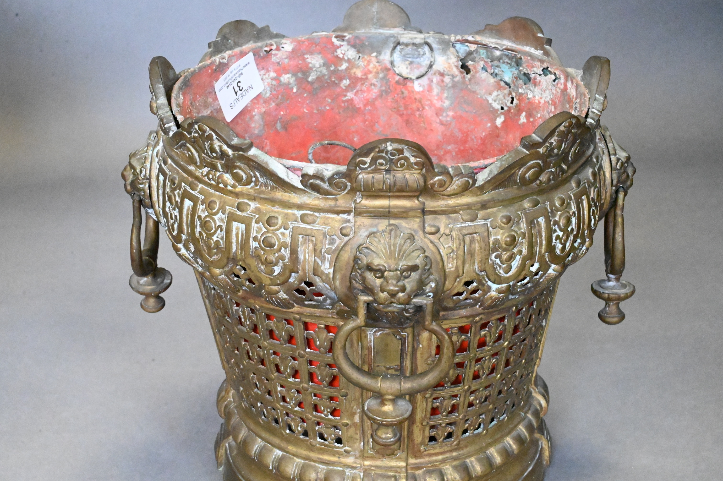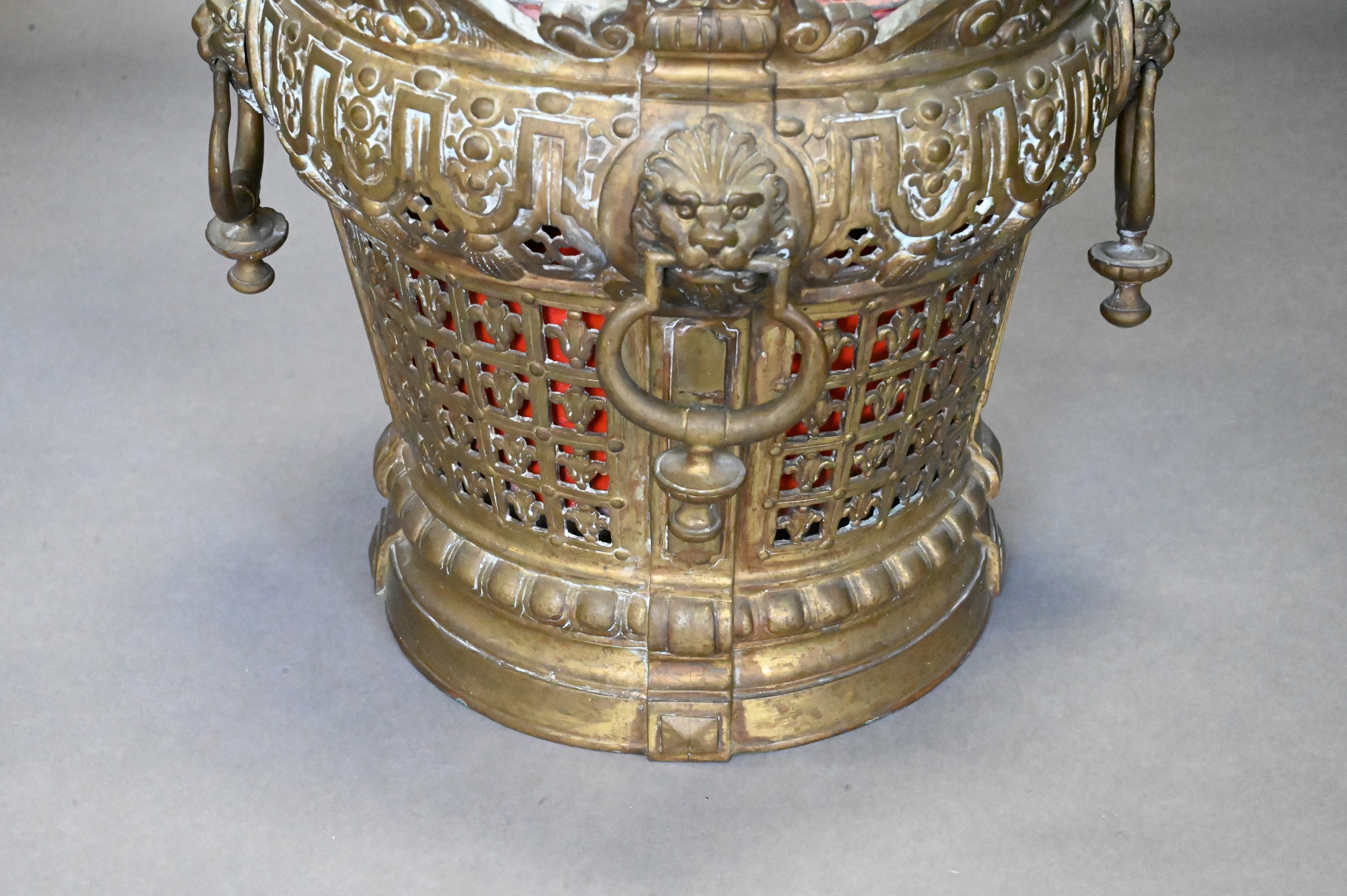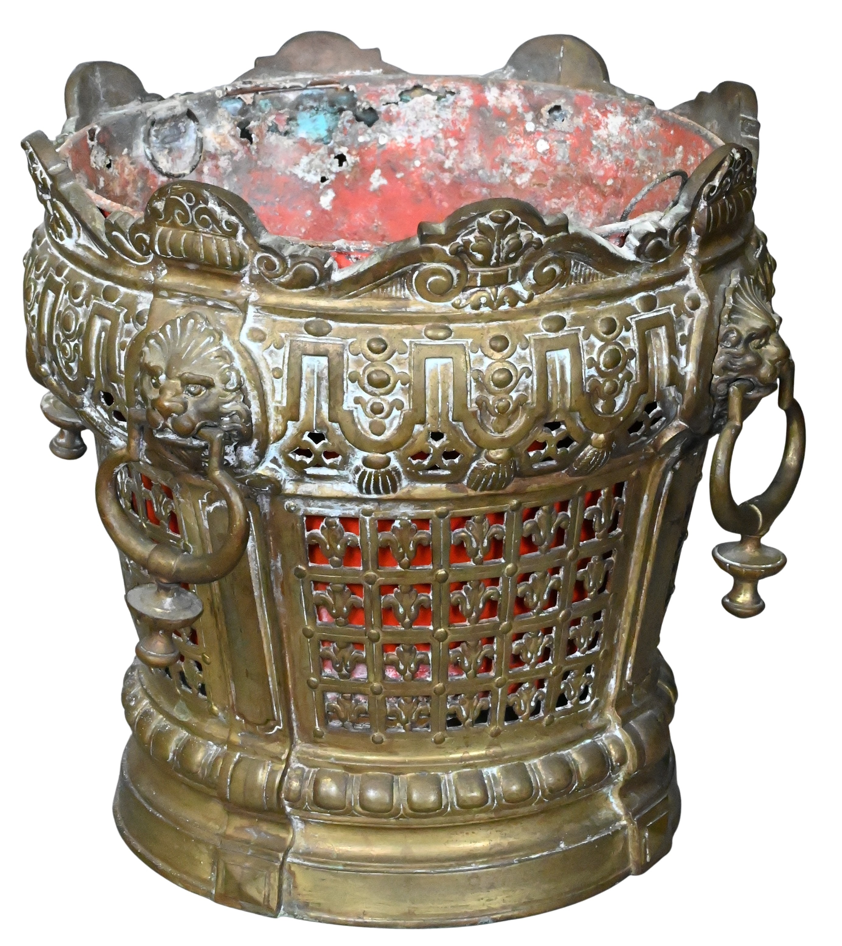 or wine cooler/coal bucket having figural lion mask door knocker handles and pleated fleur di lis motif