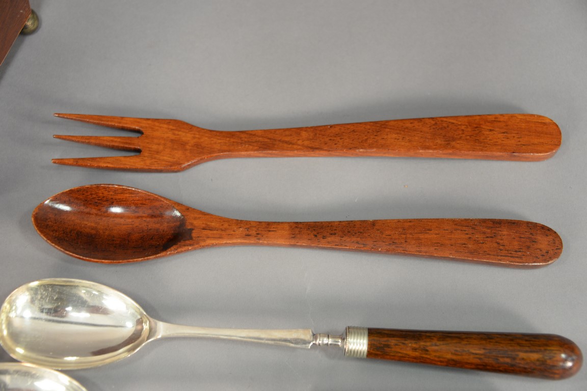 Large mahogany inlaid tea box with lion head handles on ball feet. ht. 7in., lg. 12in.