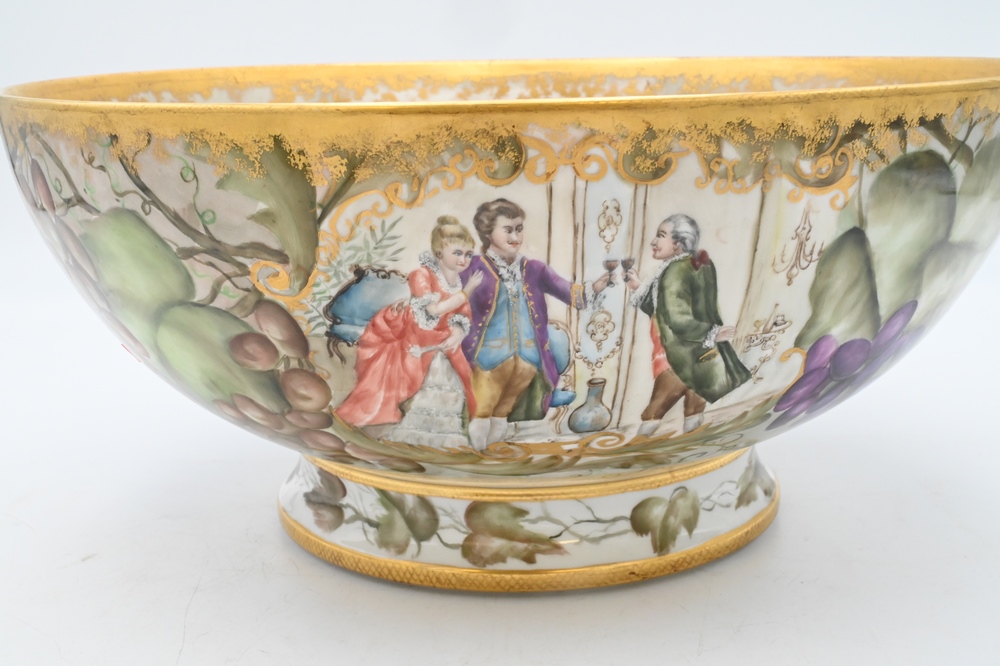Limoge Punch Bowl, having painted interior scene, height 7 inches, diameter 15 1/2 inches.