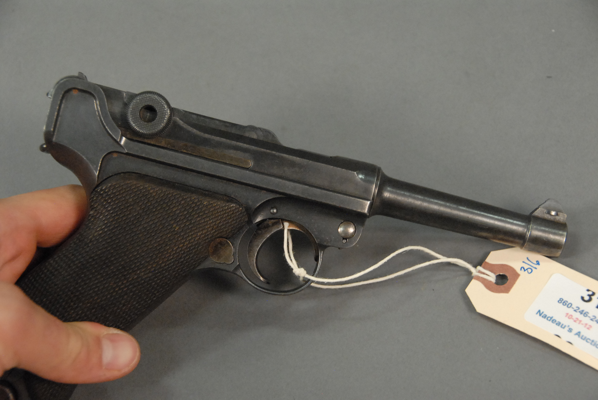 Lot 31: Lugar semi-automatic pistol, 7.65mm, barrel lg. 3 3/4, no sn 316.