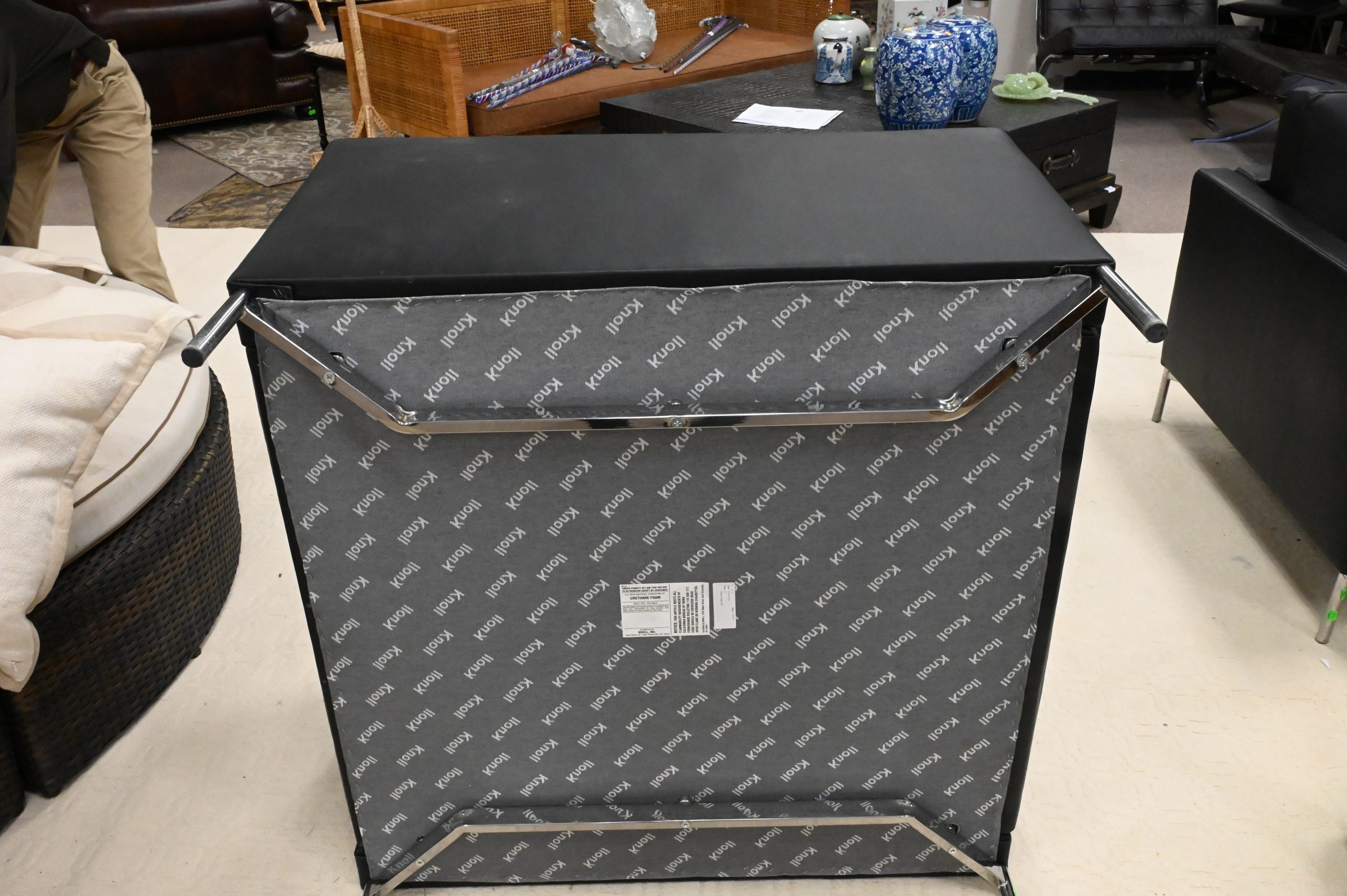 Pair of Leather Upholstered Knoll Club Chairs, each set on chrome legs and bare “Knoll” upholstery to underside of chairs, height 31 inches, width 36 inches, depth 34 1/2 inches.