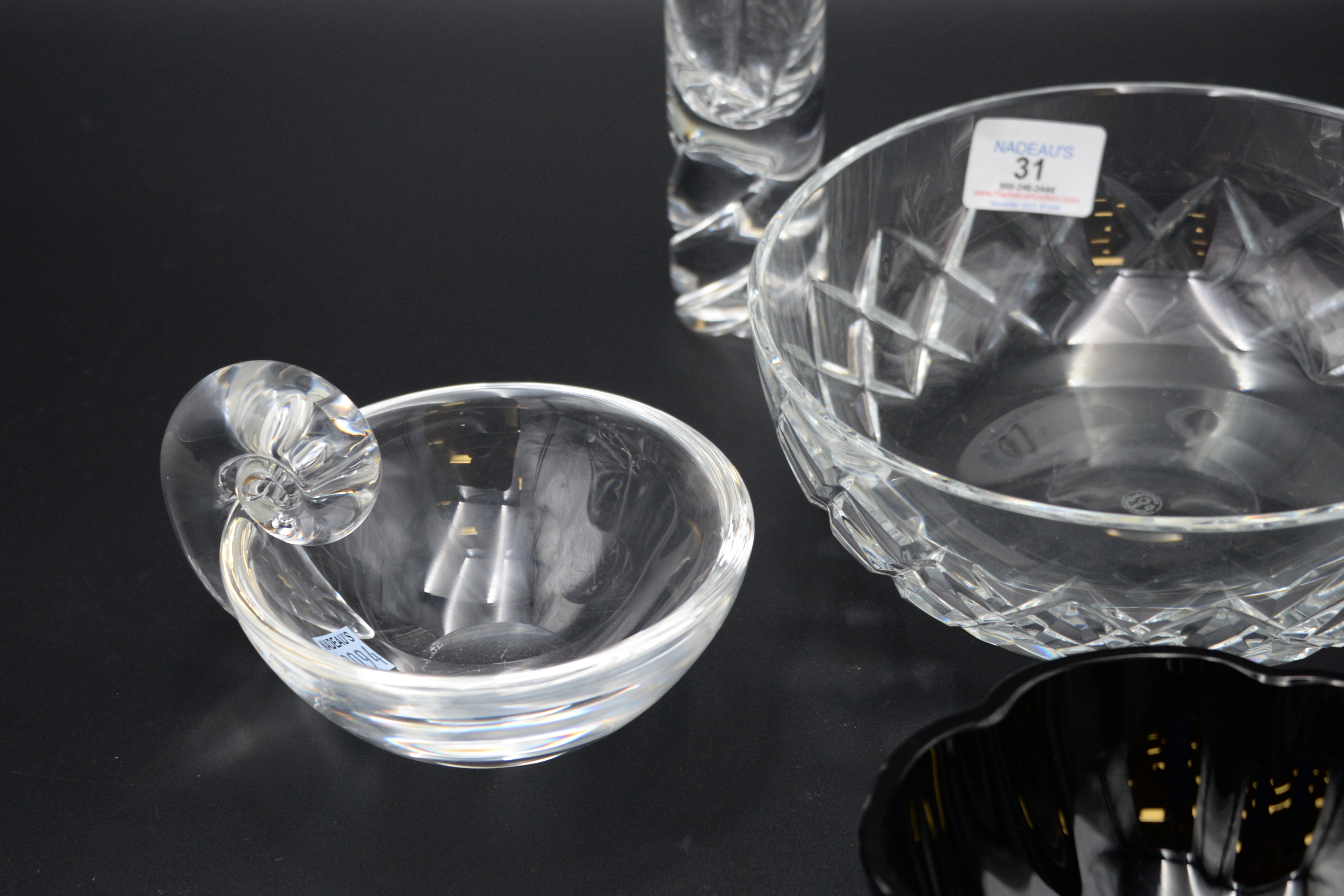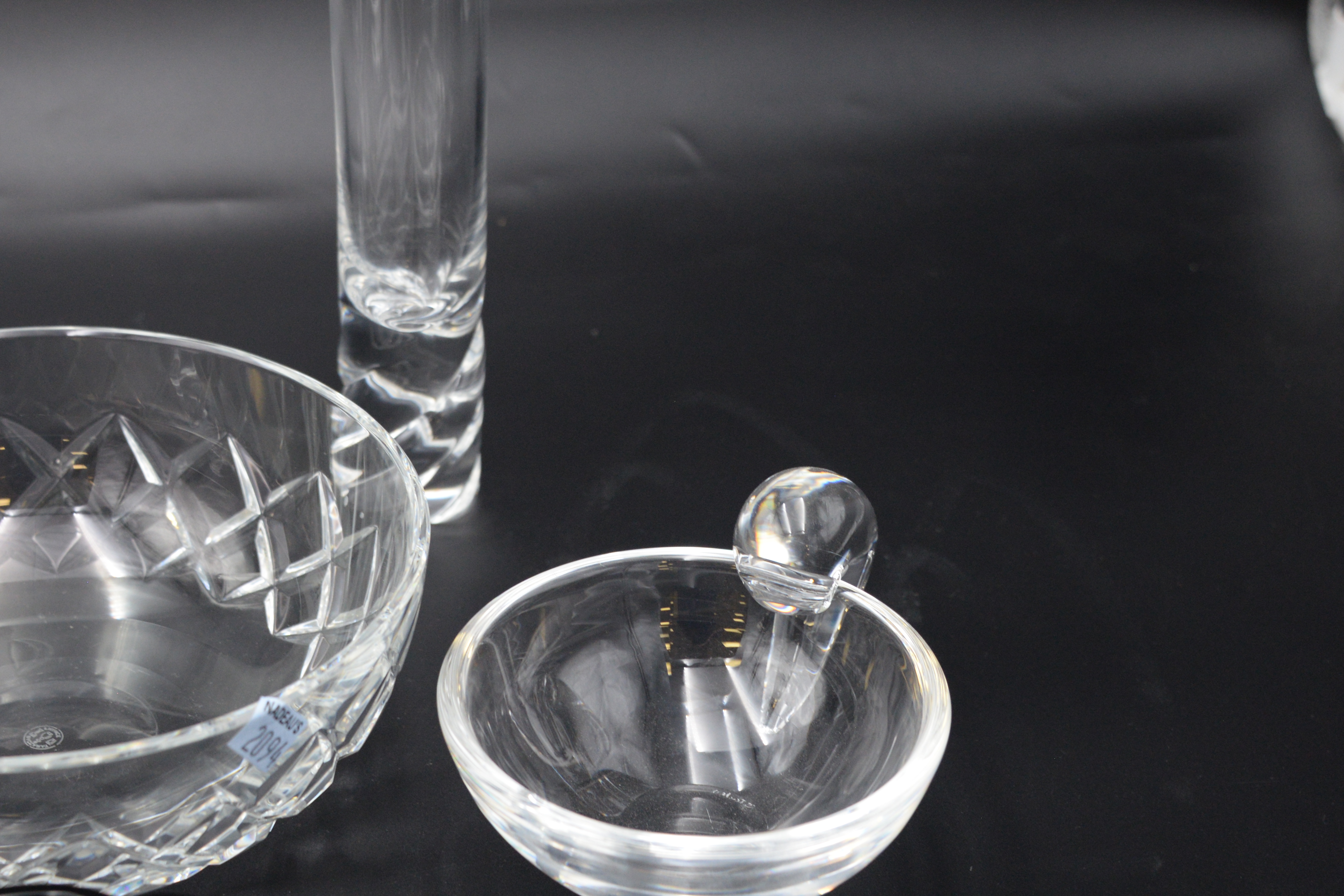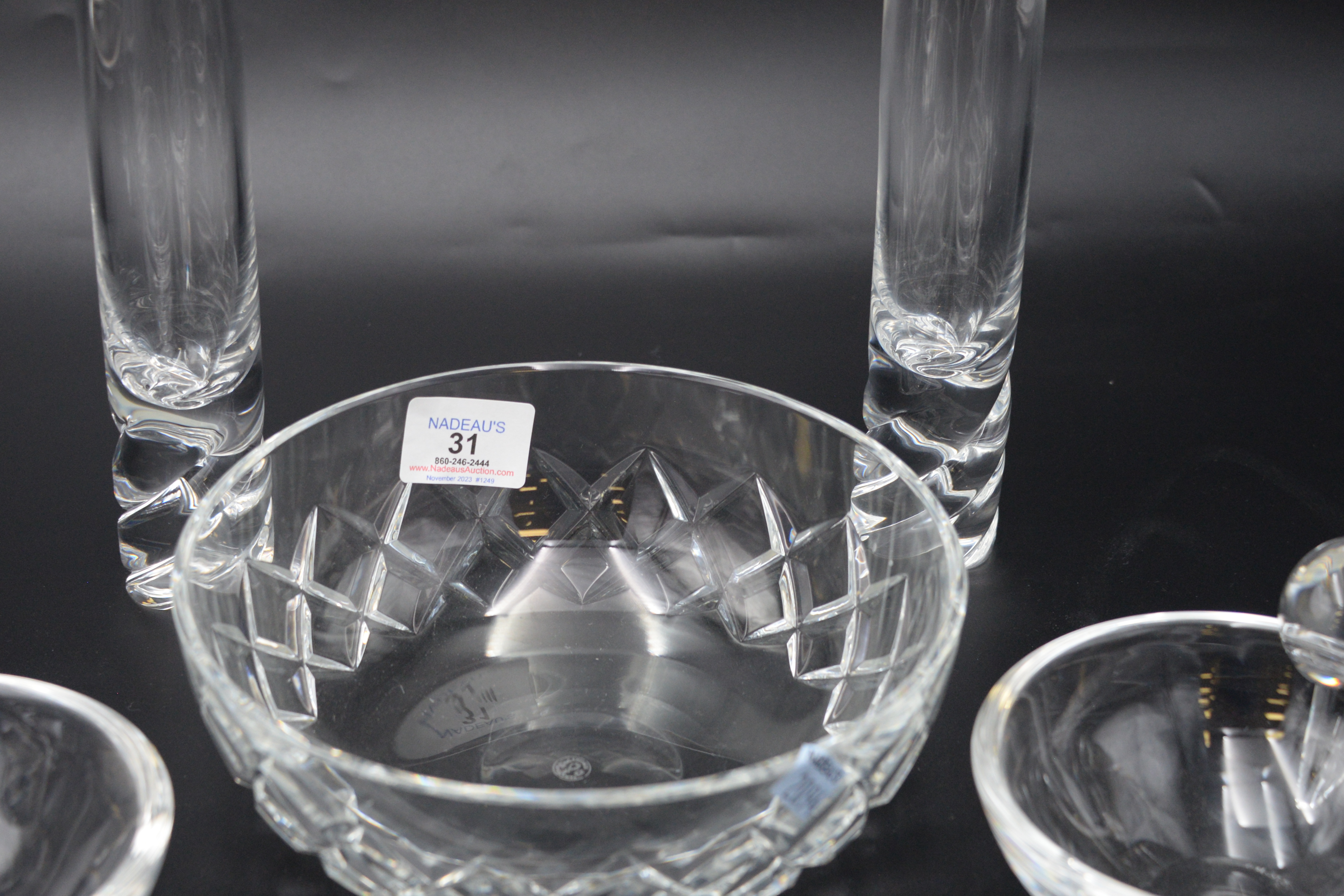 Six Piece Baccarat and Steuben Group To Include, pair of twist Steuben vases, two Baccarat bowls and two Steuben bowls, largest bowl diameter 8 inches