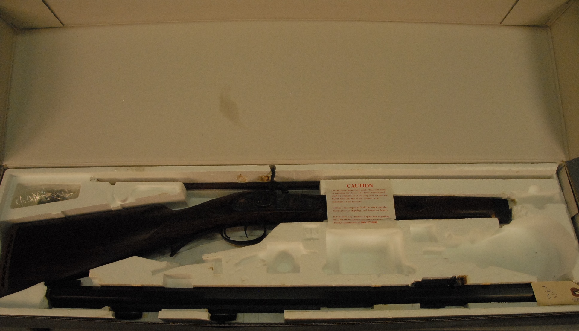Two percussion guns including AMR muzzle loading 20 gauge shotgun s/n 1790B and Cabela’s new in box .54 Hawken style muzzle loader rifle unfired no s/n.