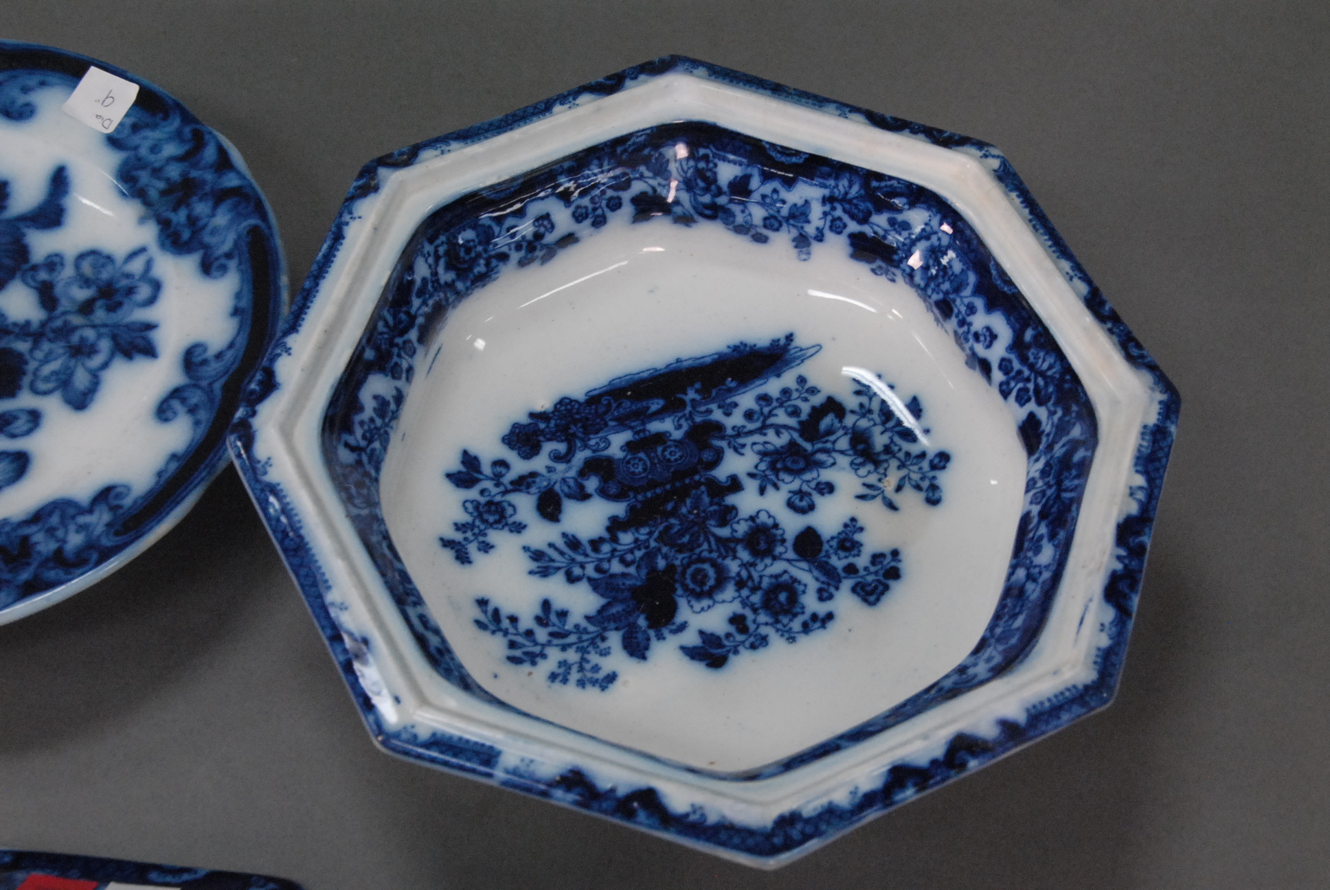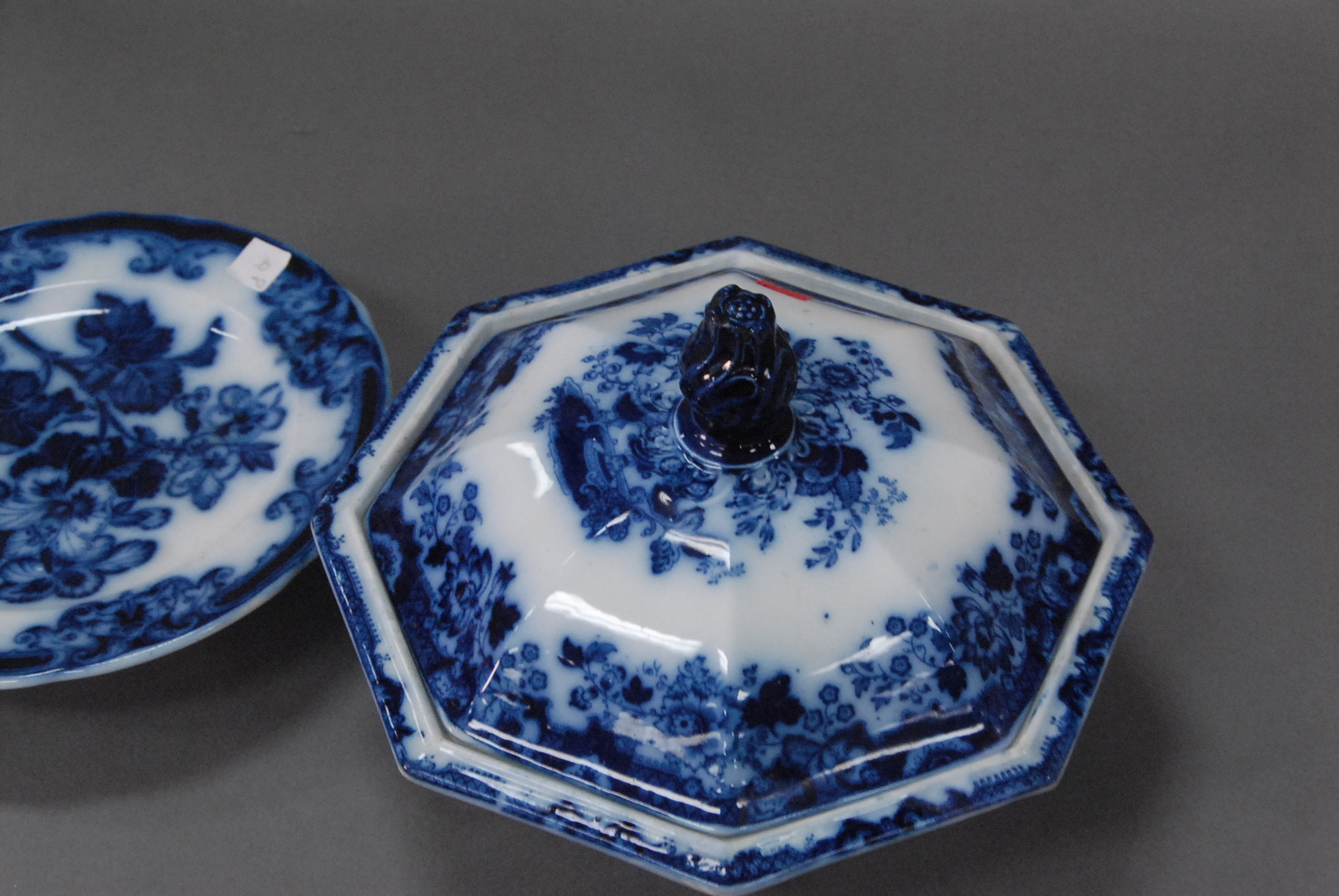 Lot 31: Two piece lot of flow blue including short compote and octagon covered vegetable dish 10.