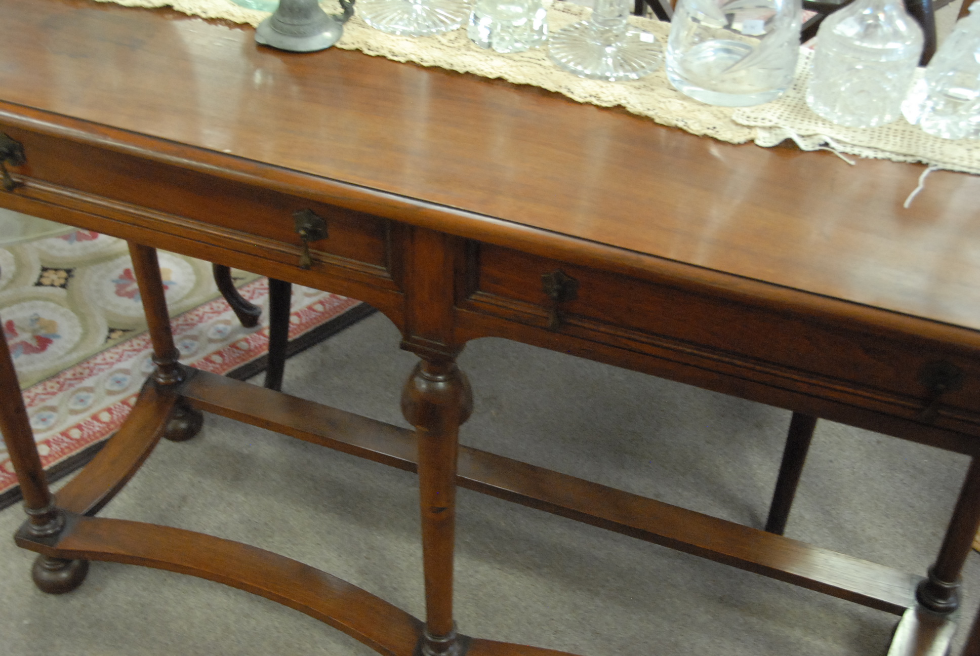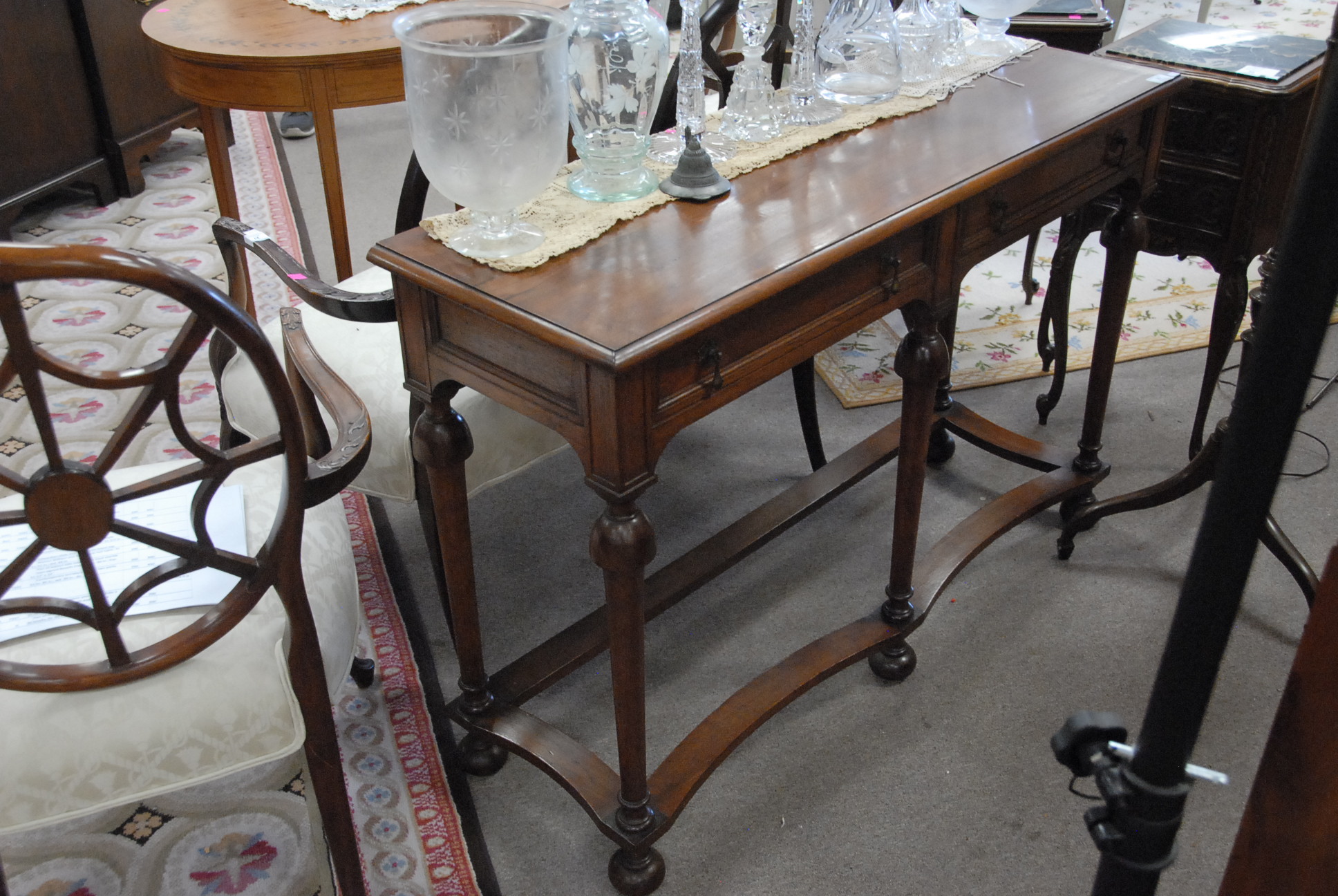 Walnut William and Mary style hall table, ht. 32 in. wd. 48 in.