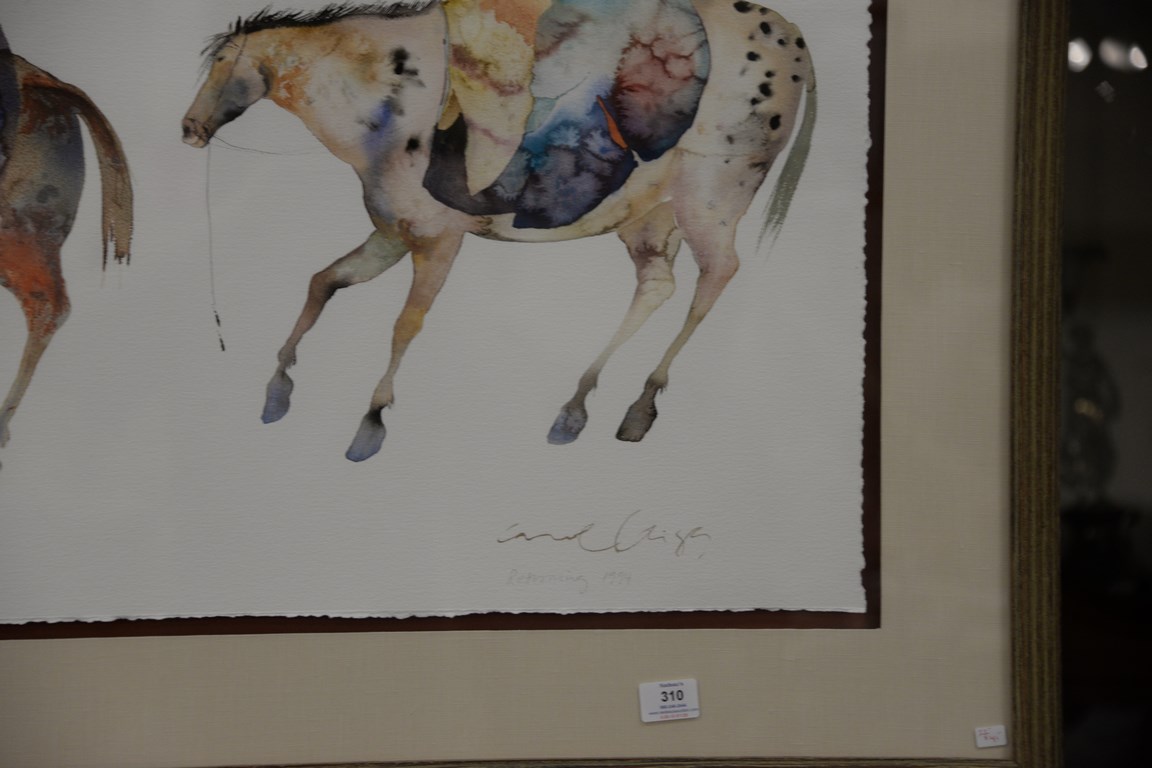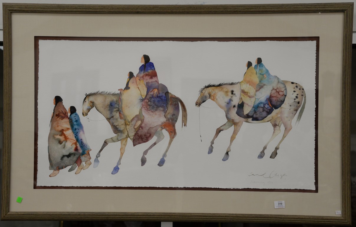 Lot 310: Carol Griggs, watercolor South Western Returning 1994, signed indistinctly lower right, 22 x 41