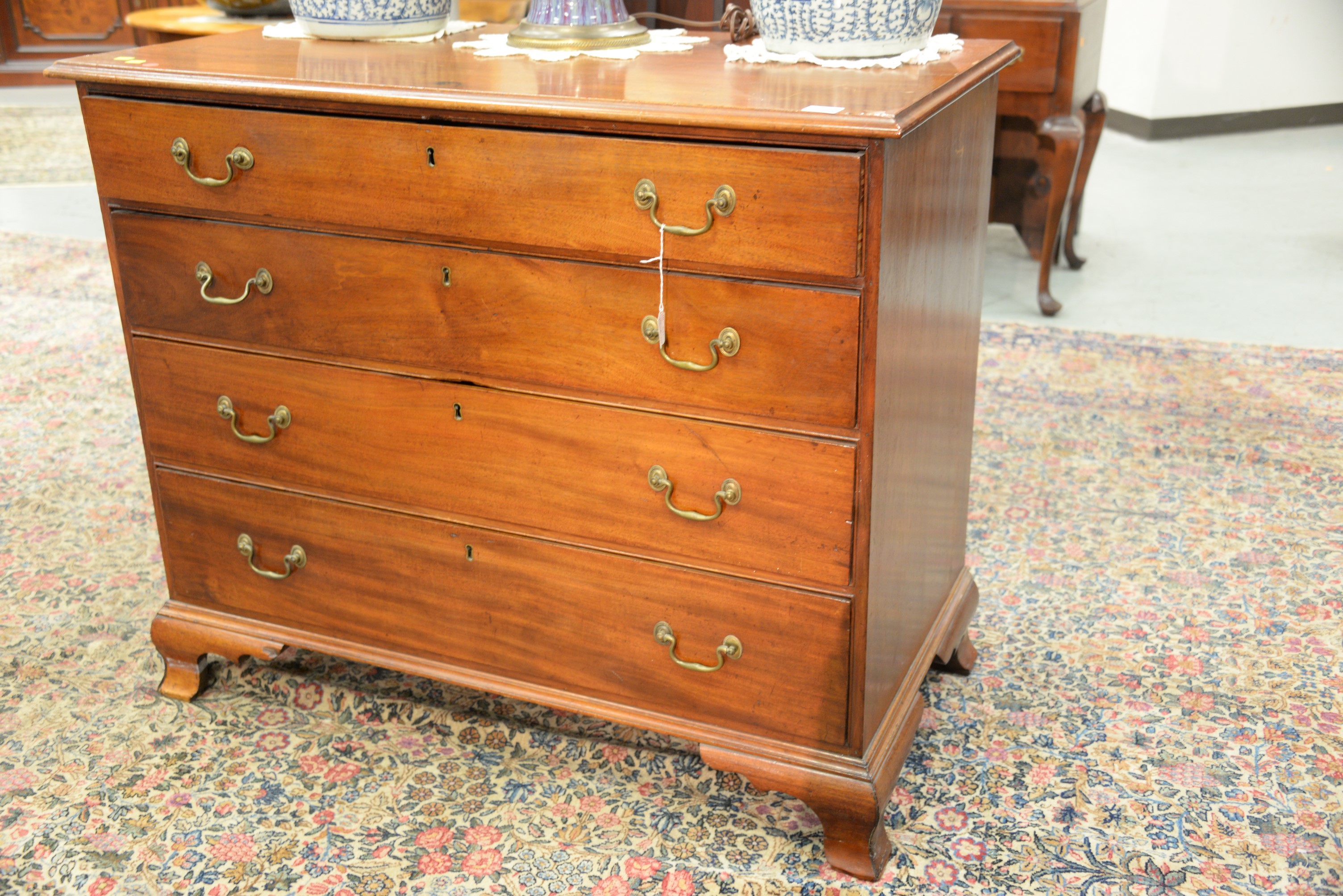 Lot 310: Chippendale mahogany chest of four drawers. ht. 37 in. wd. 42 in. dp. 23 in.