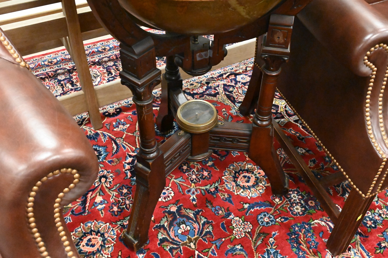 Eastlake Victorian Globe on Stand, having compass in base, late 19th century, height 43 inches, diameter 23 inches.