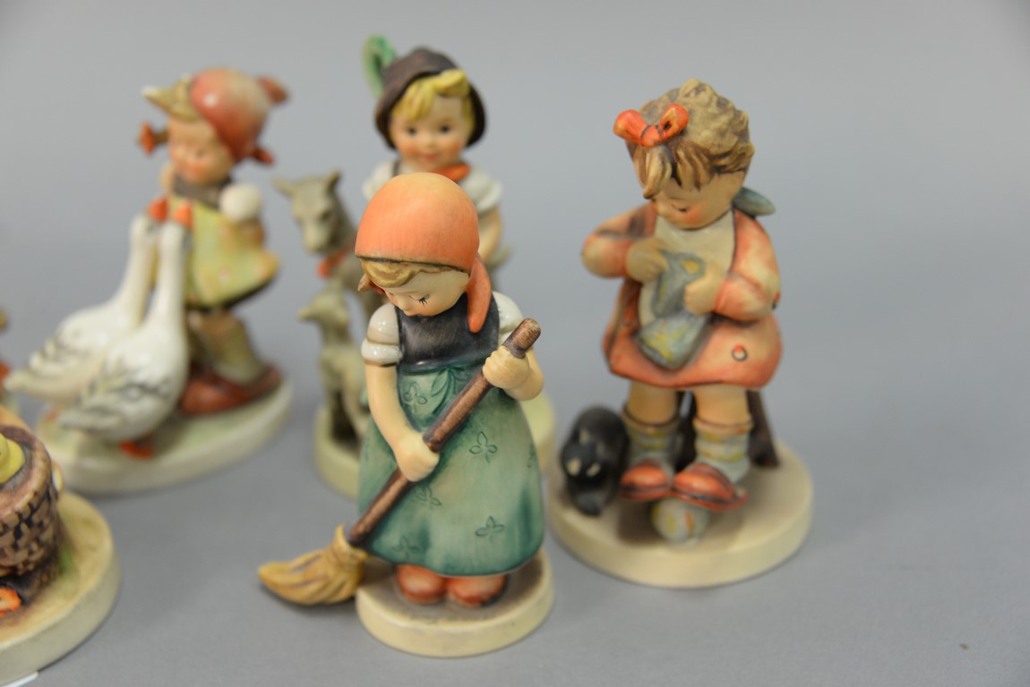 Lot 310: Group of six Hummels to include Little Goat Herder #200/0, Goose Girl #473/0, girl sweeping #771, etc.