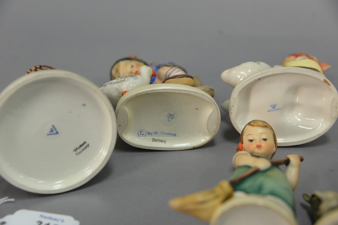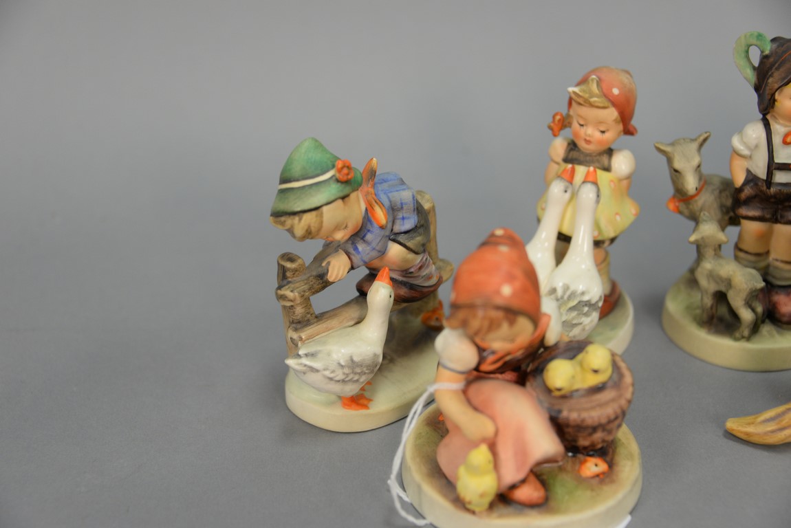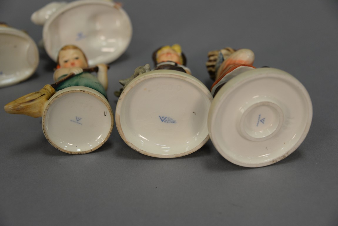 Group of six Hummels to include Little Goat Herder #200/0, Goose Girl #473/0, girl sweeping #771, etc.