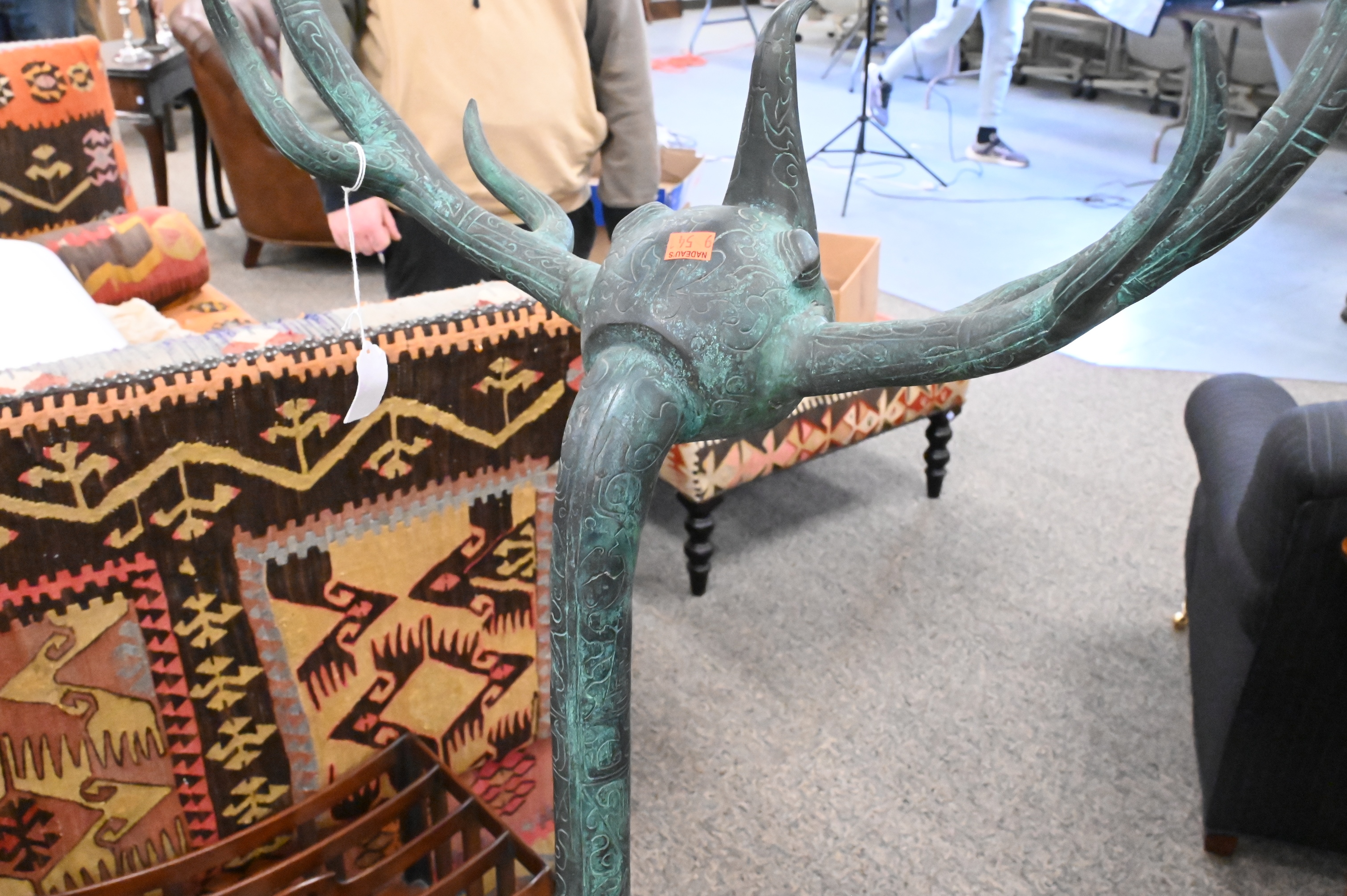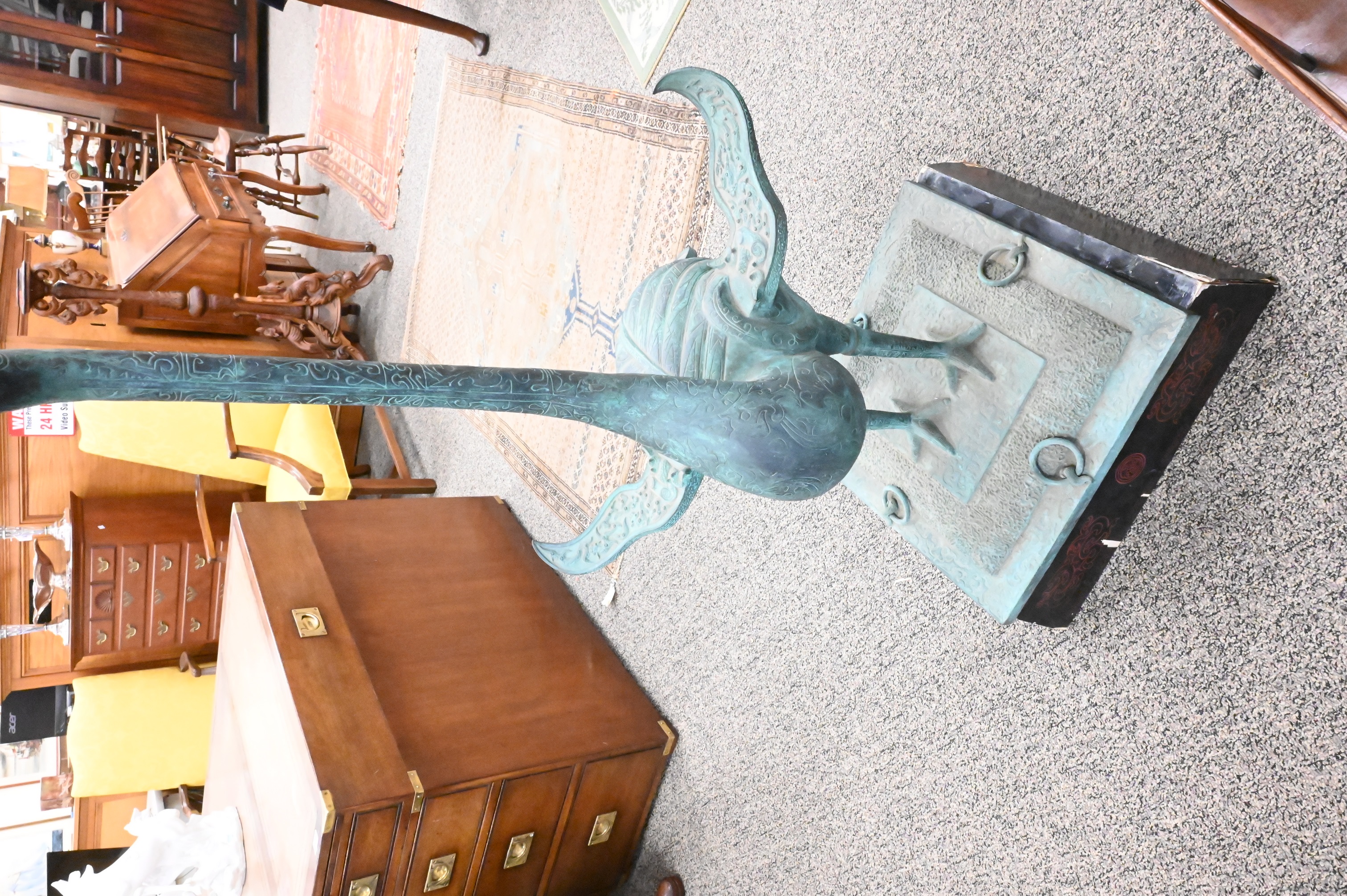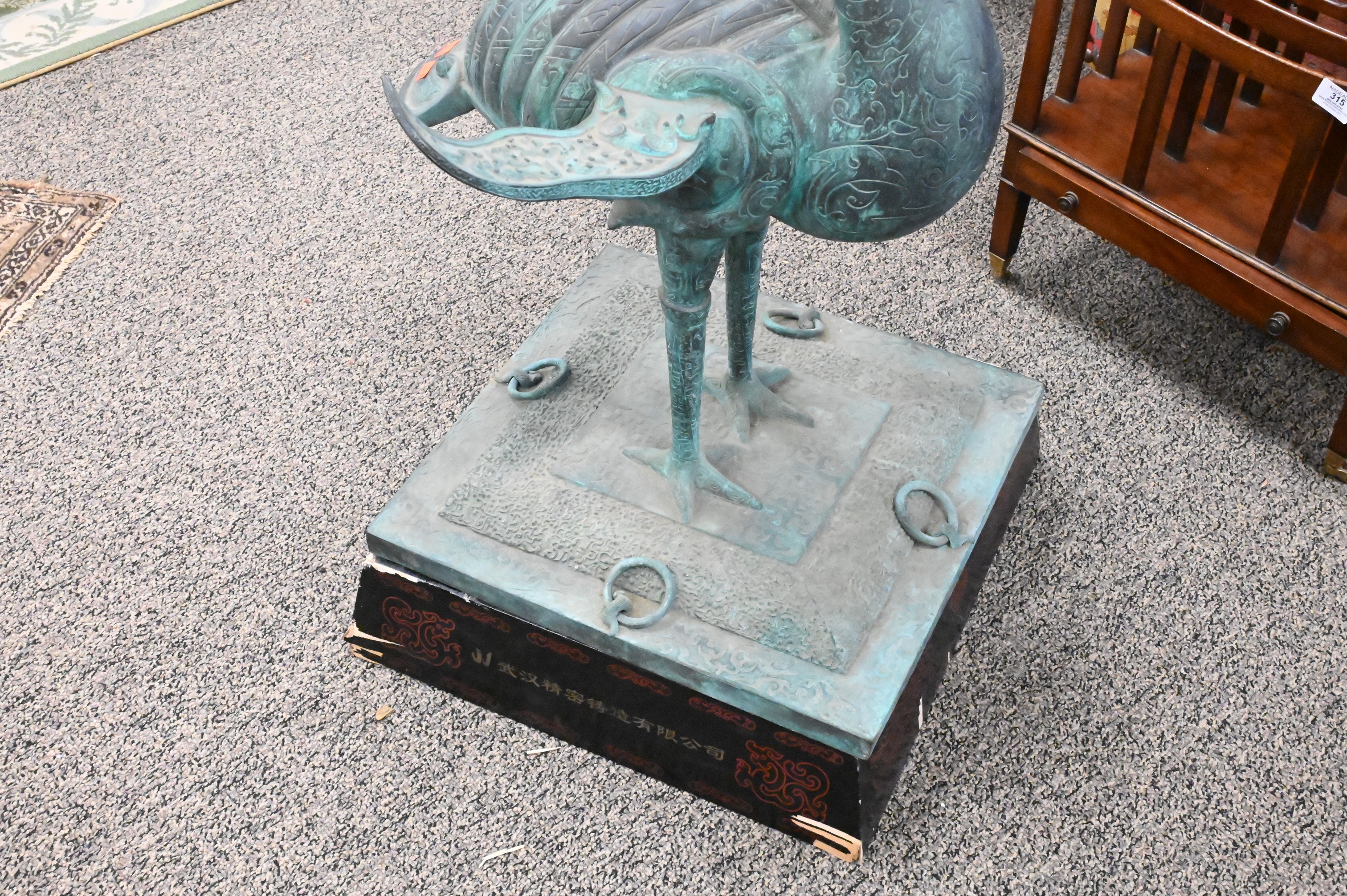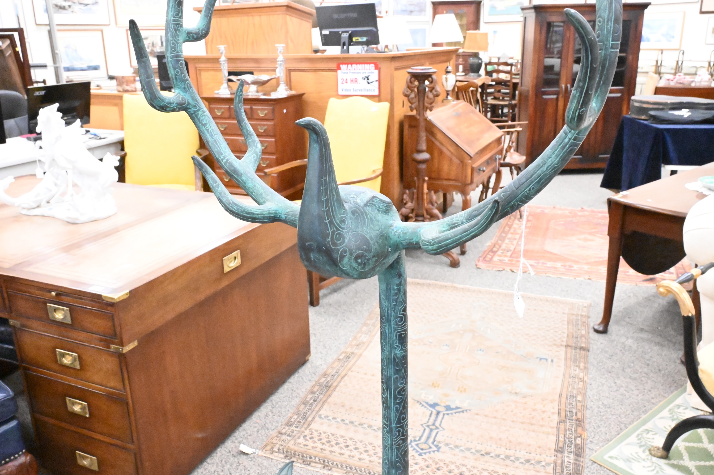 Lot 310: Han Style Chinese Bronze Crane with Antlers