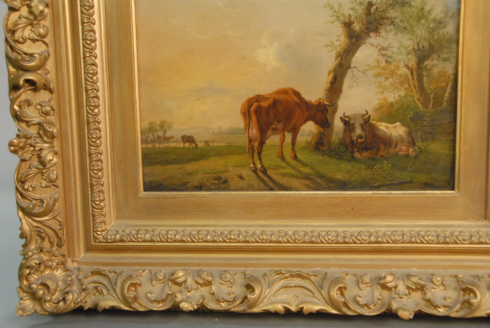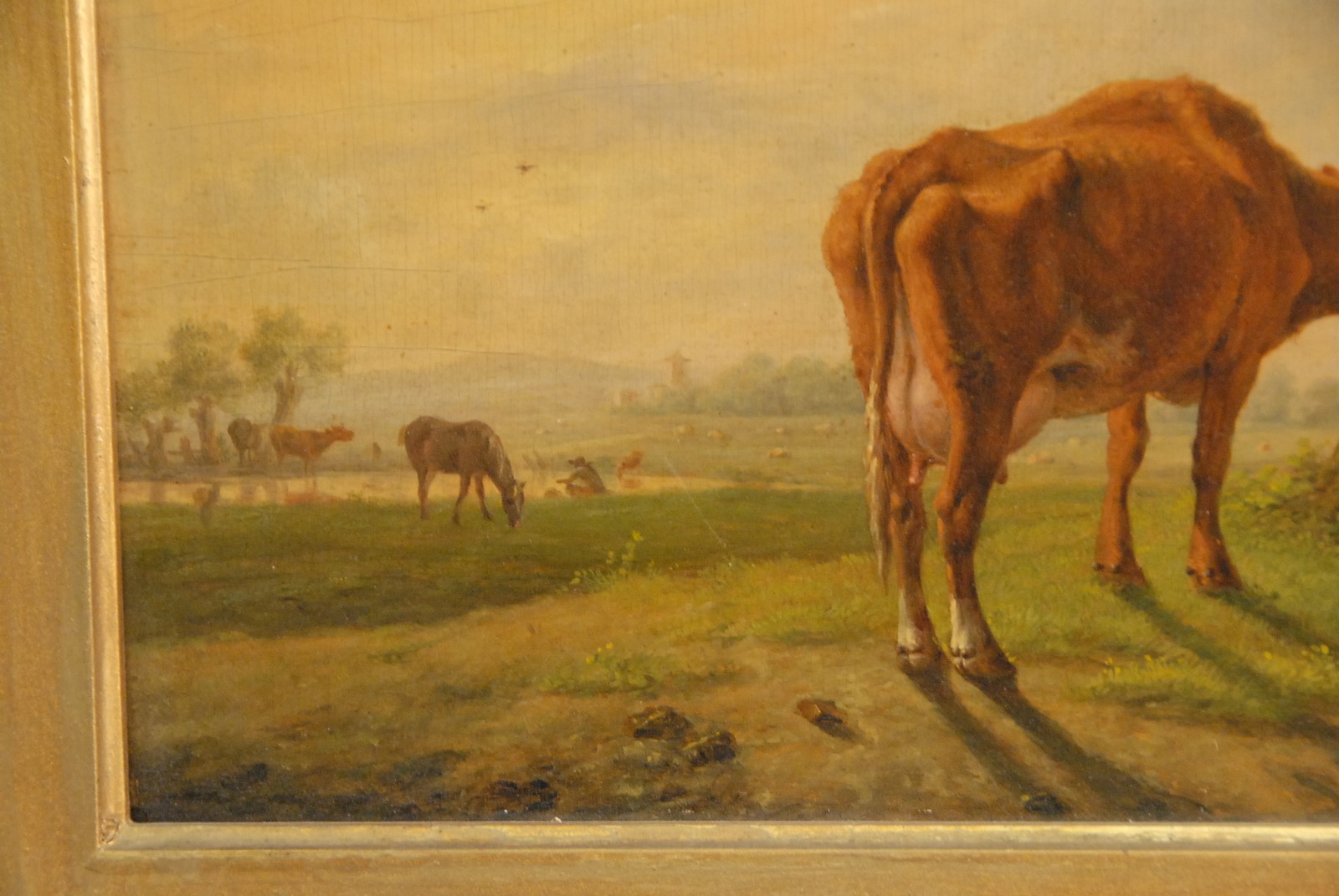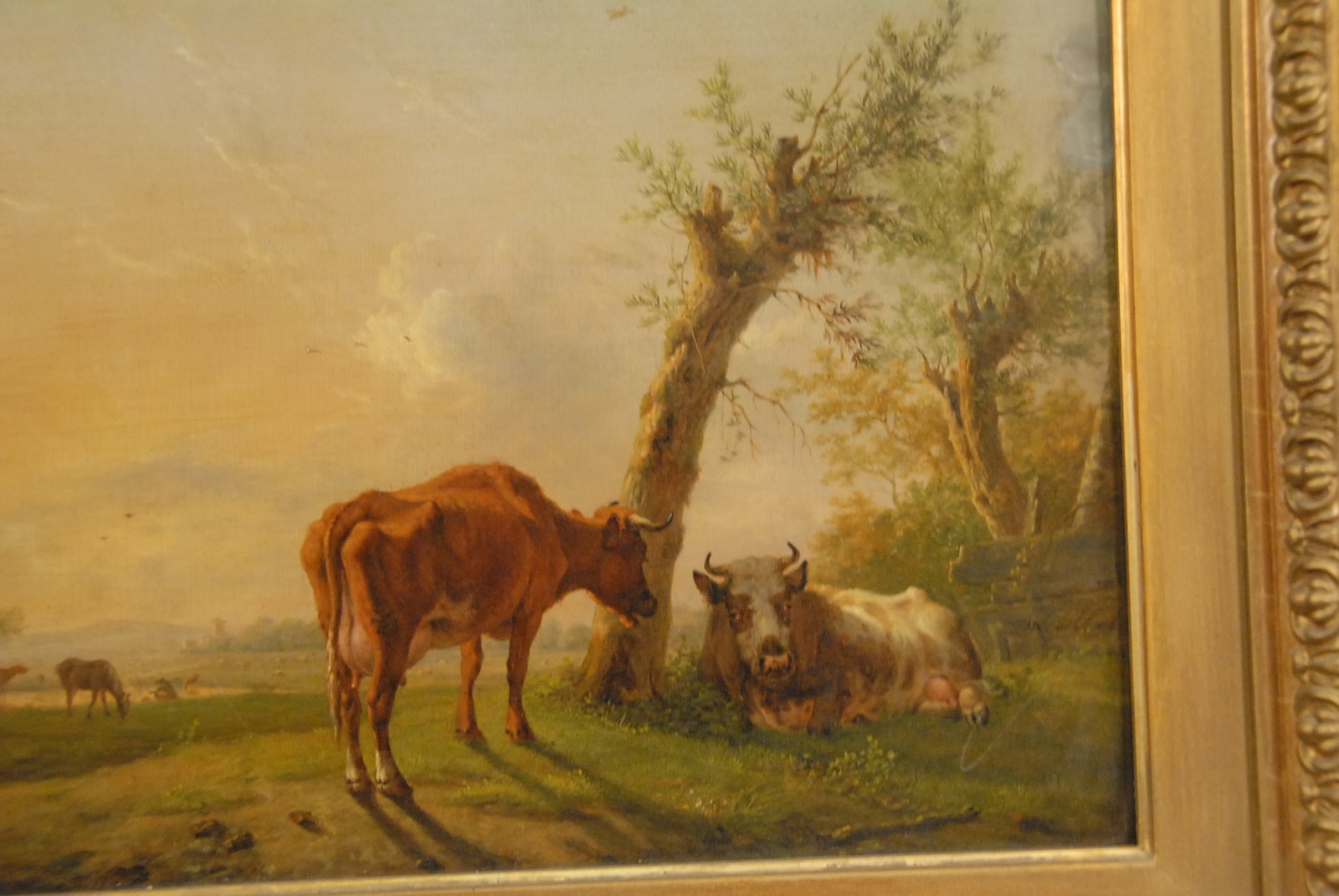 Lot 310: Jan Baptist Kobell 1778-1814 CATTLE ON THE FARM oil on panel signed lower right J. Kobell old paper label on verso 9 1/4 x 11