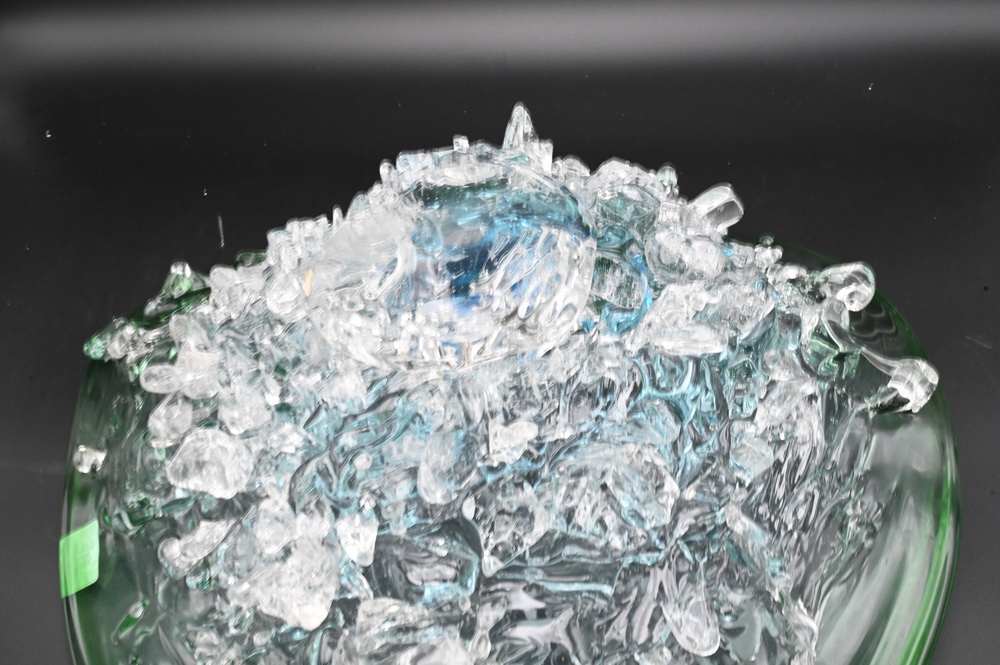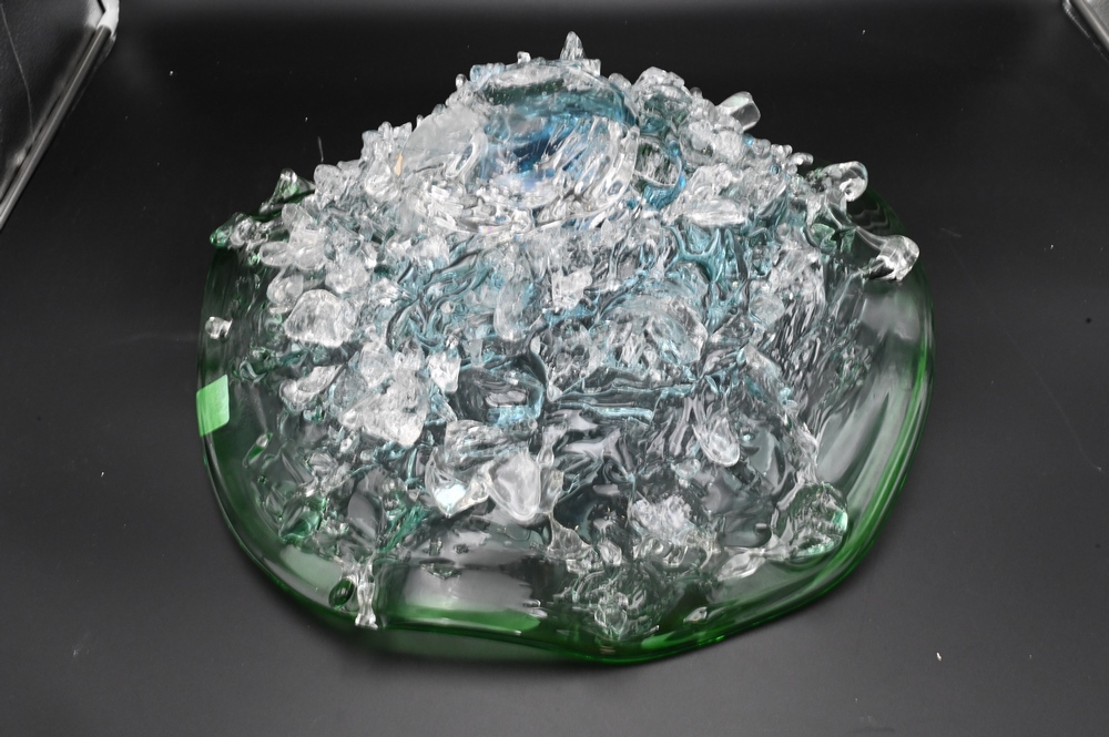 Lot 310: Large Center Bowl Sculpture, freeform style, signed illegibly on bottom with $1,800 sale tag, height 7.75 inches, diameter 18.5 inches.