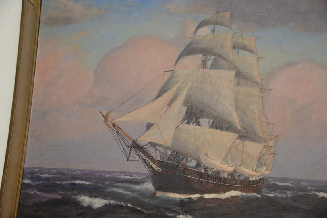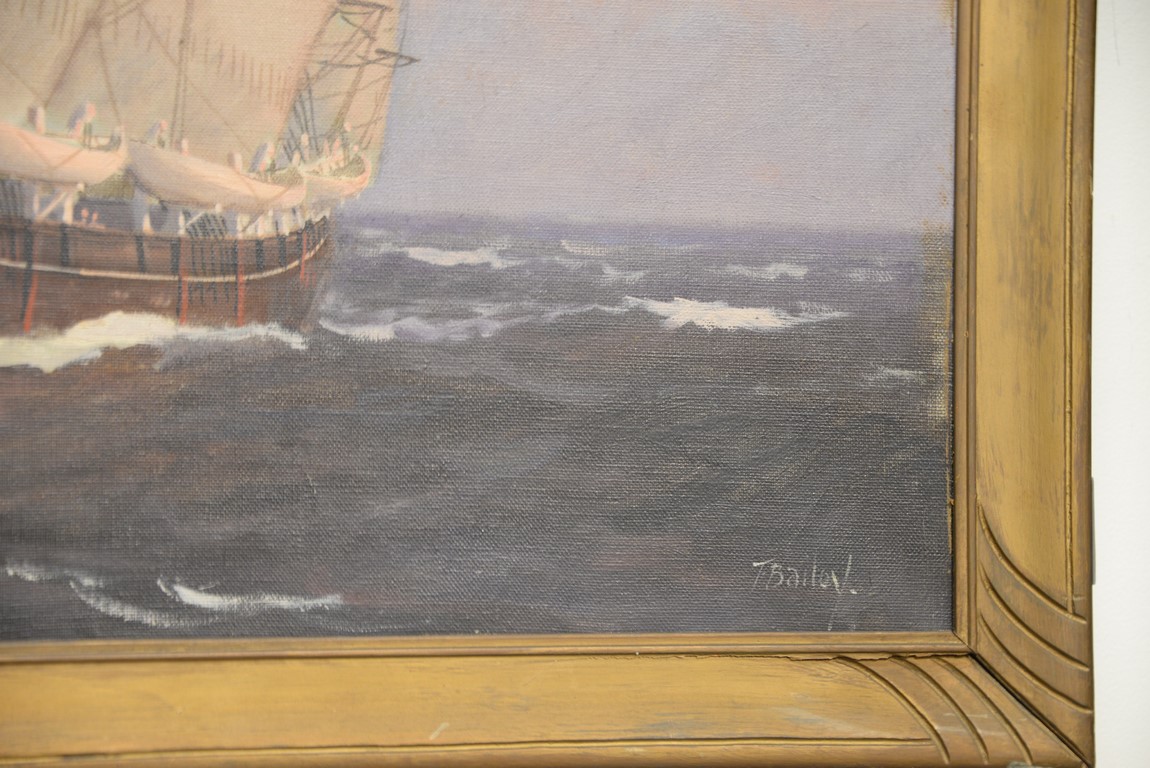 Lot 310: T. BAILEY Sailing Ship at Sunset oil on canvas signed lower right T. Bailey 19th/20th century 24 x 32