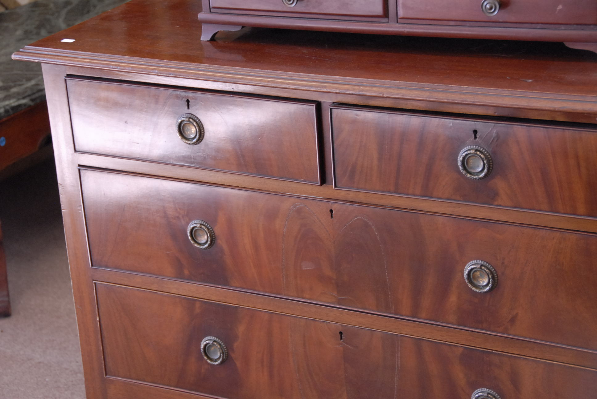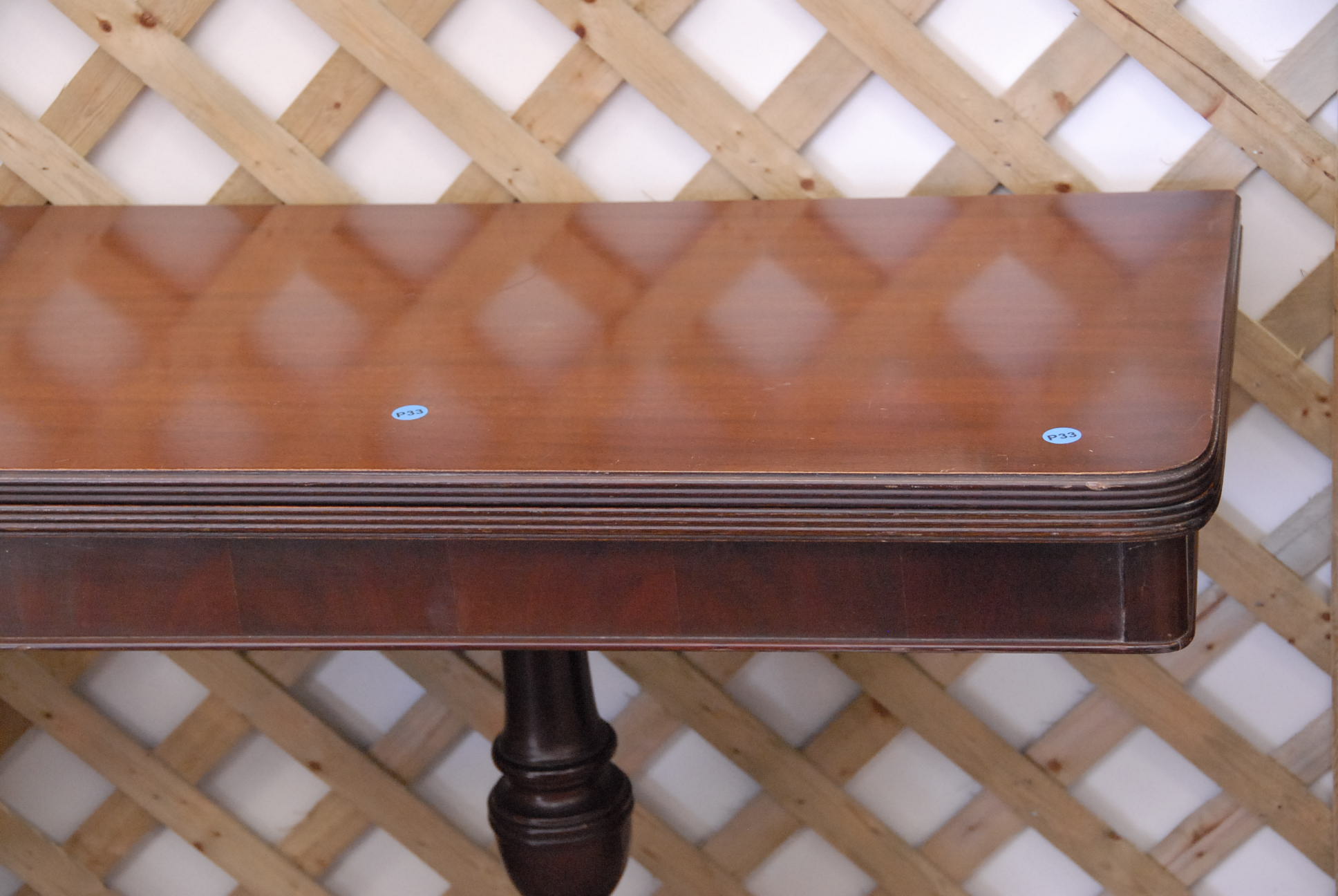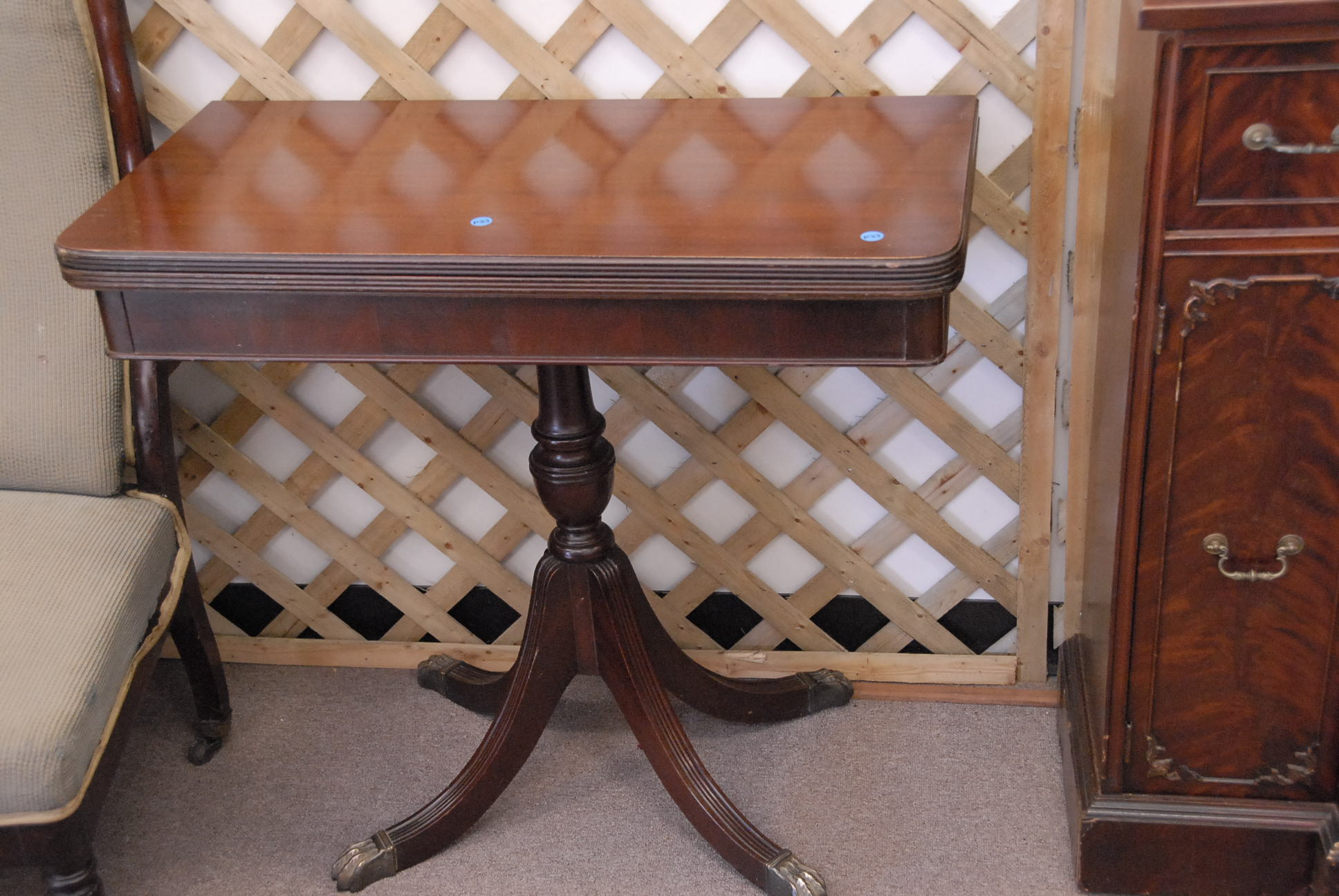 Two piece lot to include 2 over 2 , 2-drawer mahogany chest and a mahogany Duncan Phyfe style game table.