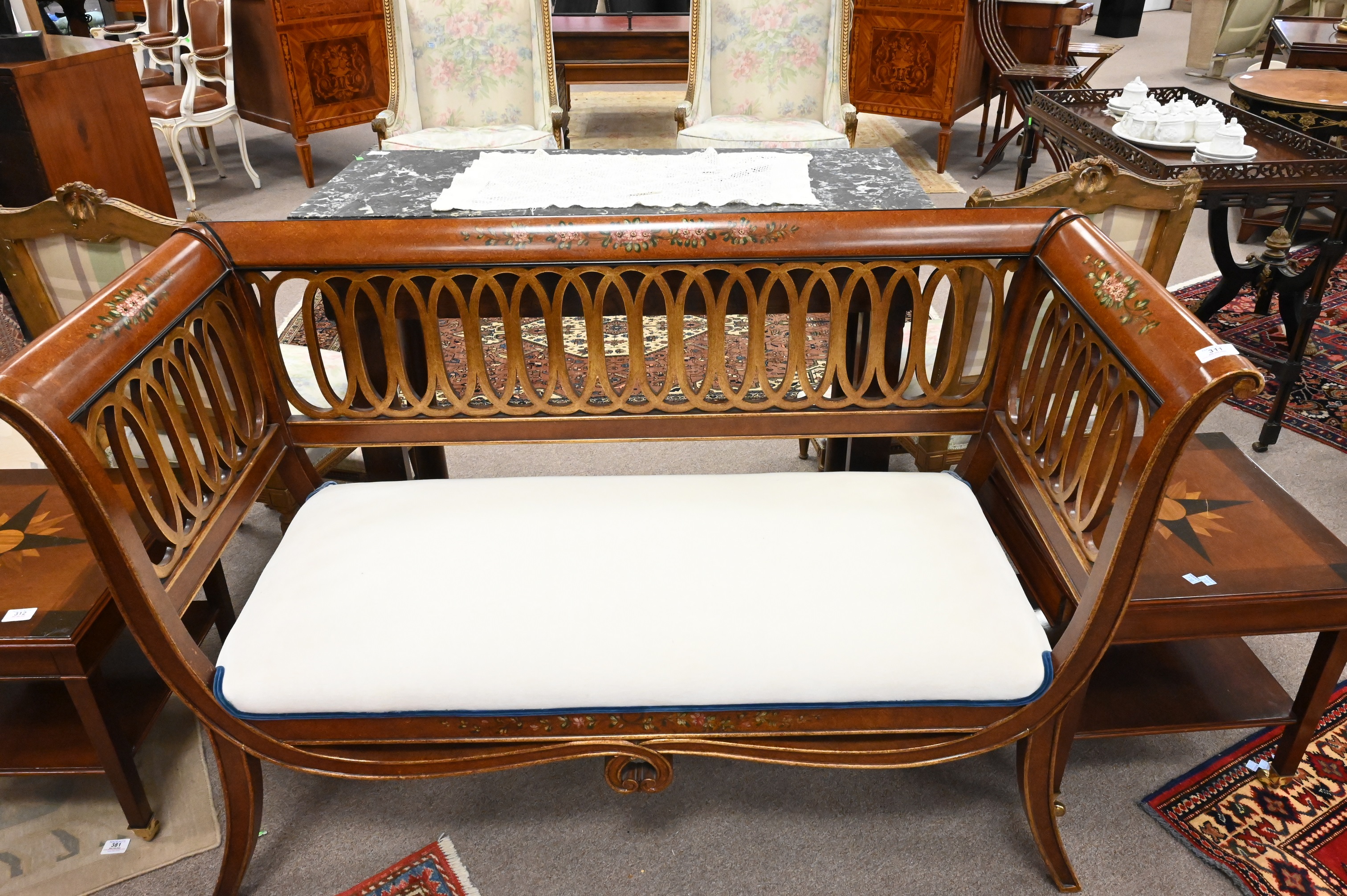 Adams Style Window Bench, having custom upholstered seat, height 35 inches, width 54 inches, depth 22 inches.
