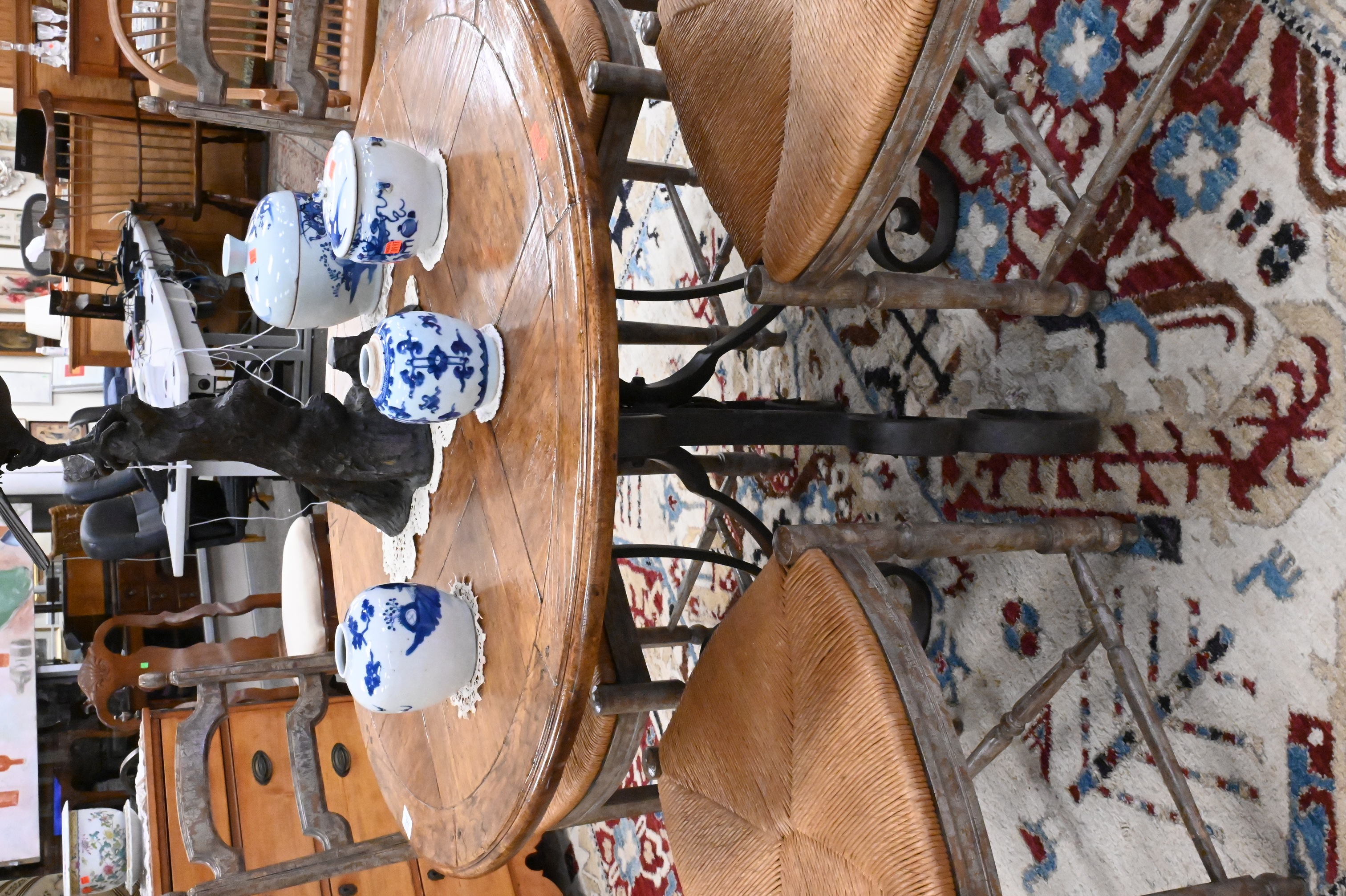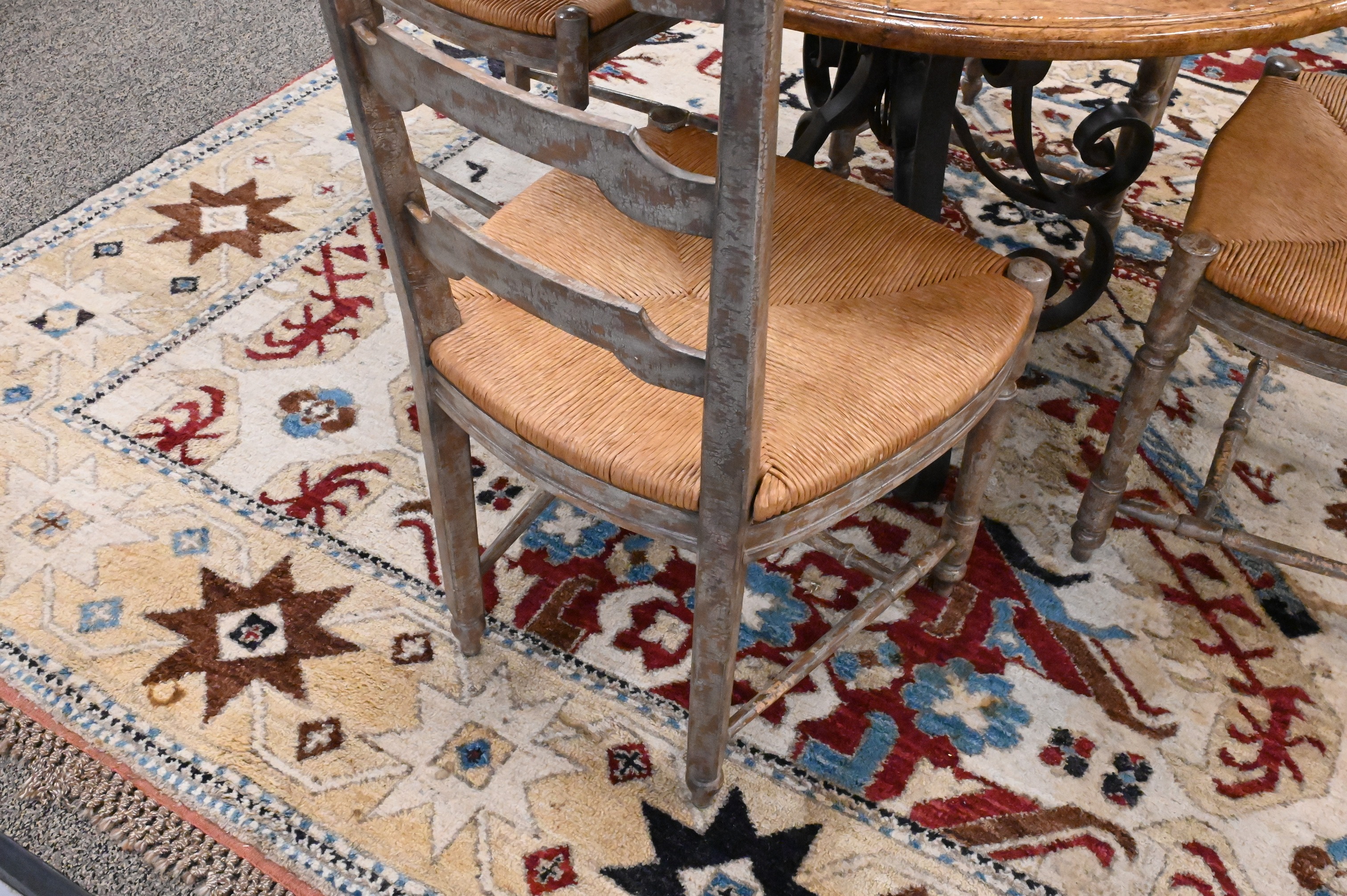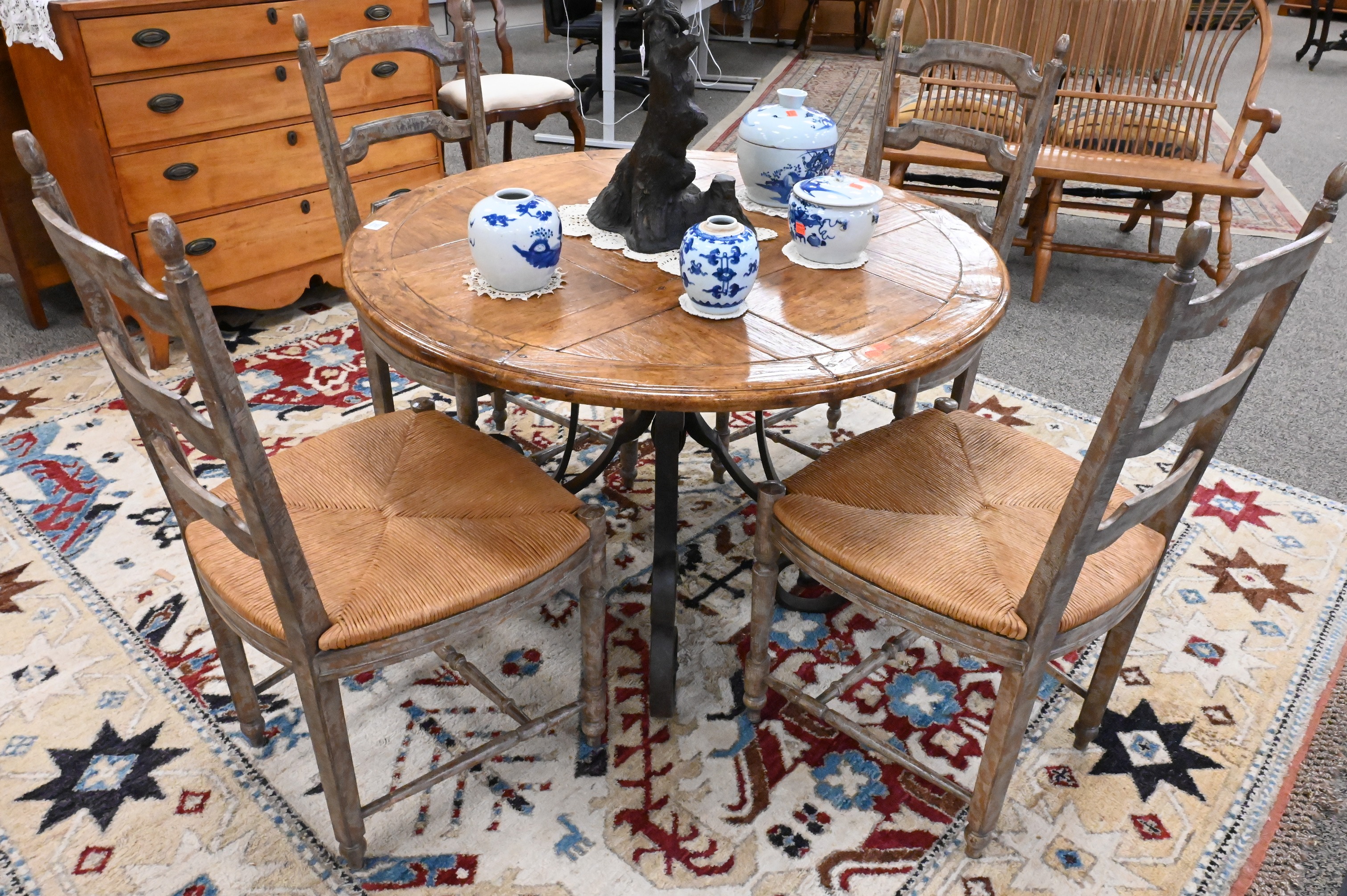 to include a kitchen table with iron base along with four chairs with rush seats by Collection Reproductions