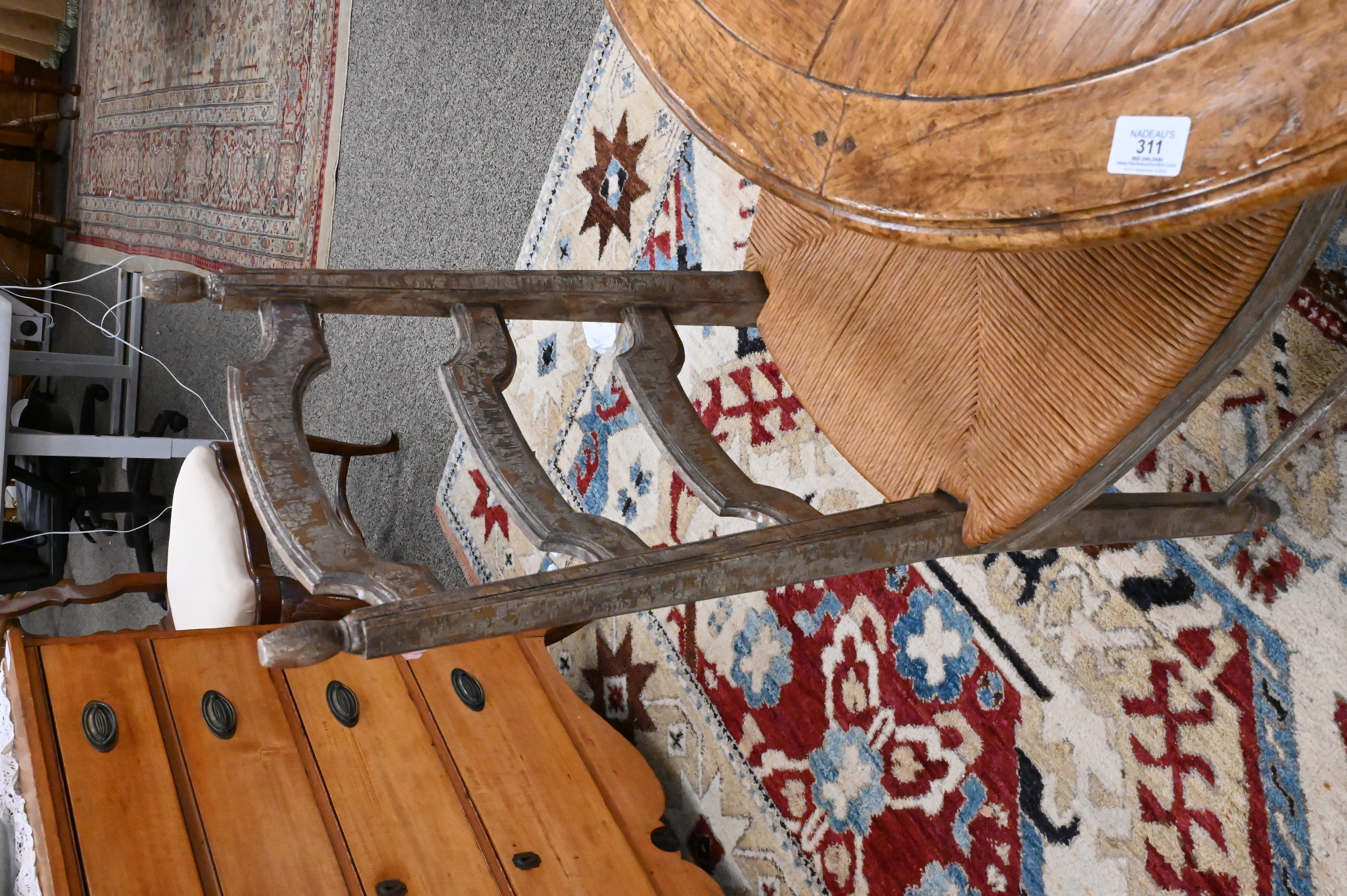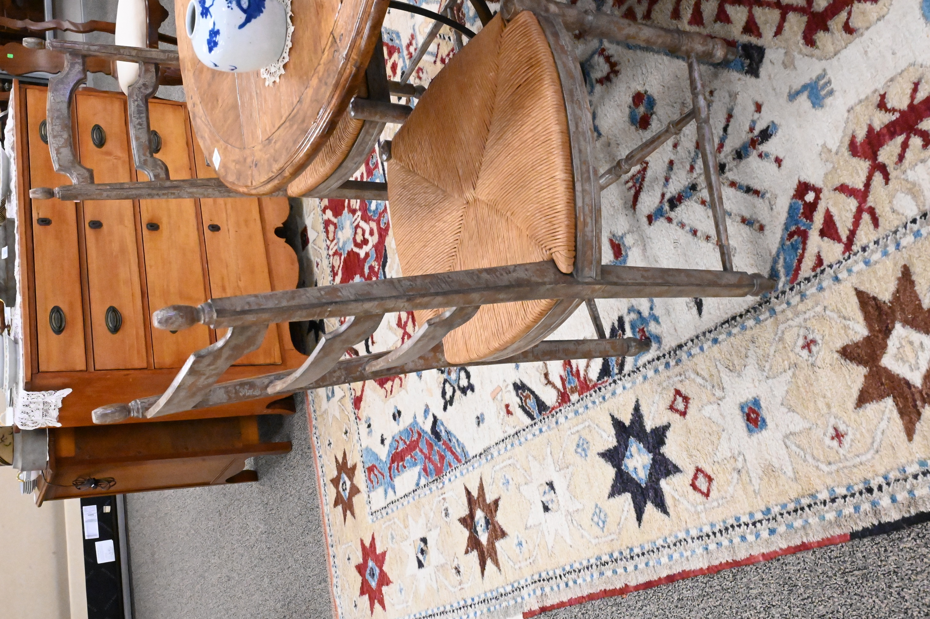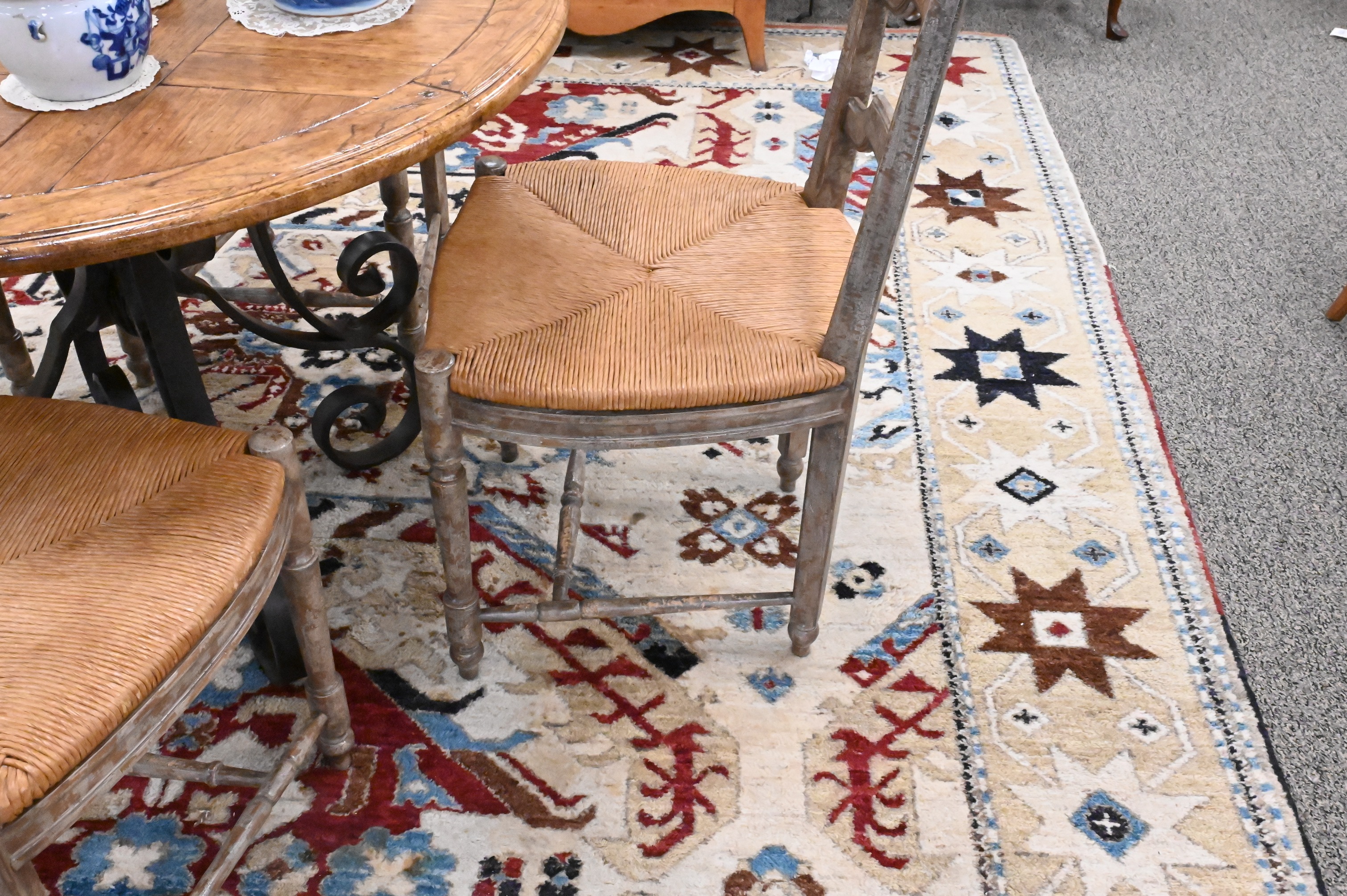 to include a kitchen table with iron base along with four chairs with rush seats by Collection Reproductions