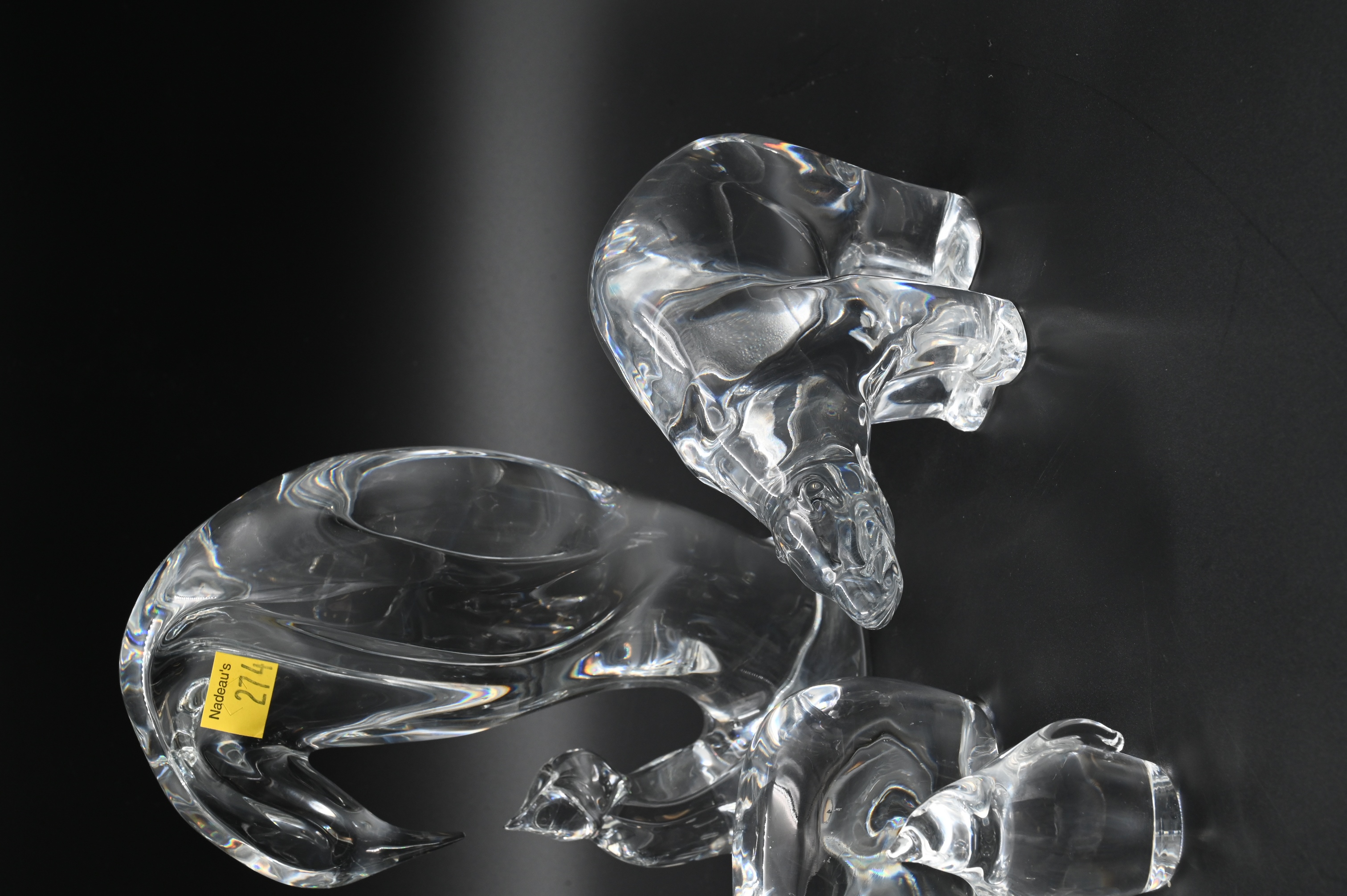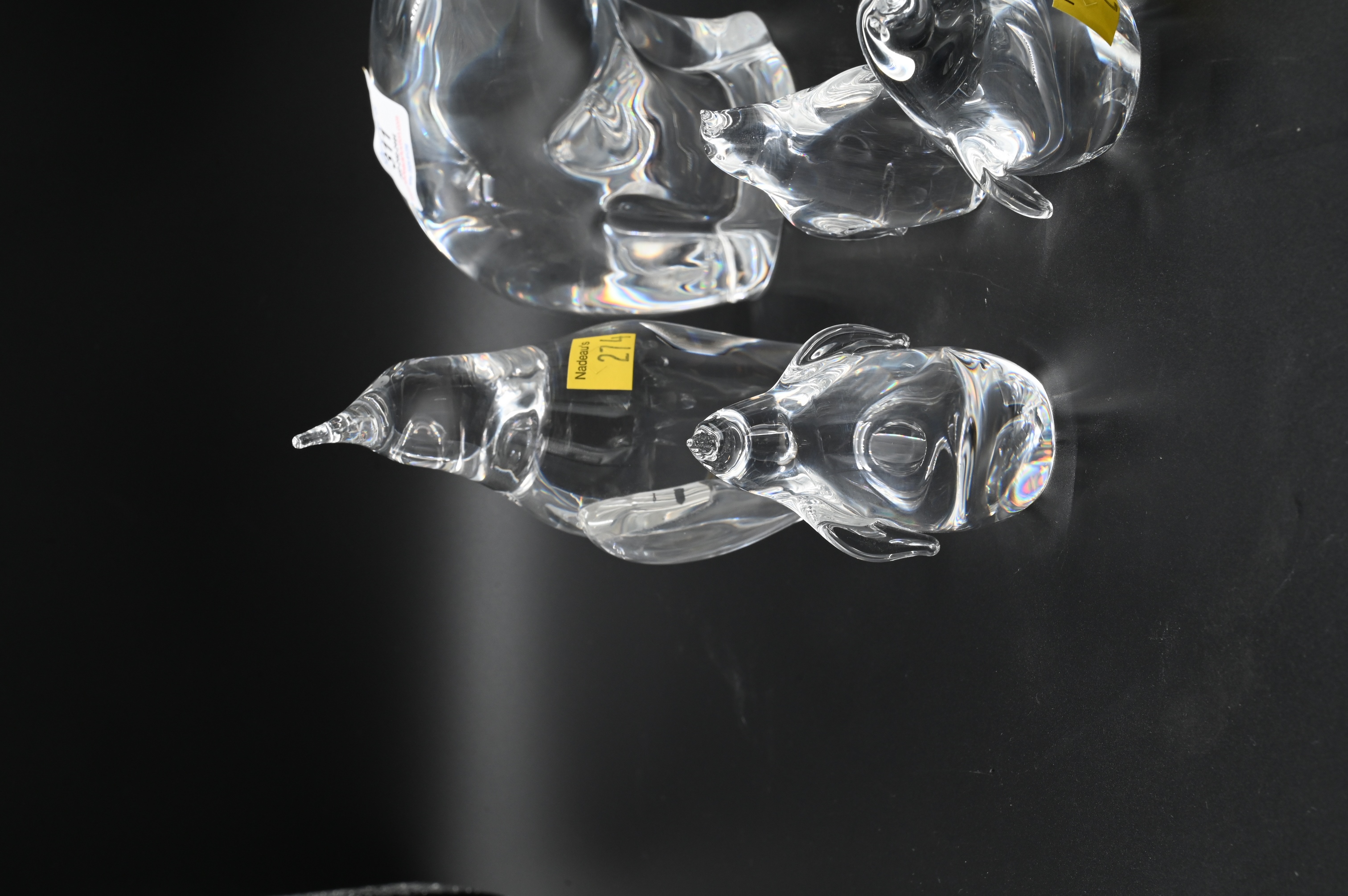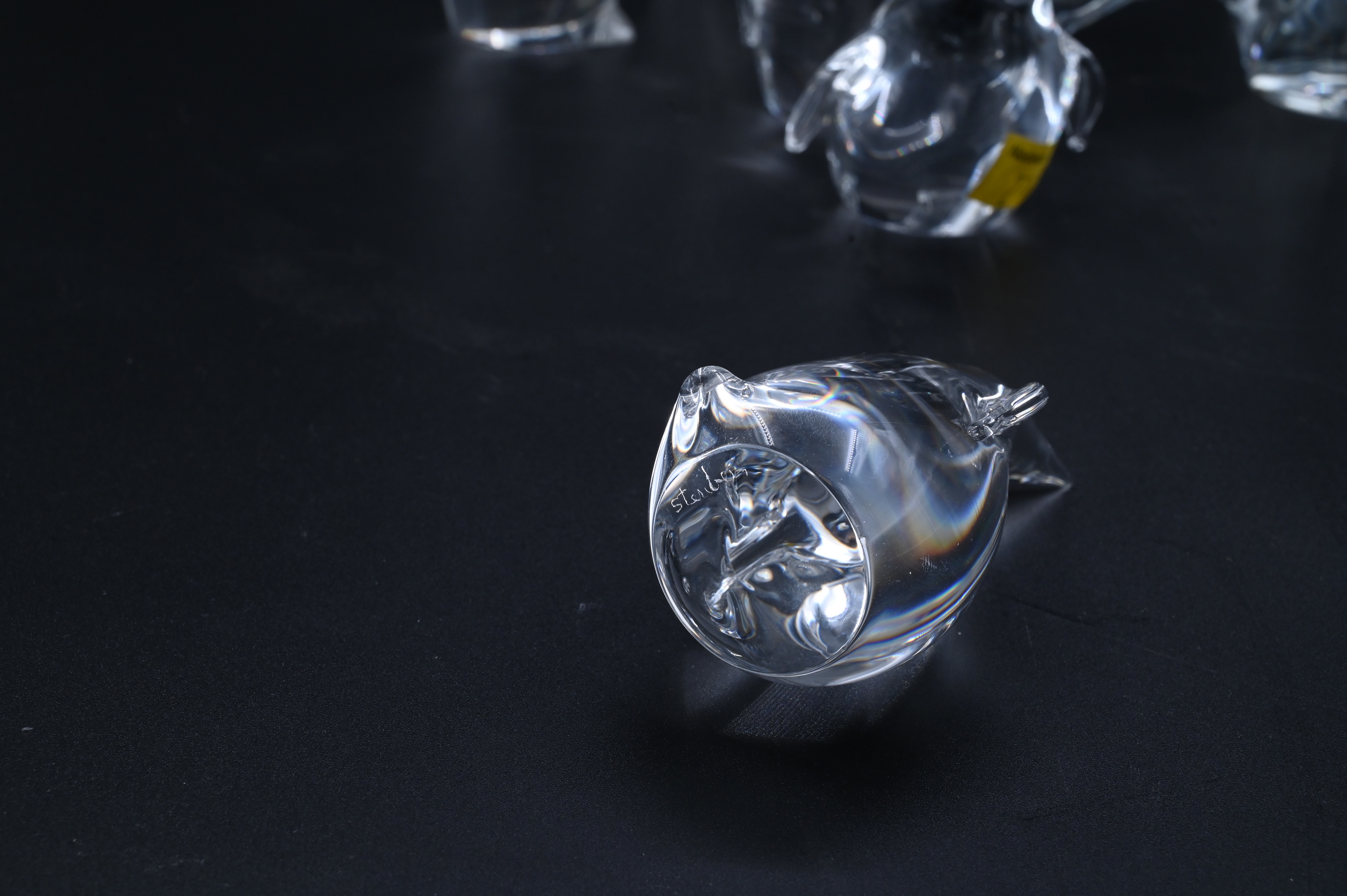 to include mother penguin and baby having etched signature, simple polar bear paper weight, and polar bear