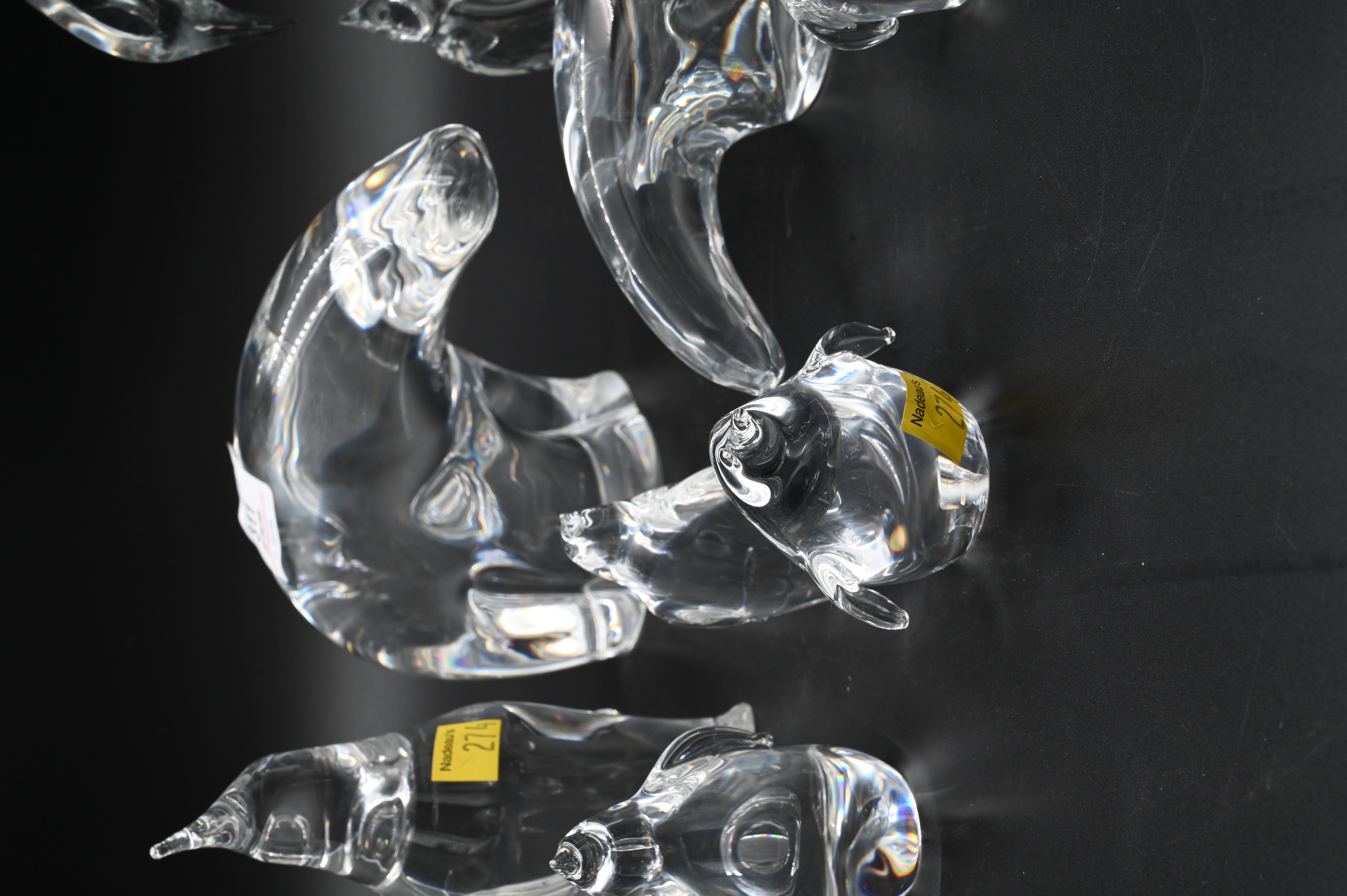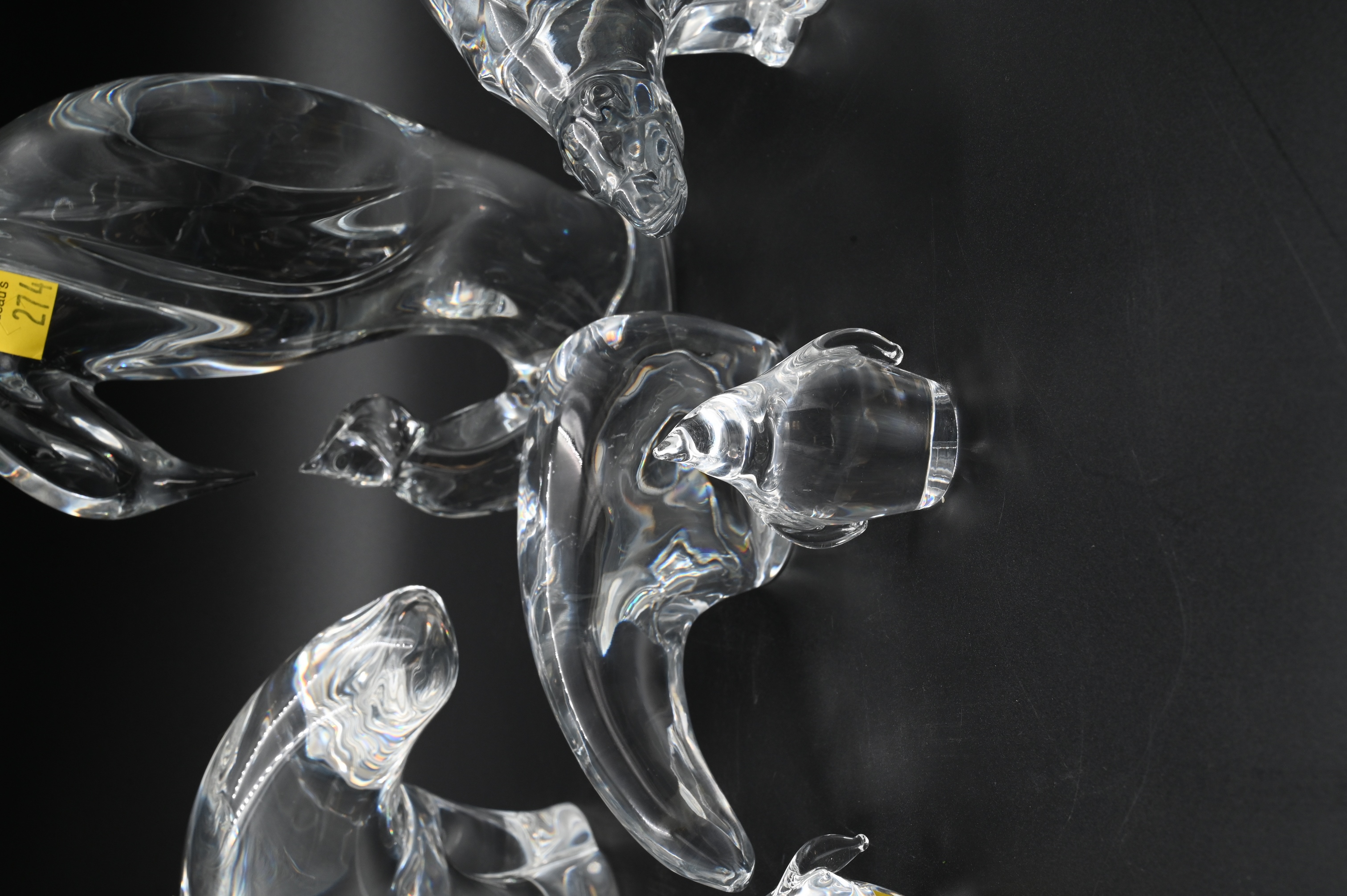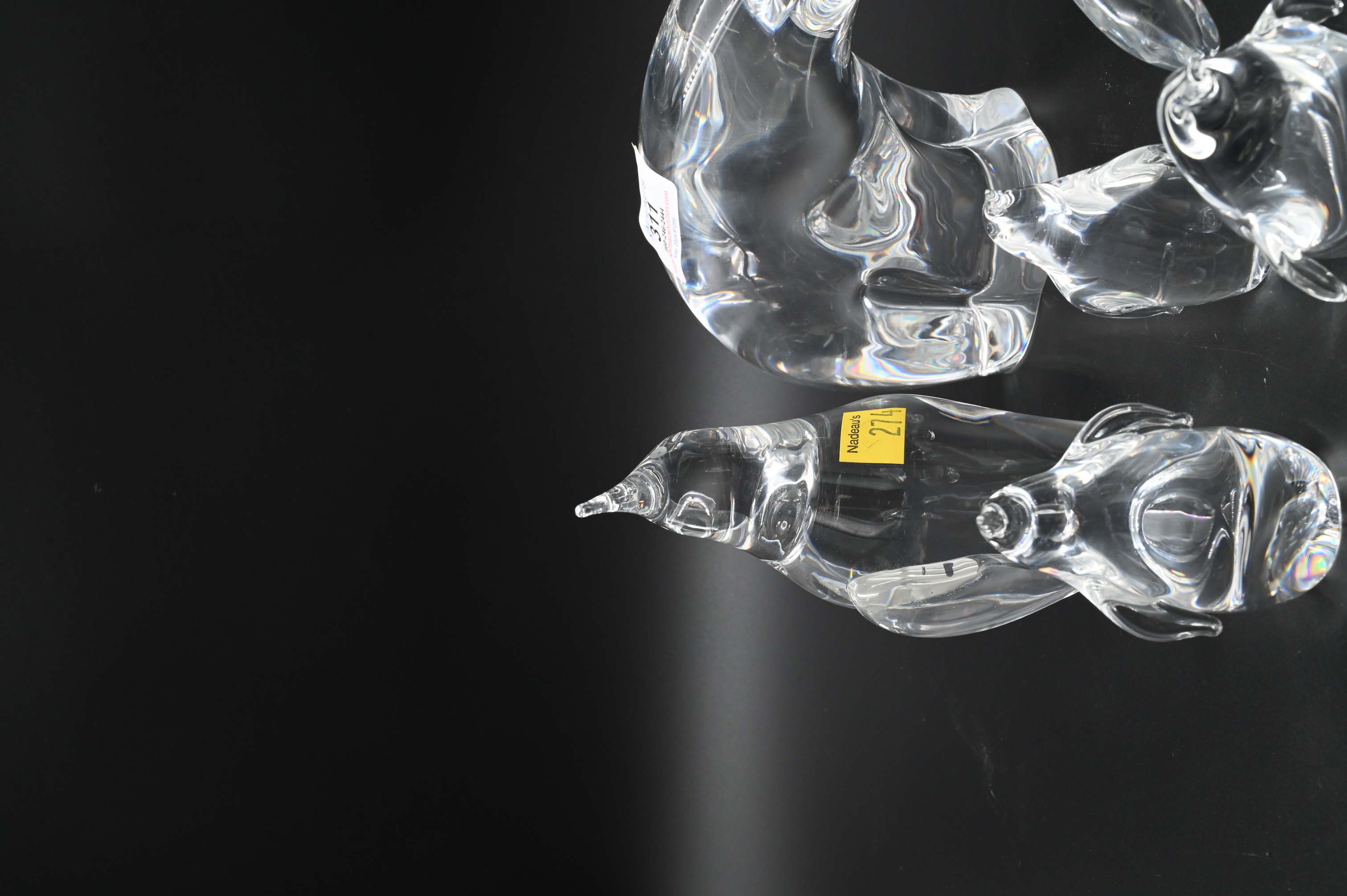 to include mother penguin and baby having etched signature, simple polar bear paper weight, and polar bear