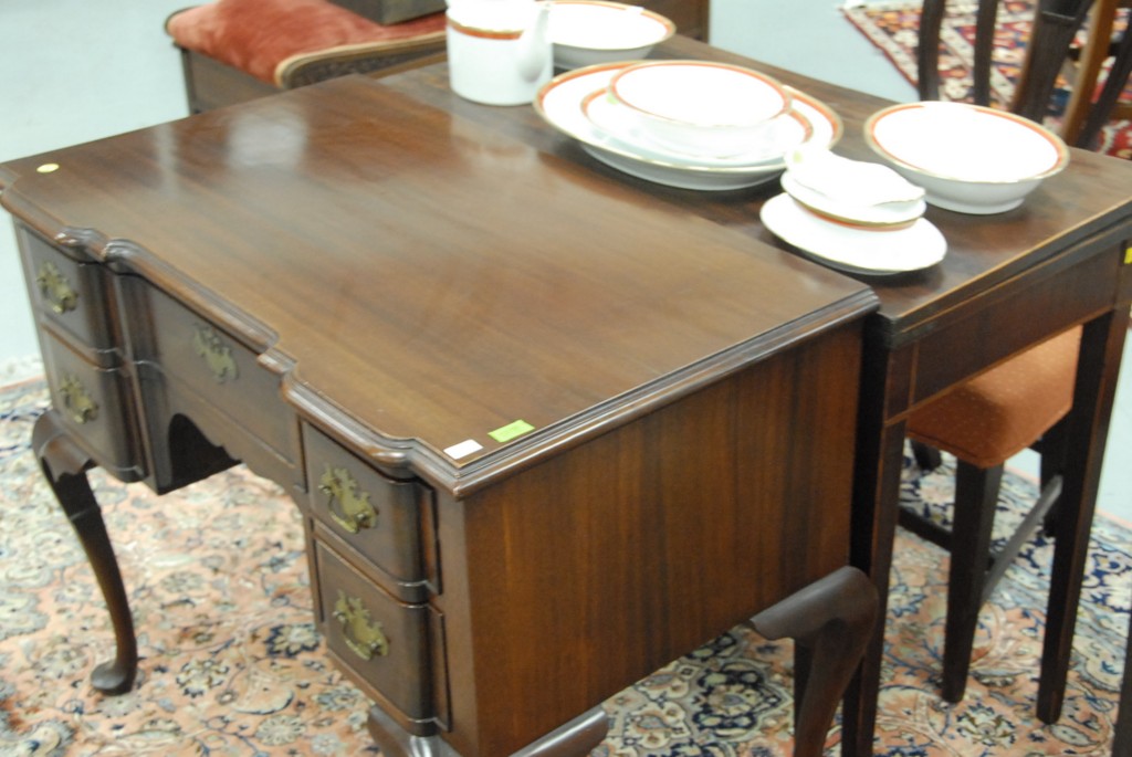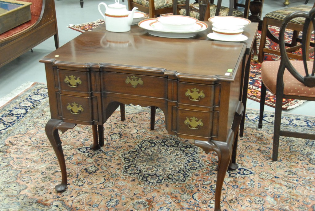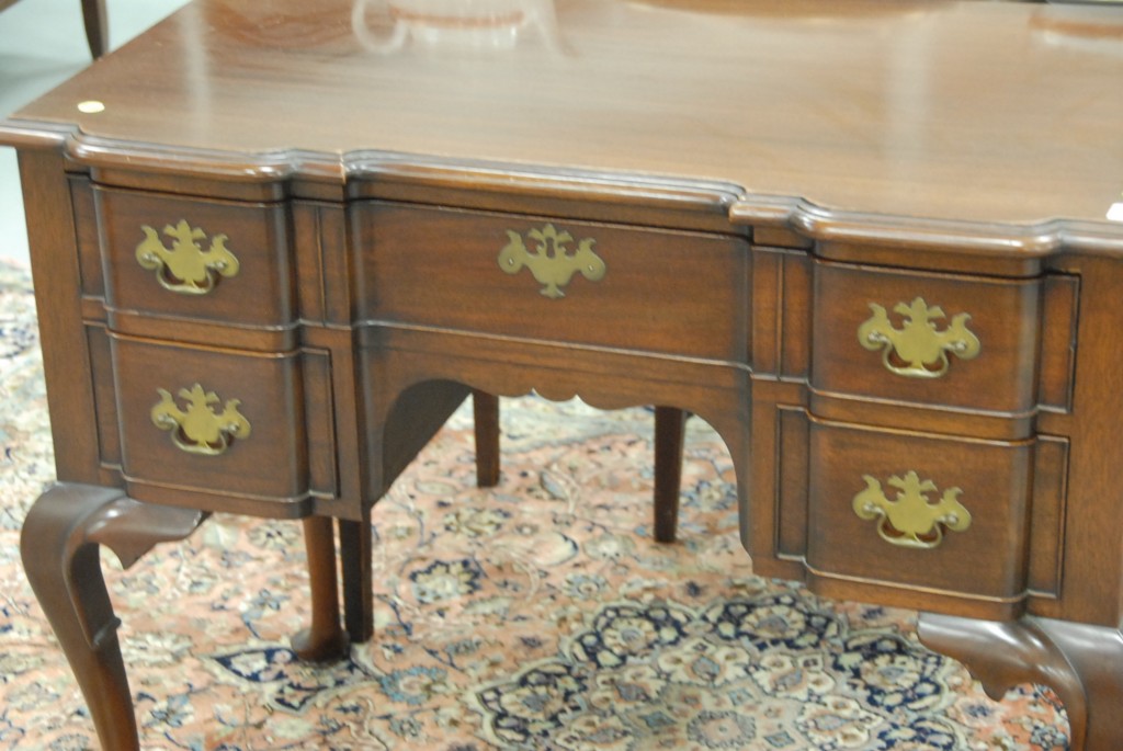 Custom mahogany block front kneehole desk on cabriole legs, ht. 30in. wd. 36in.