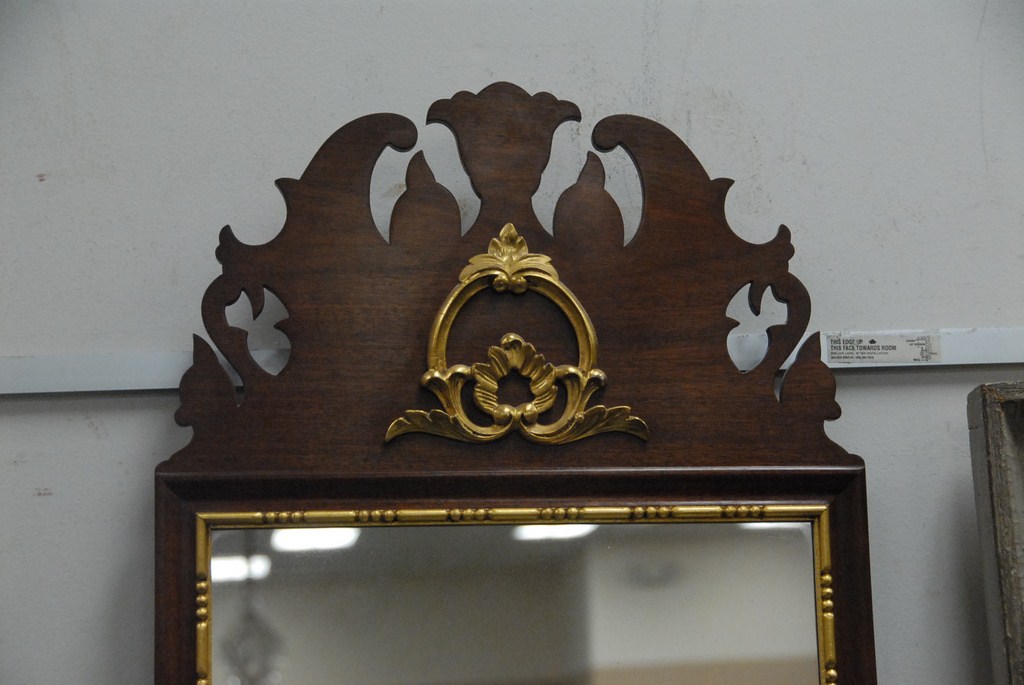 Margolis mahogany Queen Anne mirror signed with brand mark Harold Margolis. 43 x 18