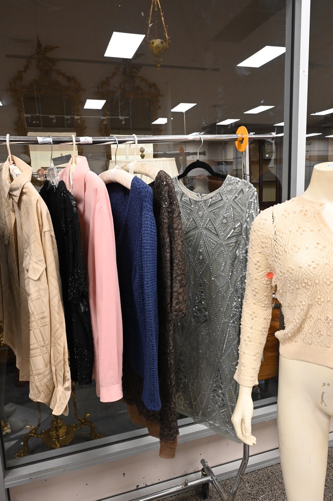 Lot 311: Nine Piece Lot of Designer Party Wear, to include silk blouses, beaded dress,lace pieces, etc., designers include Mastroianni, Starz…