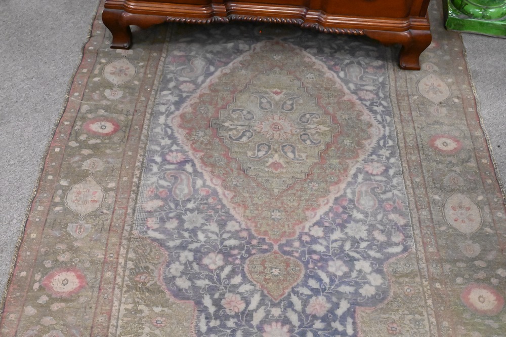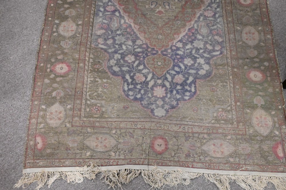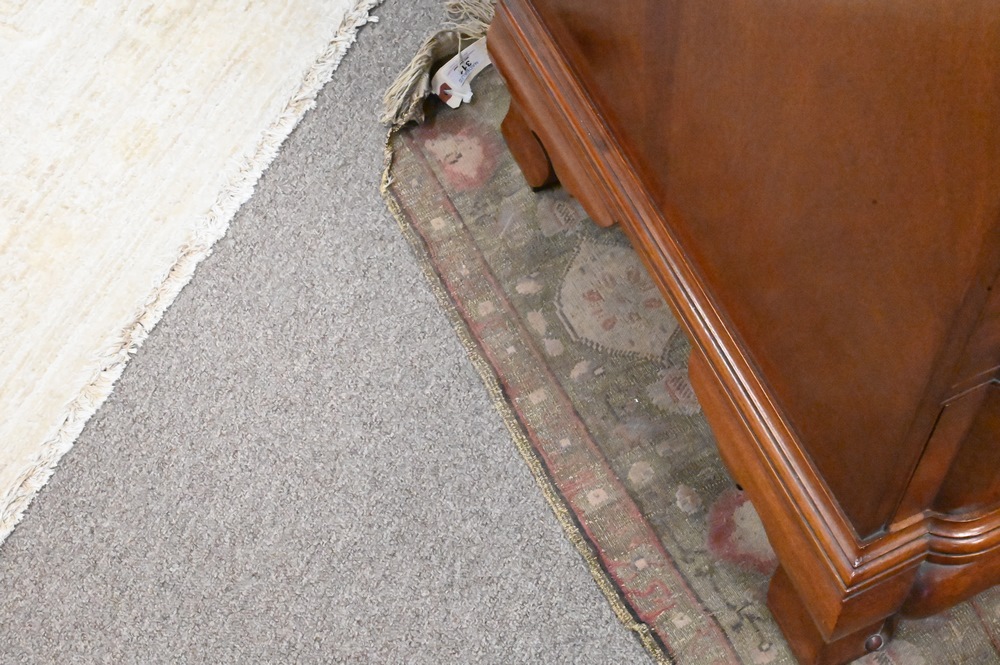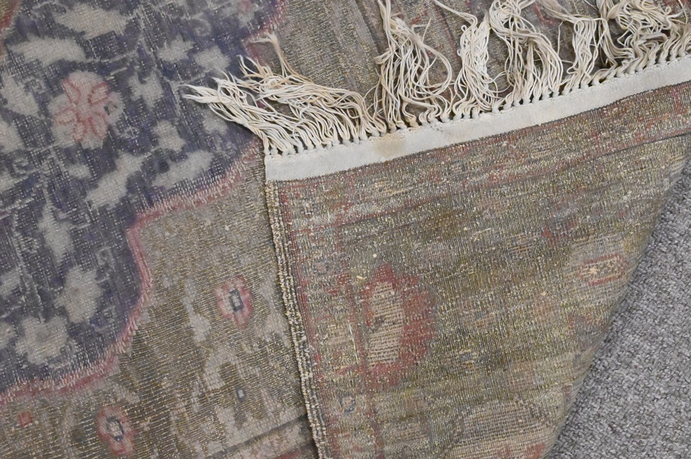 Oriental Throw Rug, having gold threads, (worn), 4′ 2″ x 6′ 6″.