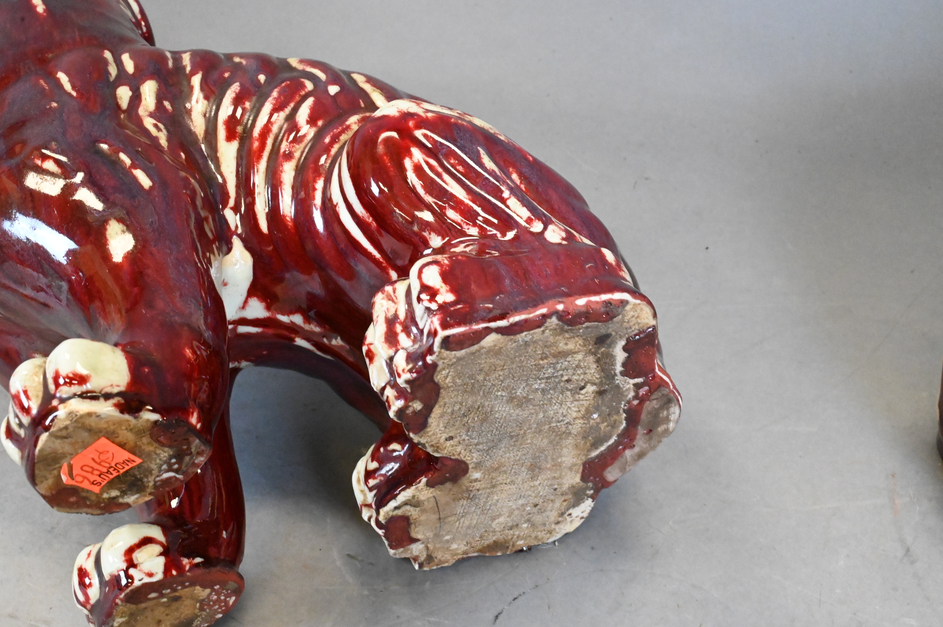 Pair of Chinese Flambe Porcelain Foo Dogs