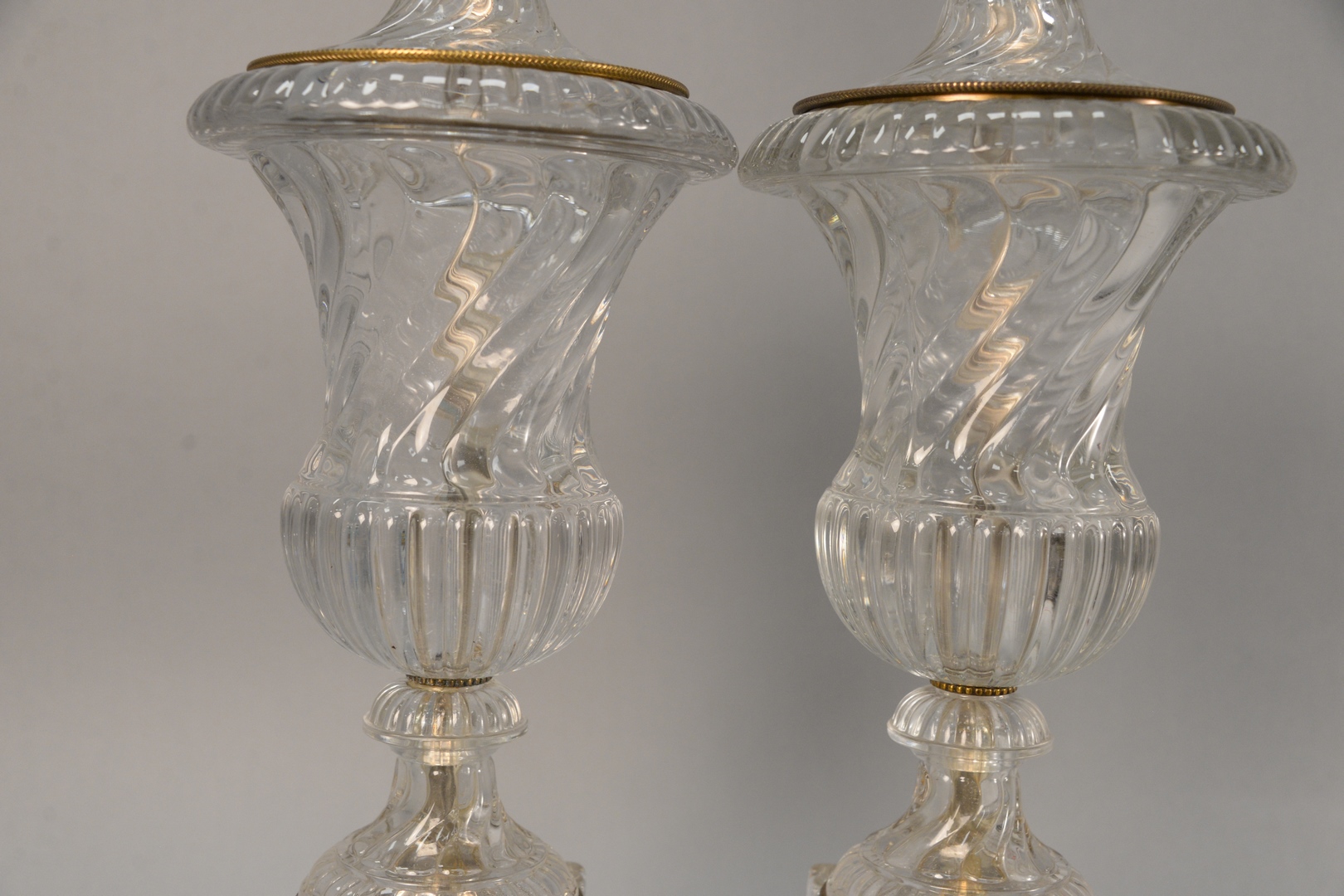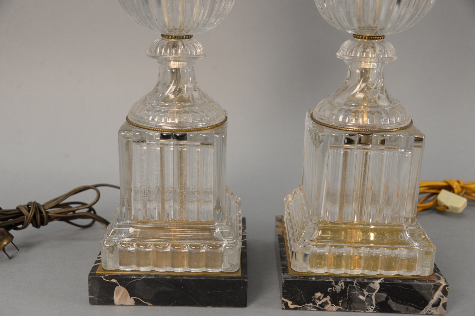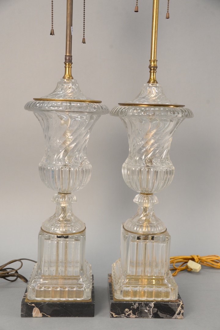 Lot 311: Pair of Crystal Lamps urn form on plinth base, on black marble base attributed to Baccarat height of urn approximately 20 inches wit…