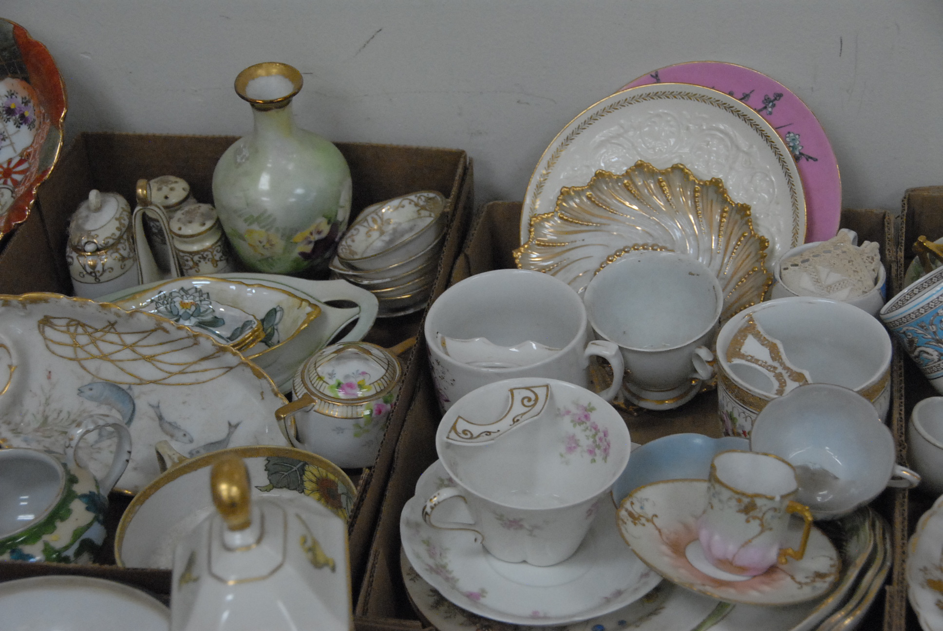Six box lots to include cups and saucers, bowls, etc.