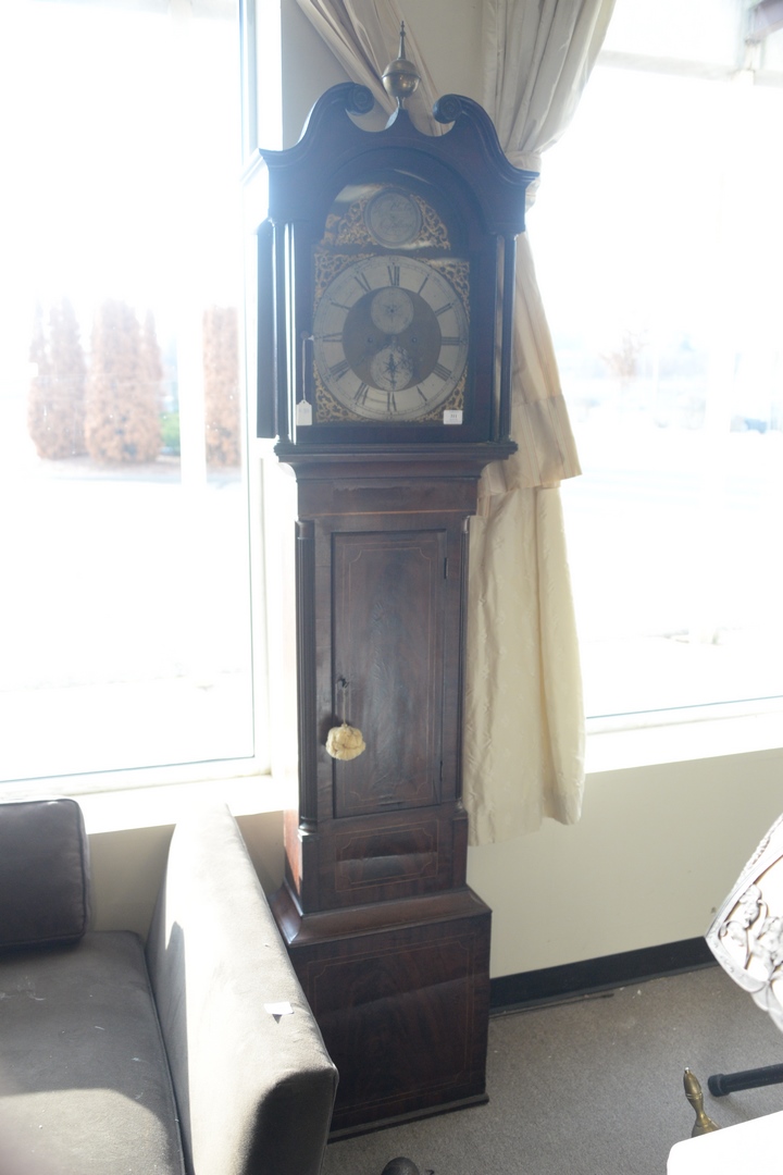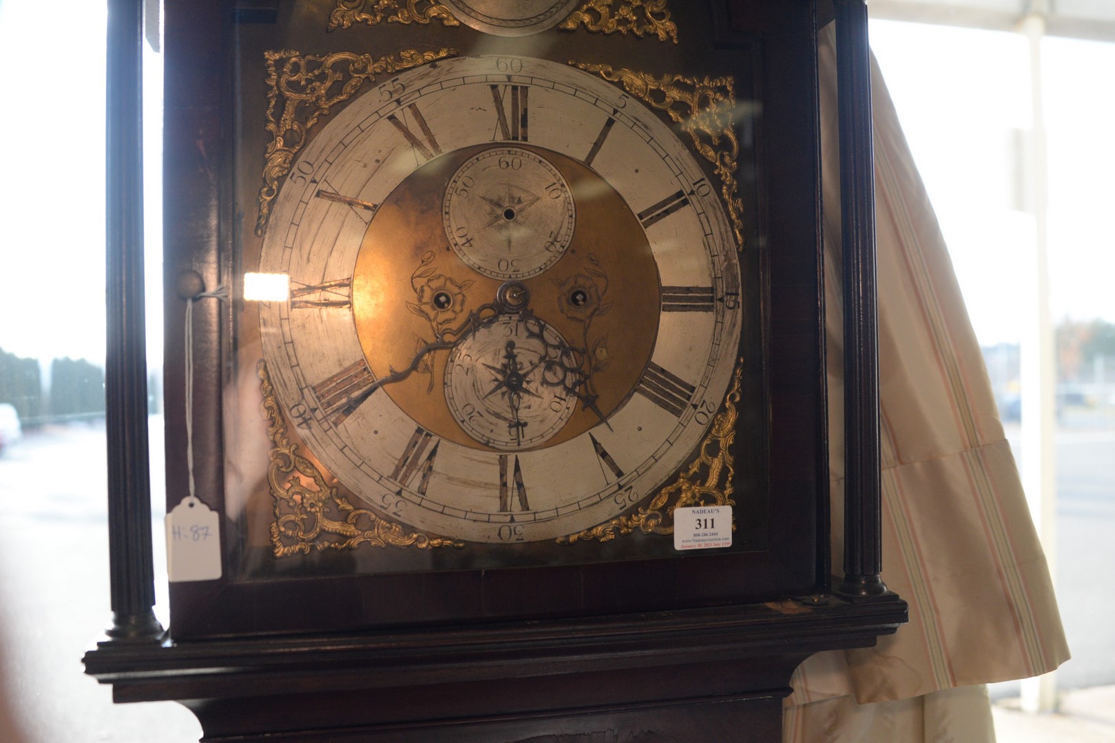 Lot 311: Tall Mahogany Case Clock with brass dial, marked on the face Geo. Blackie Musselburgh height 80 inches