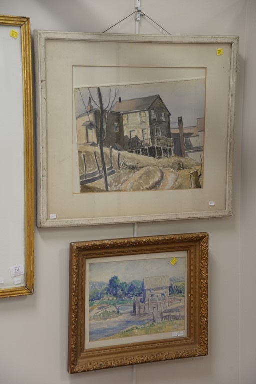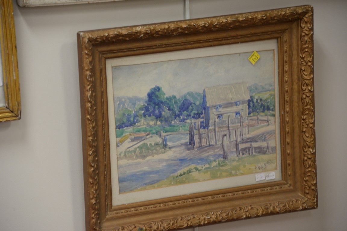 Lot 311: Three Harry Hering 1887-1967, watercolors, The Brook, Watermill, and House Landscape, all signed Hering, sight sizes 9 x 13, 1…