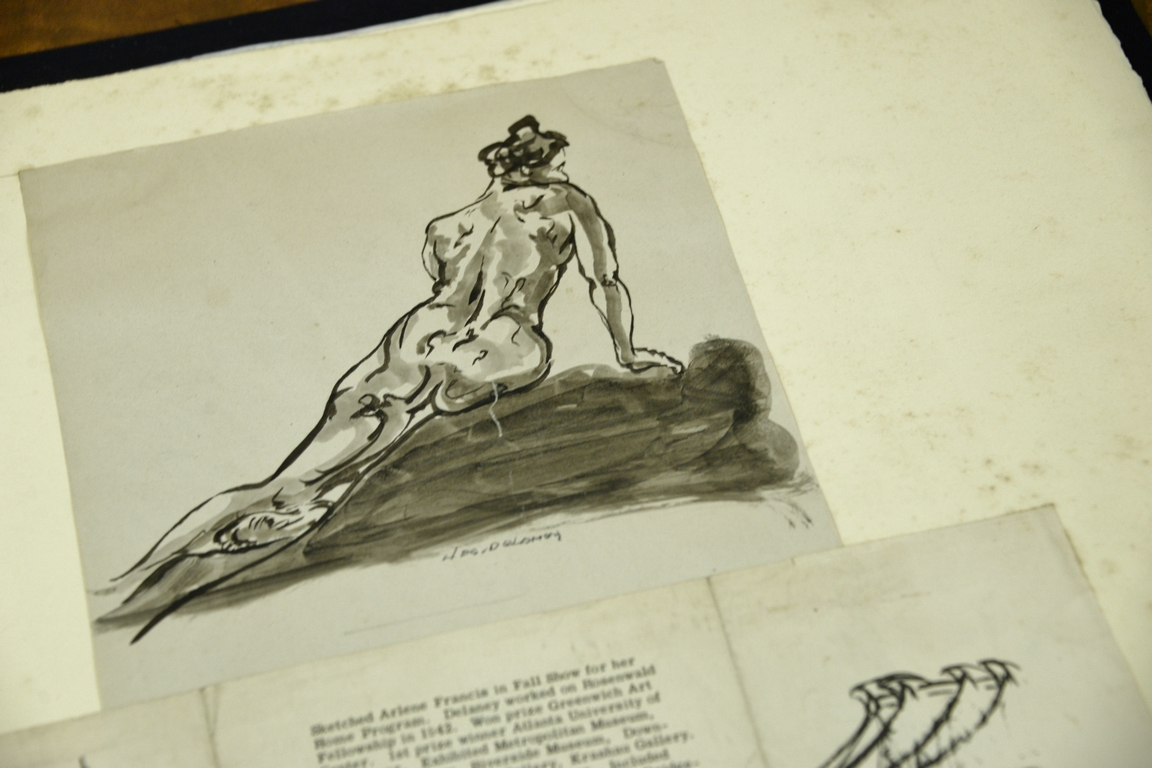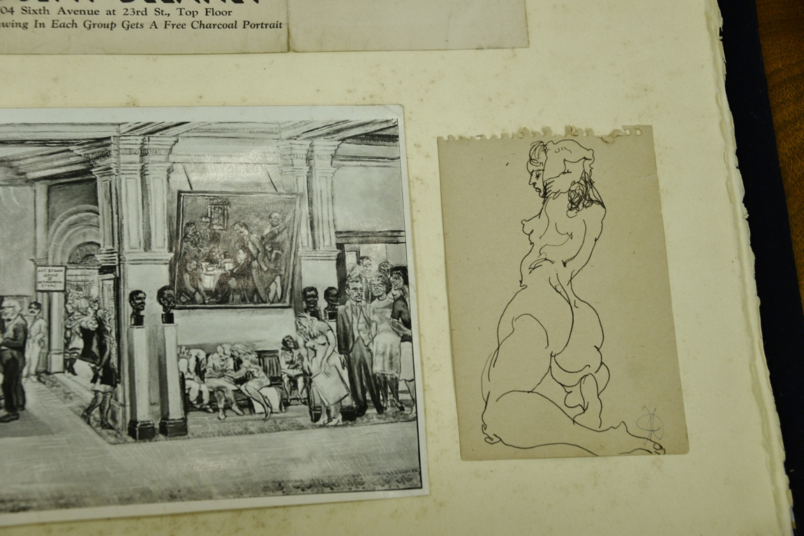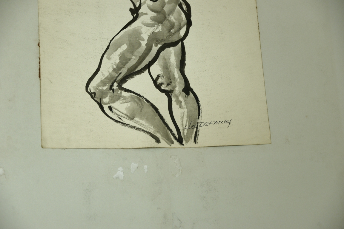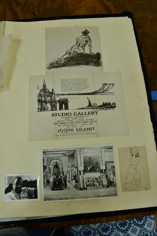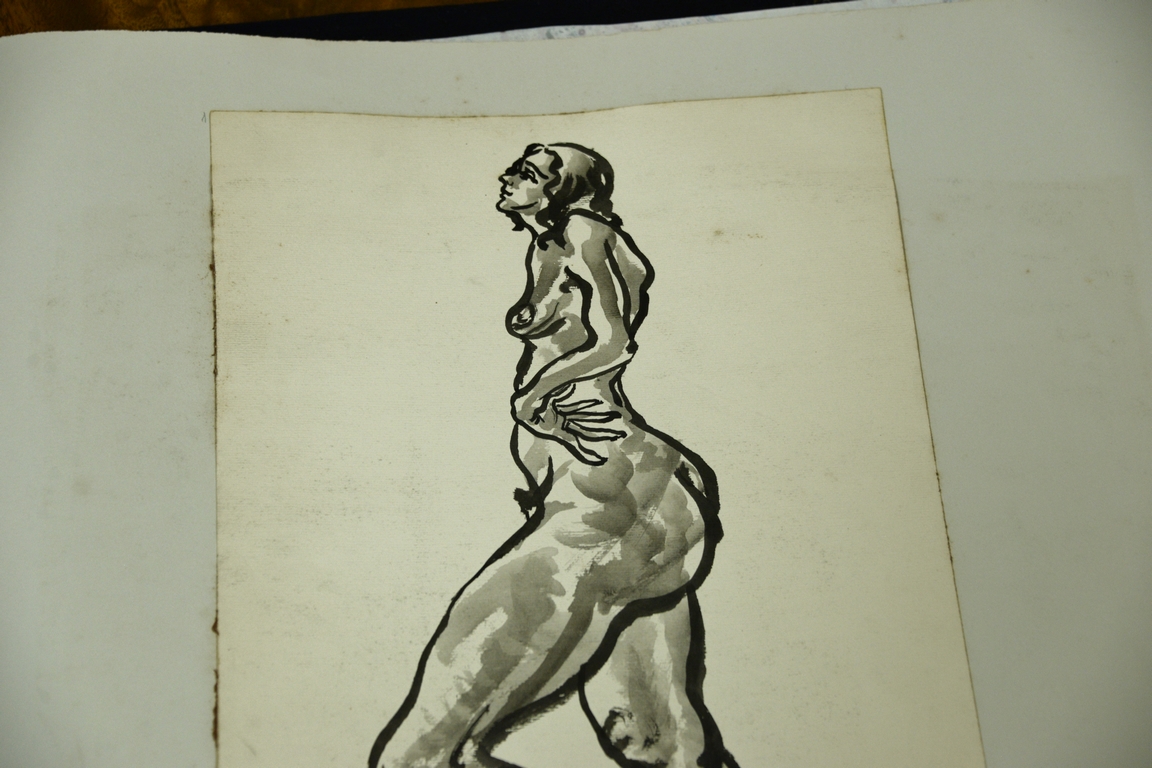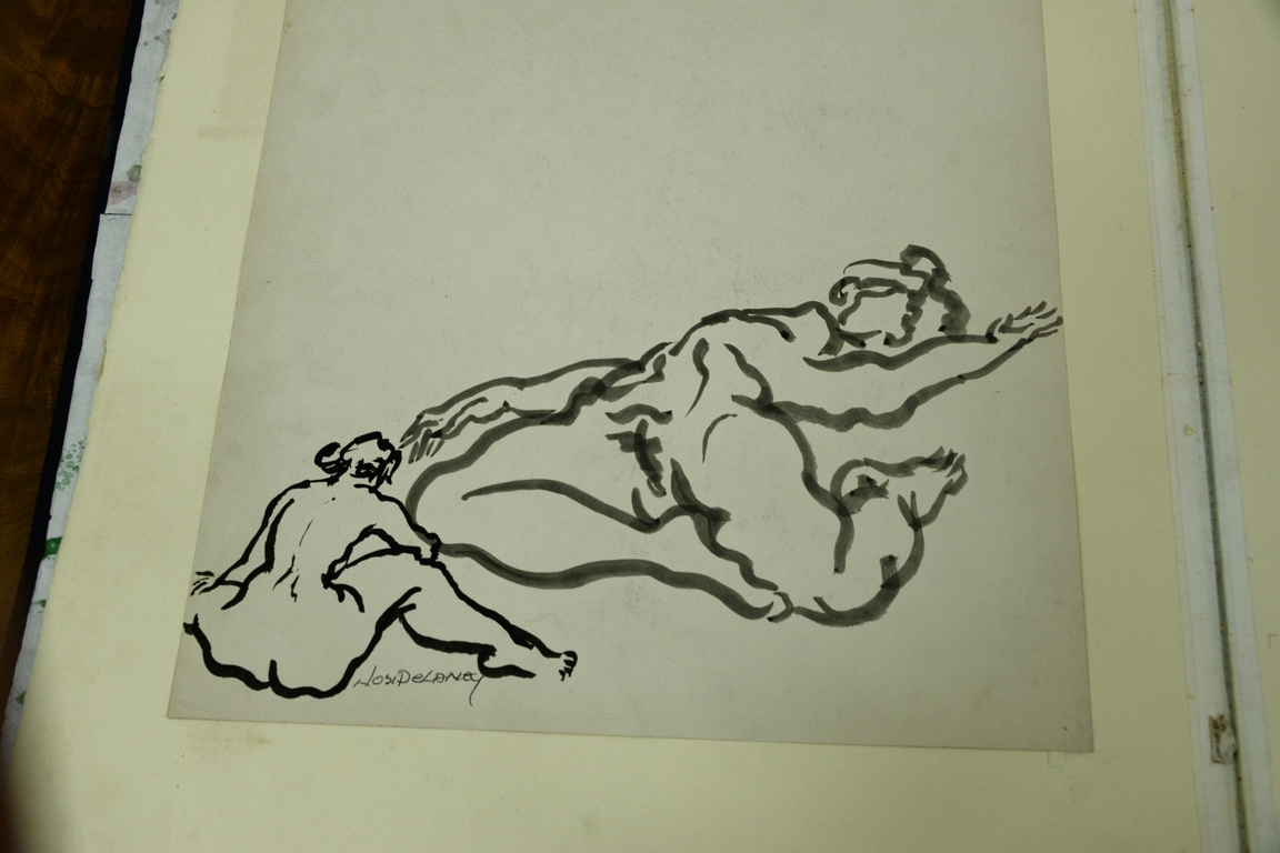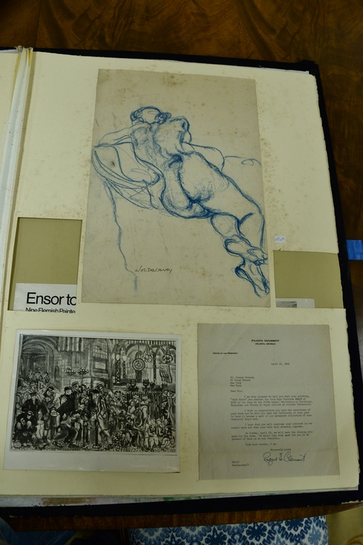 Joseph Samuel Delaney 1904-1991 scrap artist book consisting of gallery letters, five inkwash studies, five ink on paper studies, one pencil on paper study, two crayon paper studies all signed along with eight unsigned nude drawers. total size of book 32 x 23 Provenance: Collection of Anne Jones Willis and the late John Ralph Willis, New Jersey
