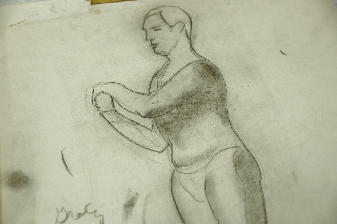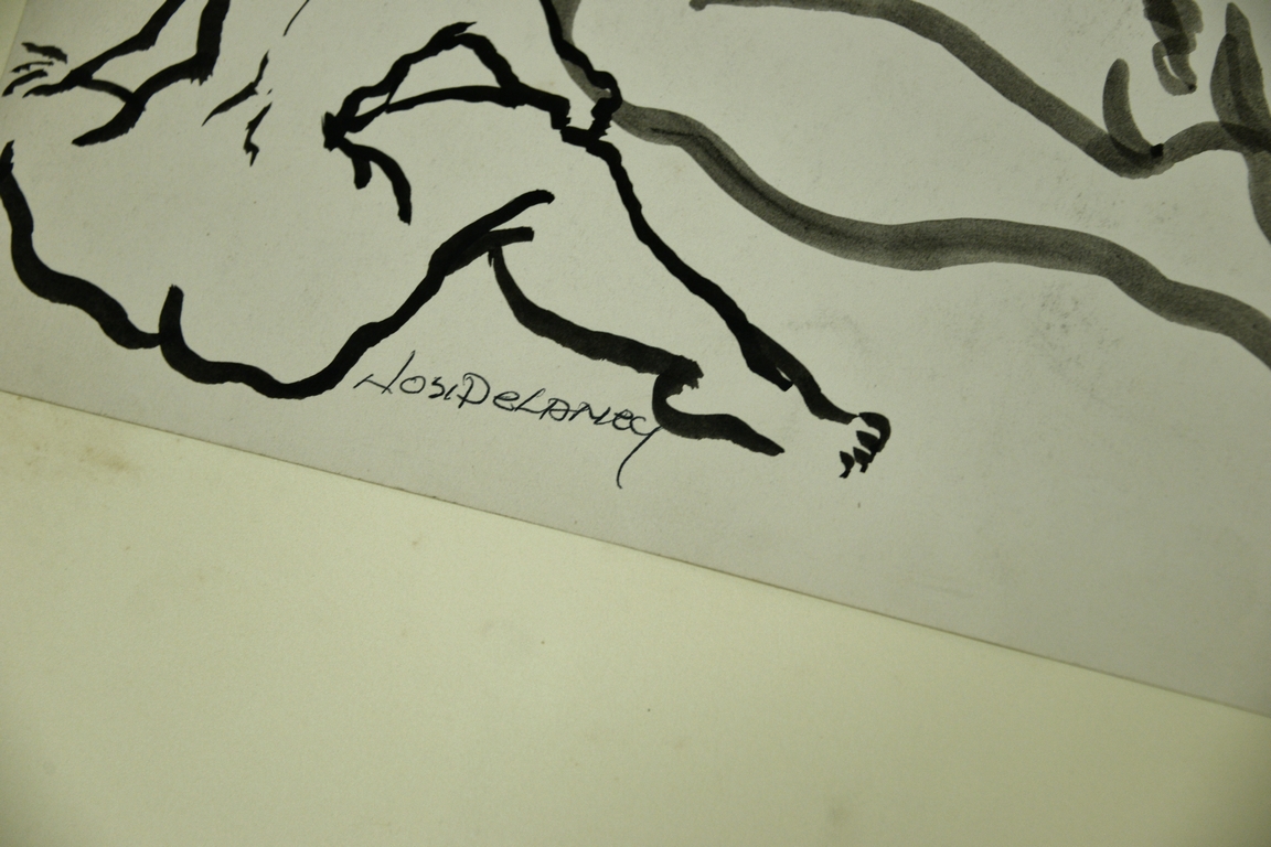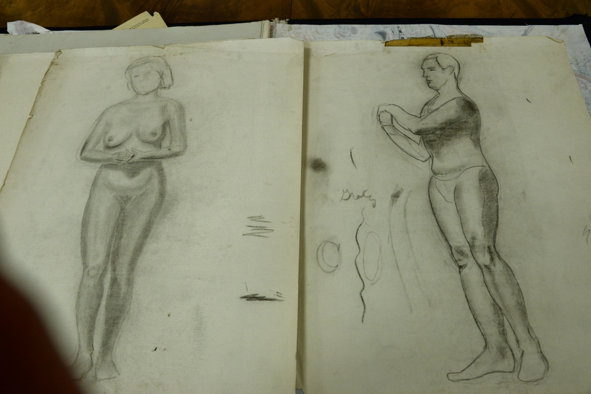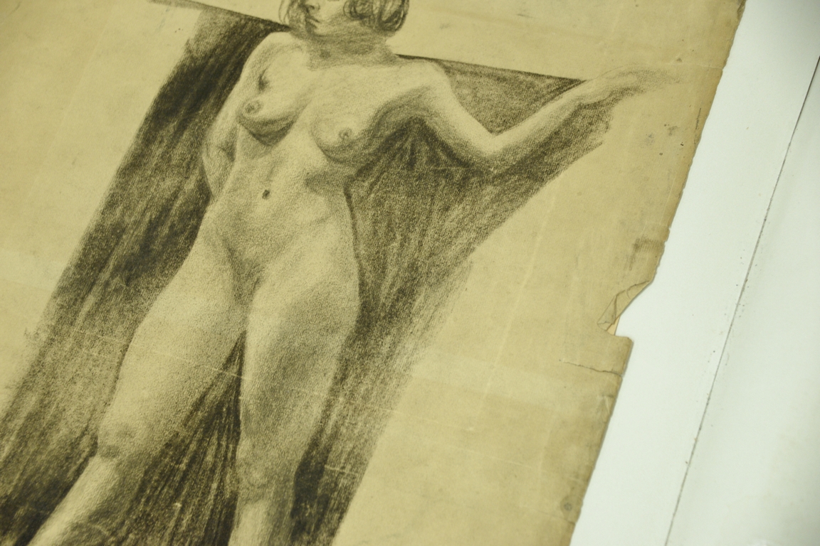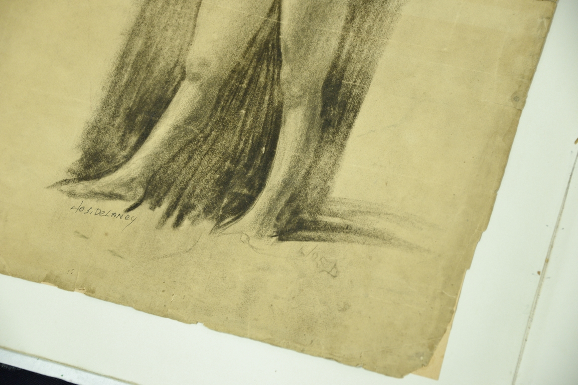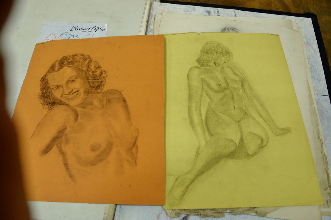 Joseph Samuel Delaney 1904-1991 scrap artist book consisting of gallery letters, five inkwash studies, five ink on paper studies, one pencil on paper study, two crayon paper studies all signed along with eight unsigned nude drawers. total size of book 32 x 23 Provenance: Collection of Anne Jones Willis and the late John Ralph Willis, New Jersey