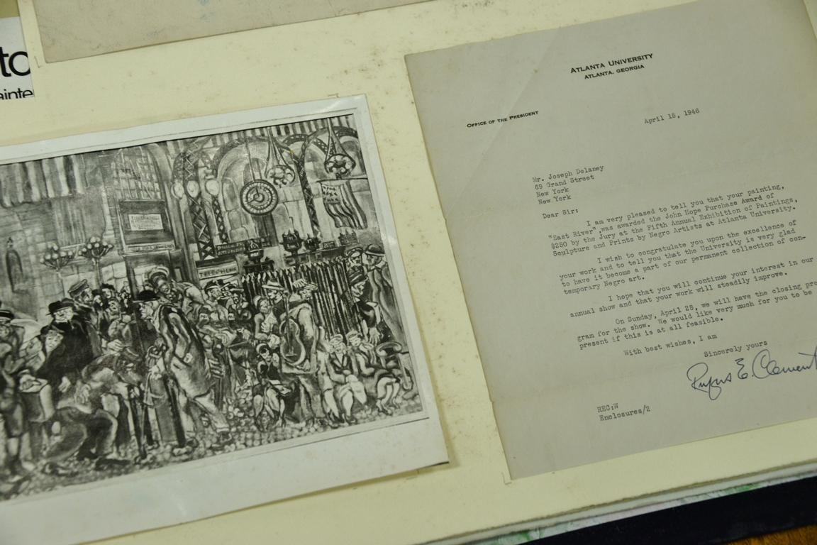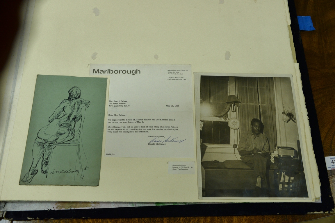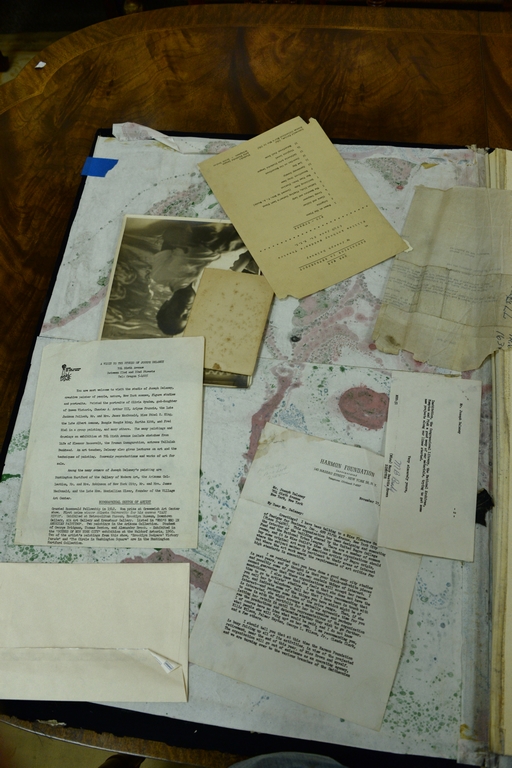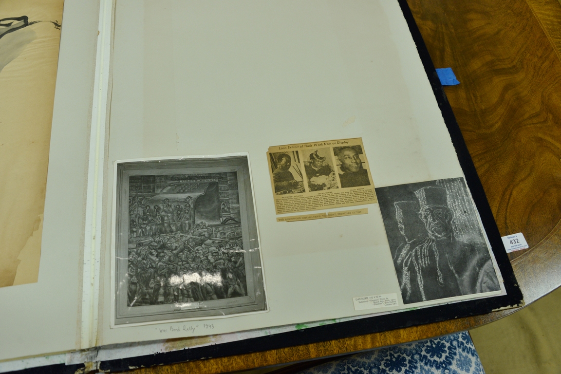 Lot 311A: Joseph Samuel Delaney 1904-1991 scrap artist book consisting of gallery letters, five inkwash studies, five ink on paper studies,…