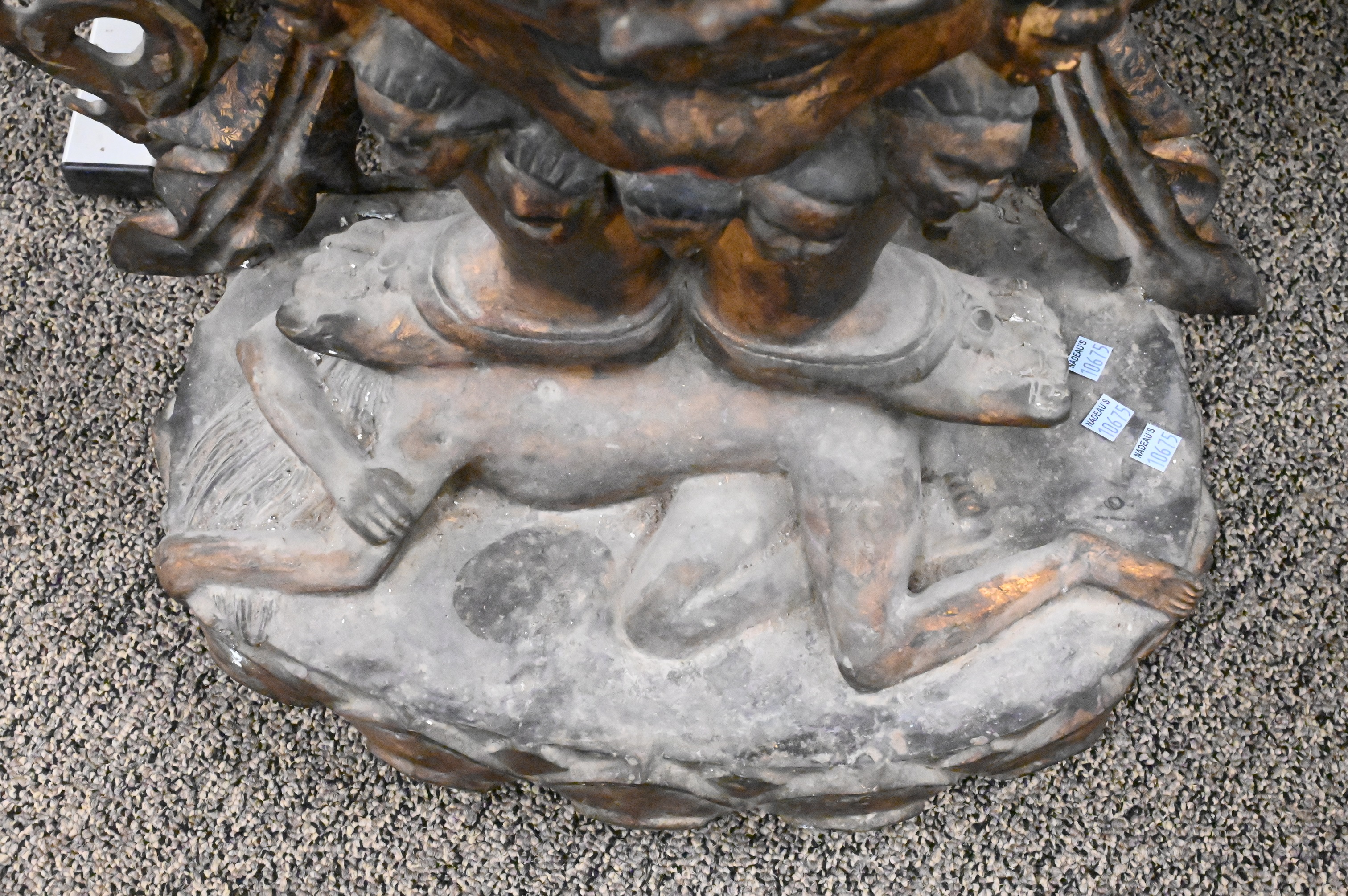 depicting the Hindu figure standing on a frog, marking on base