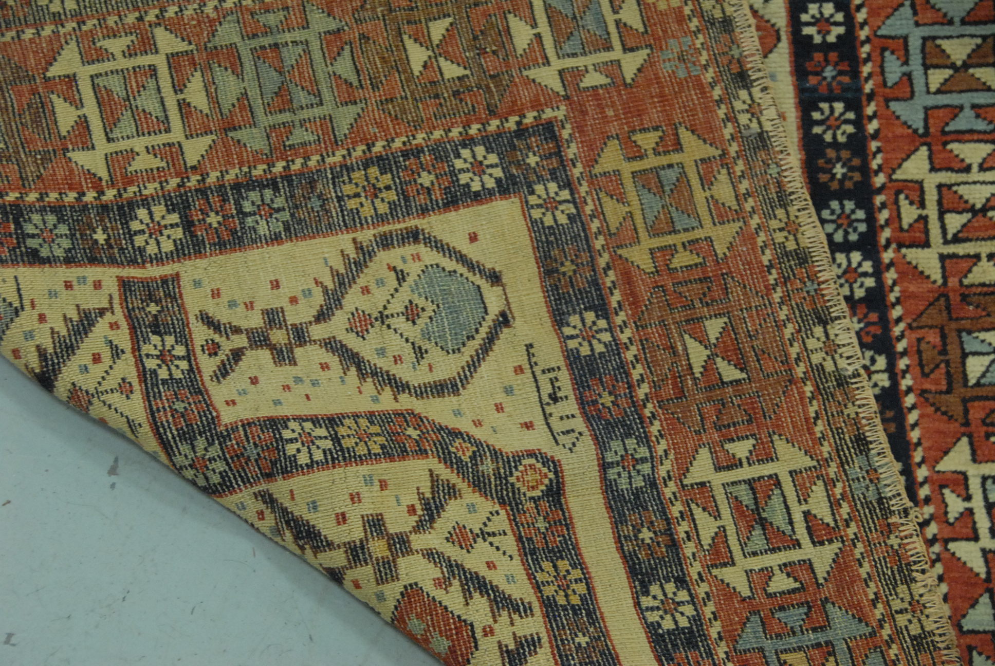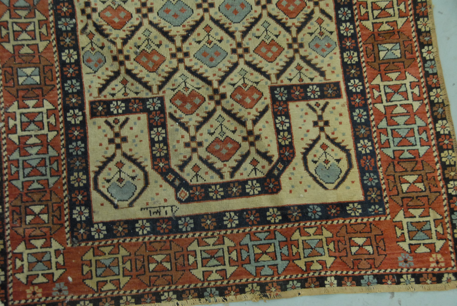Caucasian Oriental prayer rug. 2’10 x 5′