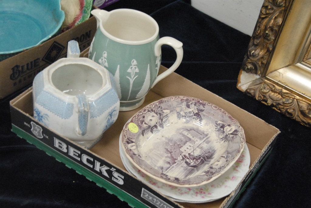 Lot 312: Eight box lots blue and white china, Majolica, cups and saucers etc.