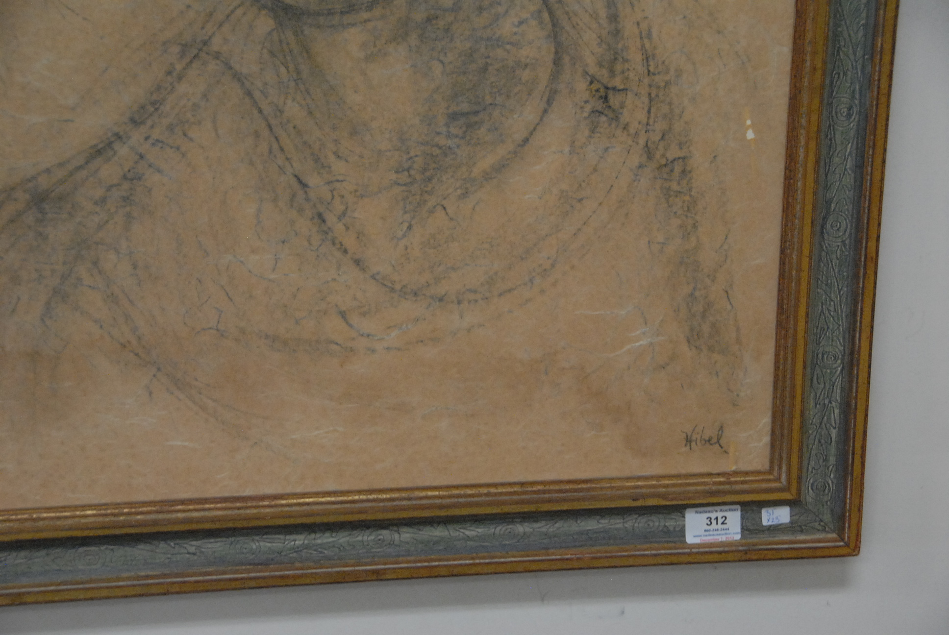 Hibel pencil drawing of a woman, signed Hibel in pencil, 31 x 23.