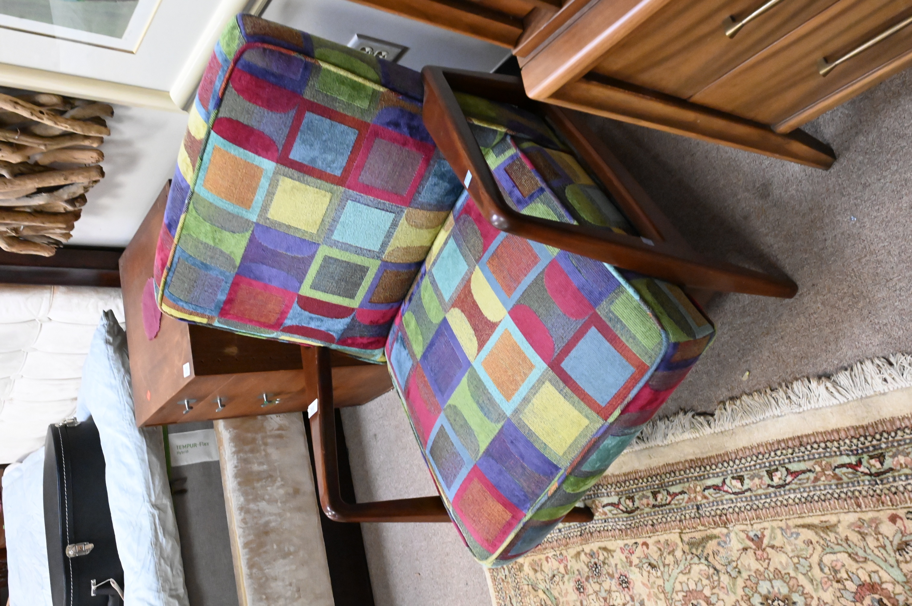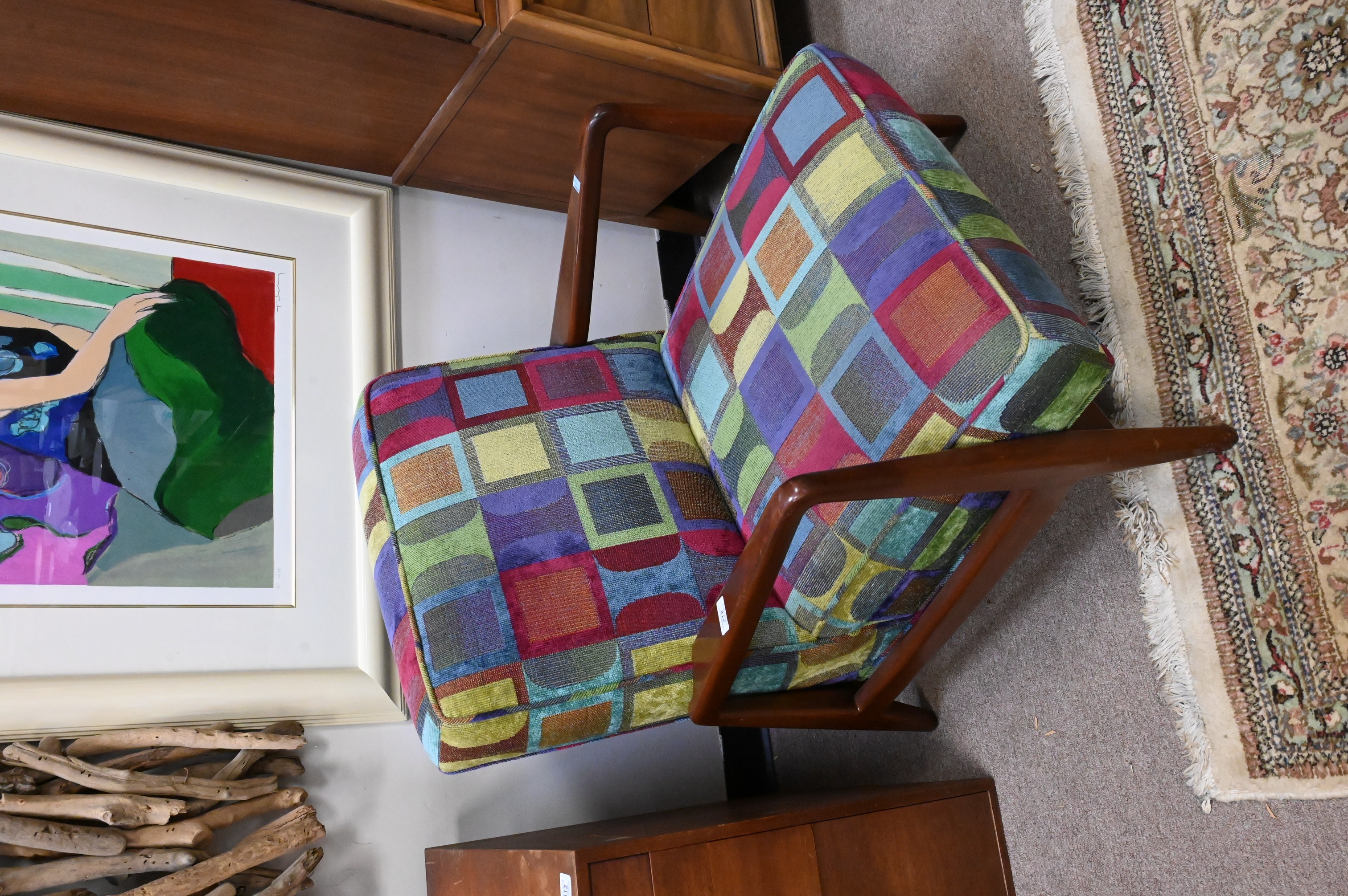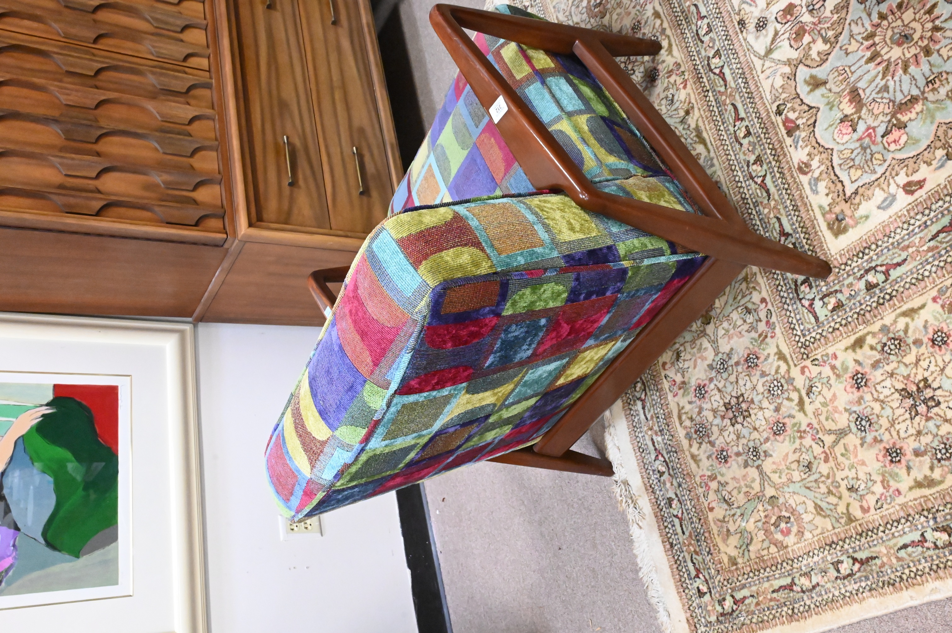 having custom geometric upholstery, unsigned