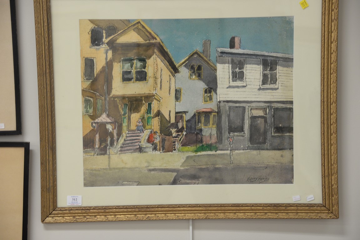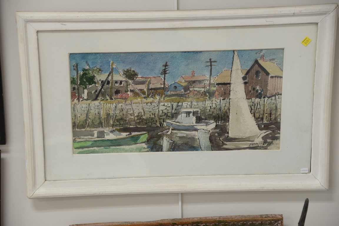Lot 312: Three Harry Hering 1887-1967, watercolors, Street Scene, Sailboat, and Dock at Provincetown, all signed Hering, sight sizes 10 …