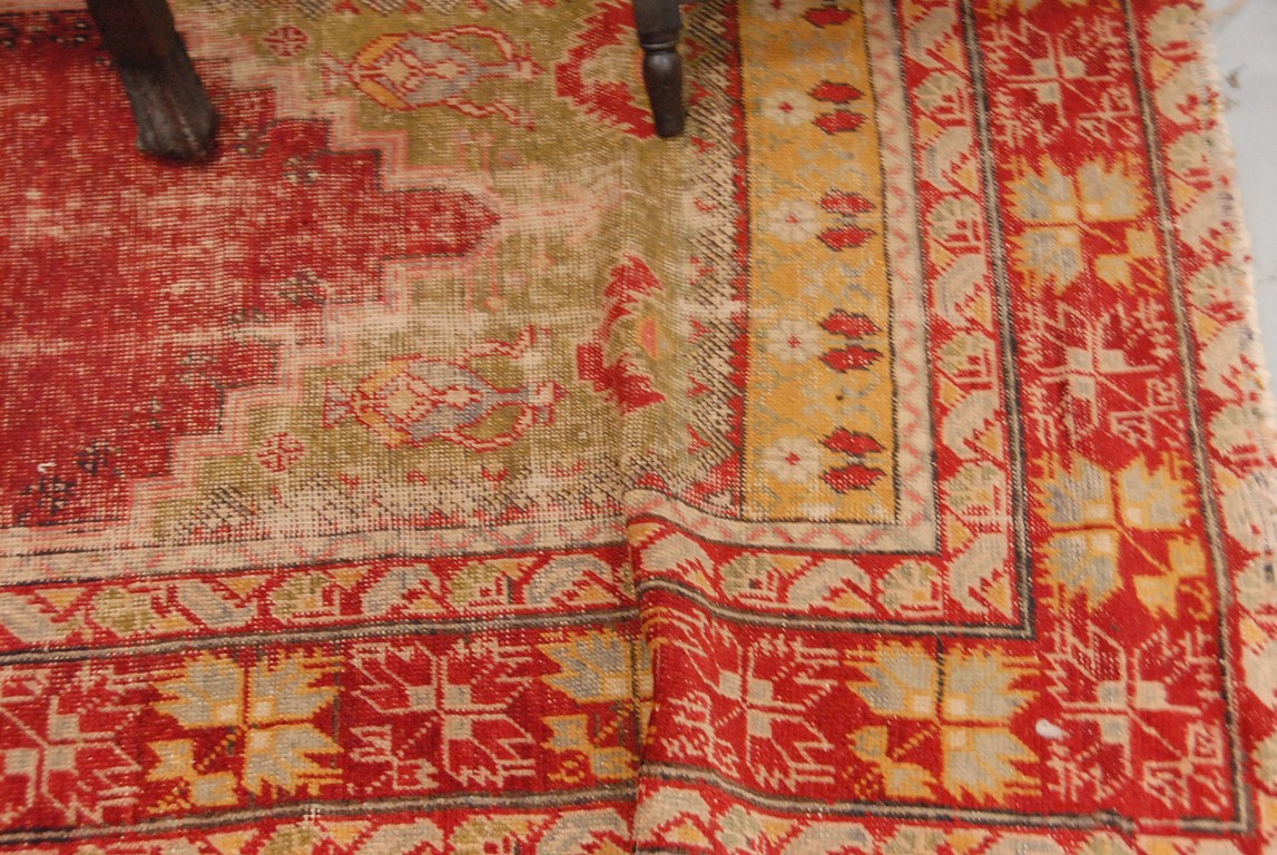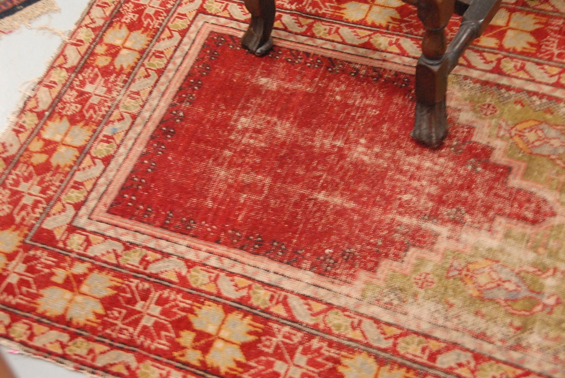 Turkish Oriental rug worn. 3′ 7 x 5′ 4