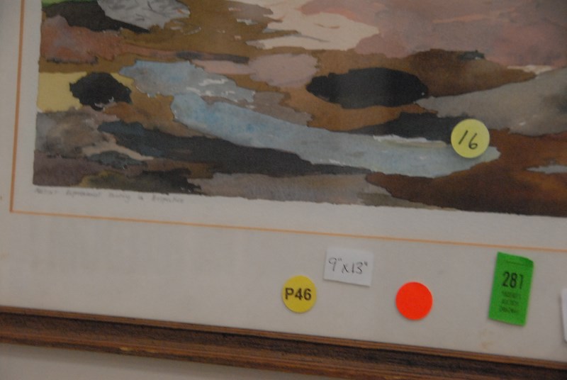 Lot 312: Watercolor abstract expressionist painting in perspective signed lower right PH73