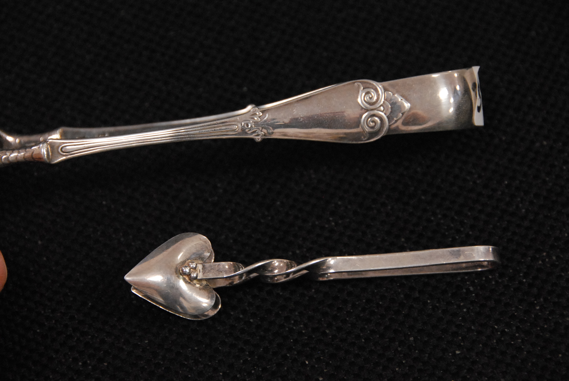 Two sets of sterling tongs, one marked Tiffany & Co.