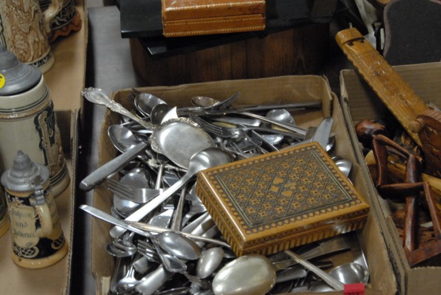 Lot 313: 5 box lots to include stainless steel flatware,