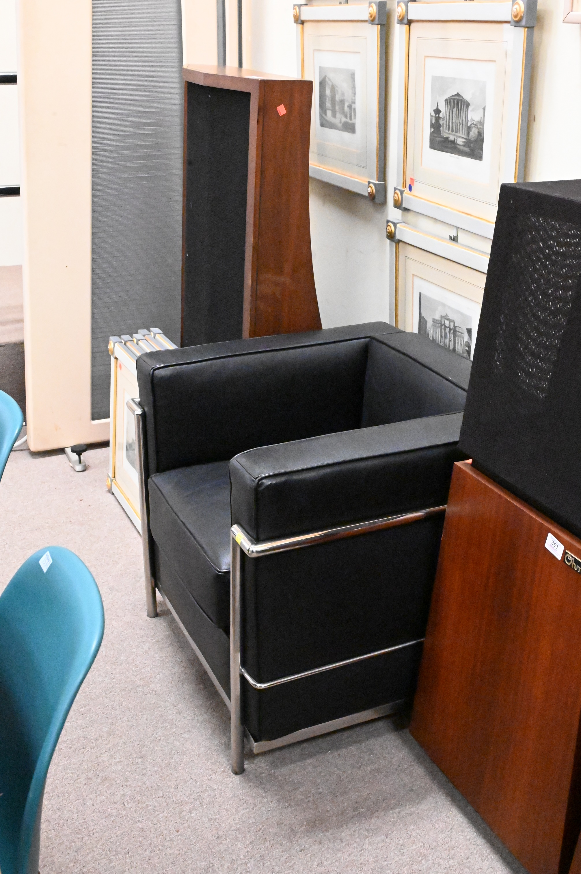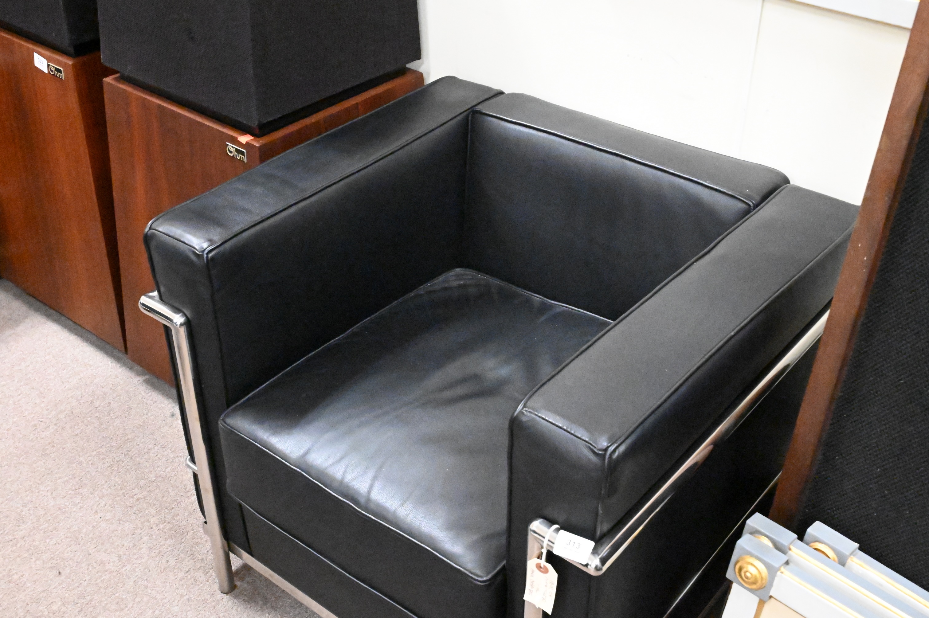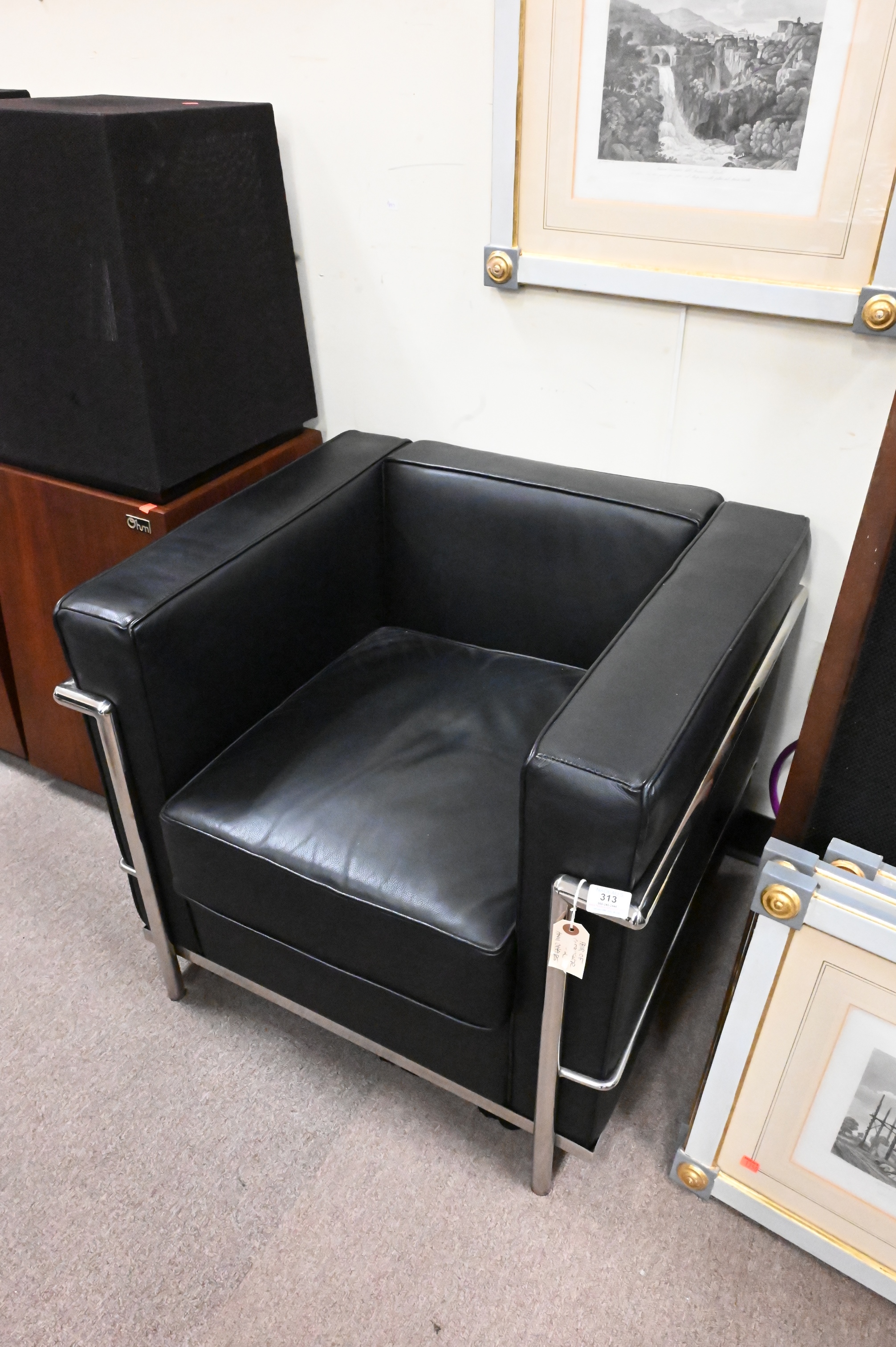 A Pair of Le Corbusier LG-2 Leather Armchairs, having chrome frames, height 26 inches, width 28 1/2 inches.